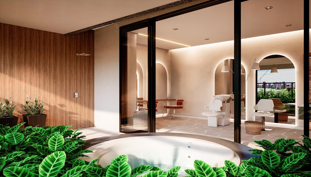 O condomínio dispõe de piscina com borda infinita, academia, spa & beauty, salão de festas, terraços de convivência, espaço gourmet, lounge e área kids, compondo um lazer completo.