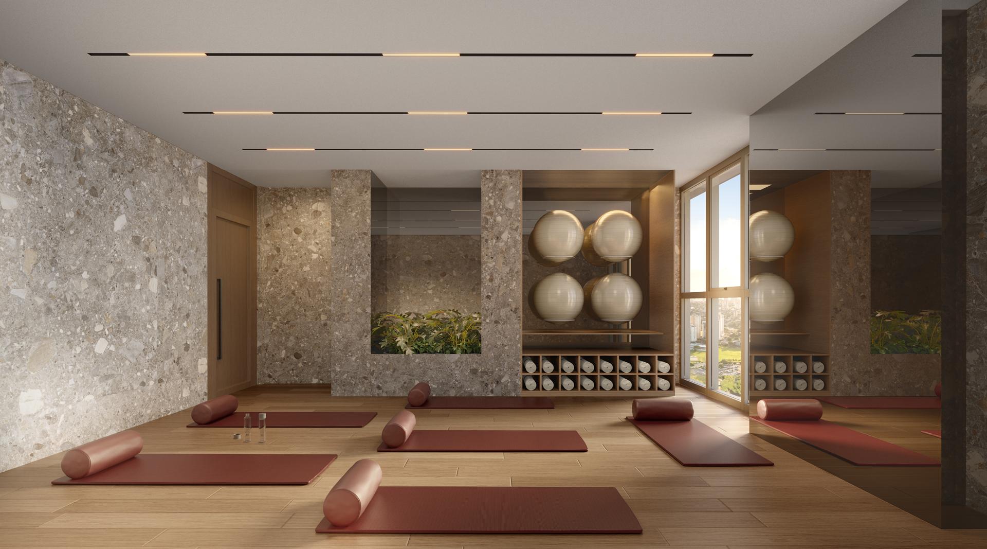 O empreendimento conta com academia, quadras, piscinas, spa, sauna, brinquedoteca, espaços de convivência, salão gourmet, salão de festas, playground, área pet, pilates, yoga e mais, formando um condomínio completo.
