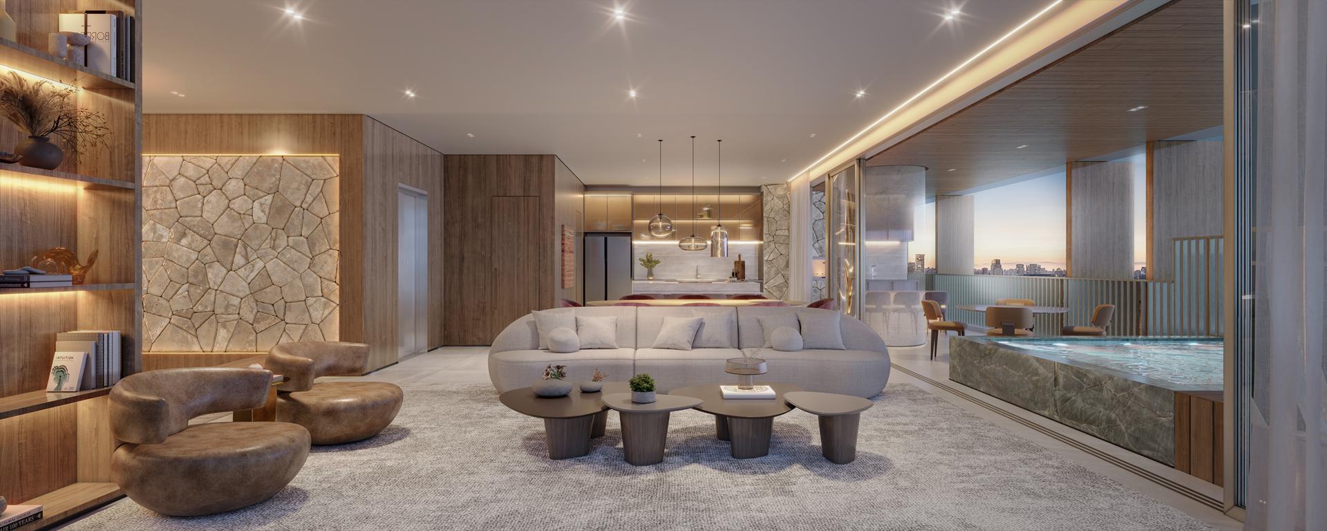 O projeto reúne arquitetura assinada, interiores exclusivos, paisagismo elaborado e plantas amplas. O condomínio oferece lazer completo, serviços como minimarket e car wash, além de áreas de bem-estar e espaços esportivos.