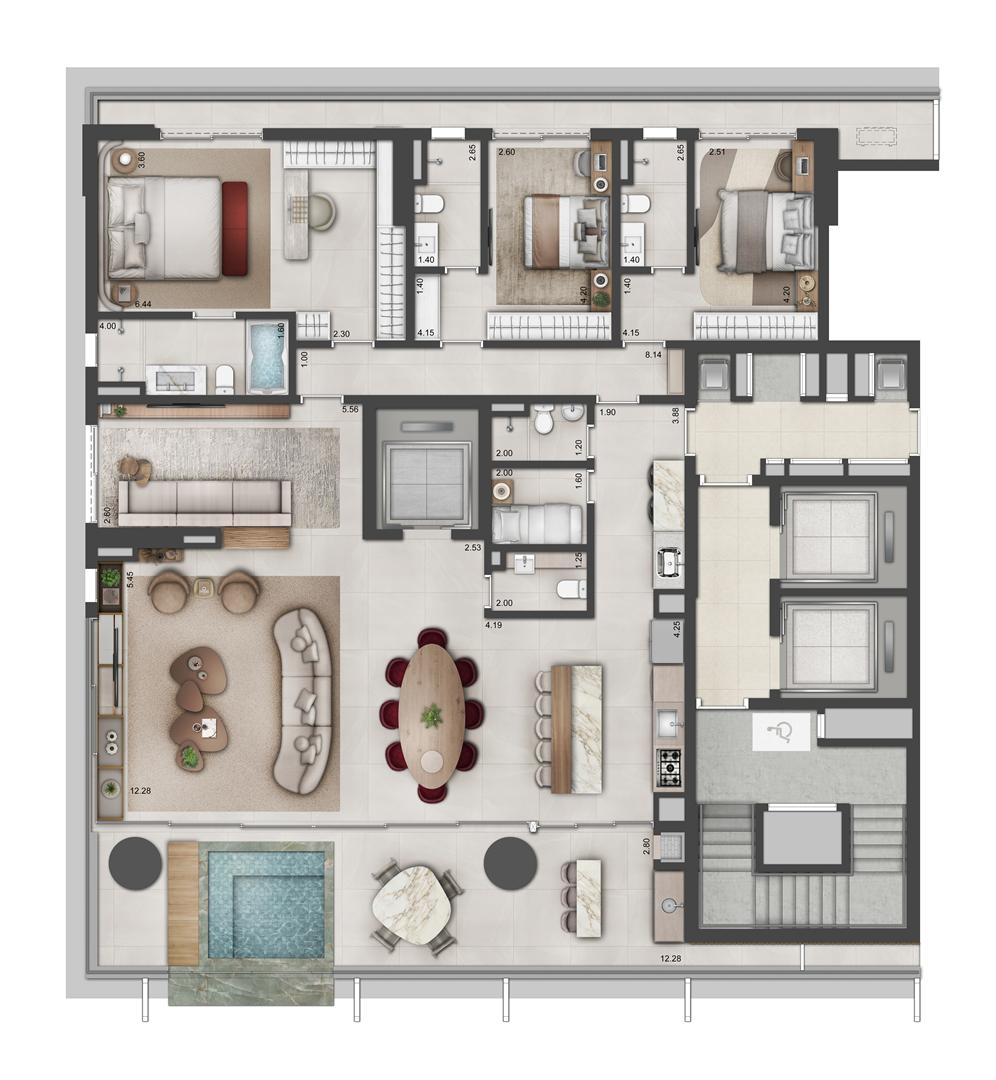 | Apartamento Garden | R$ 4.124.296,26 | 274 m² | 3 | 3 | 2 |