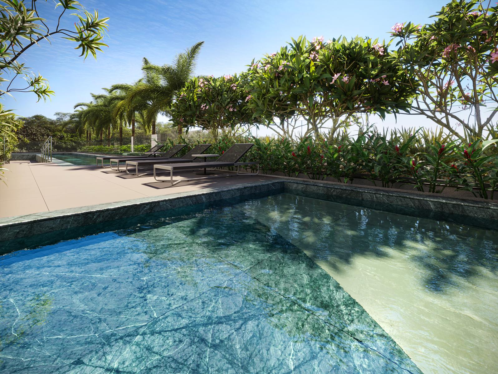 Entre os diferenciais estão as amplas metragens, piscinas privativas em determinadas unidades, varandas gourmet, grandes vãos estruturais e vista privilegiada.