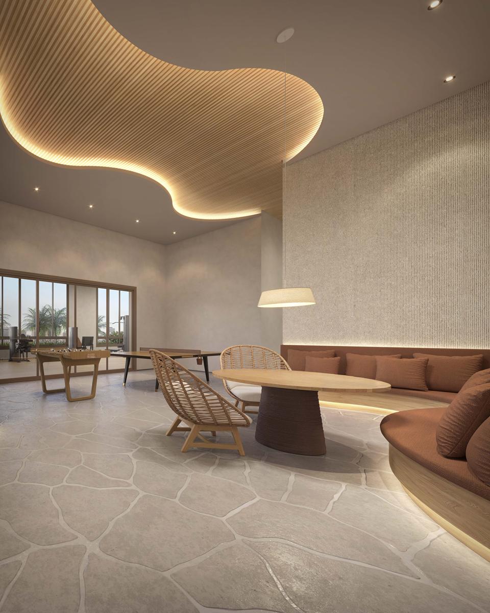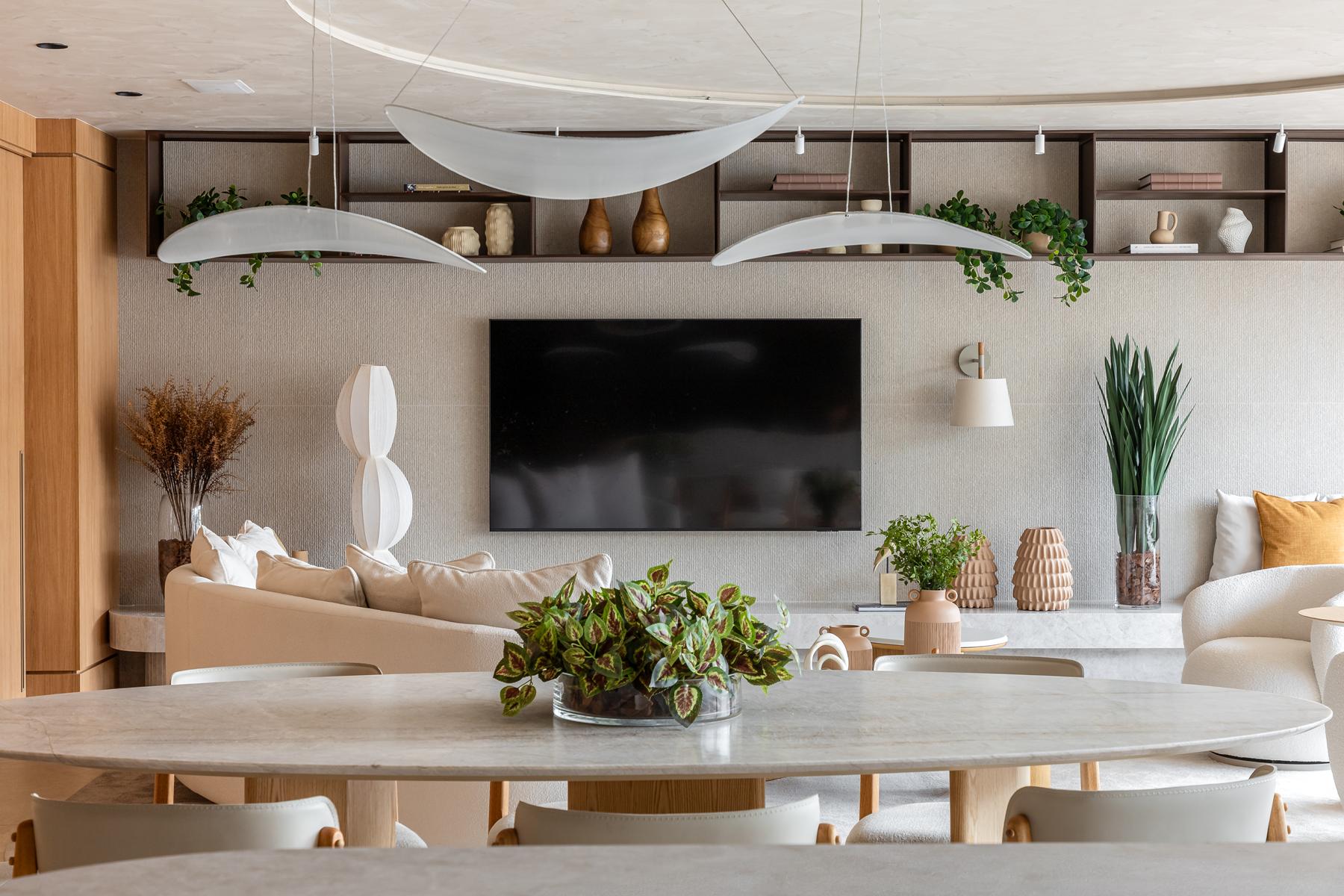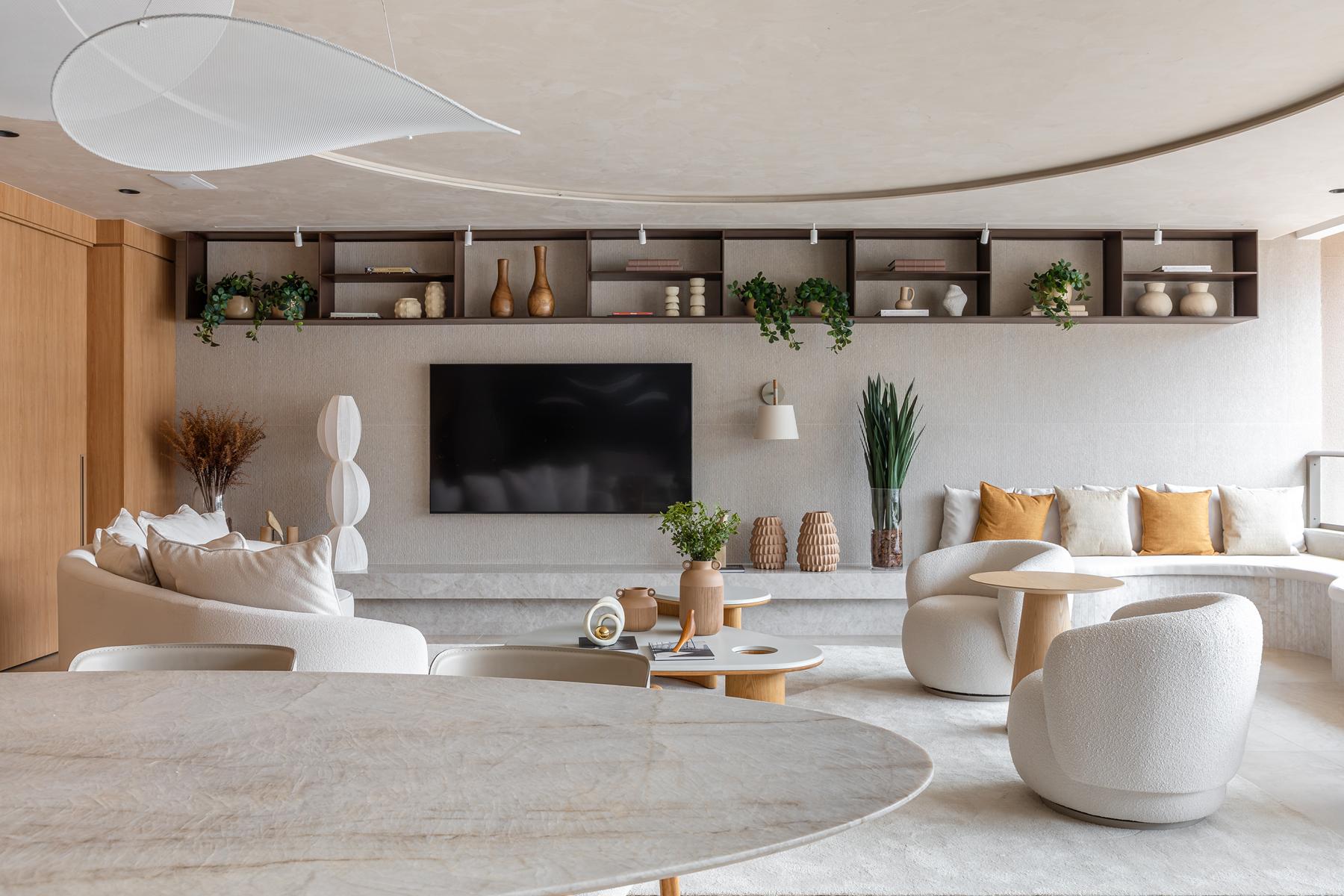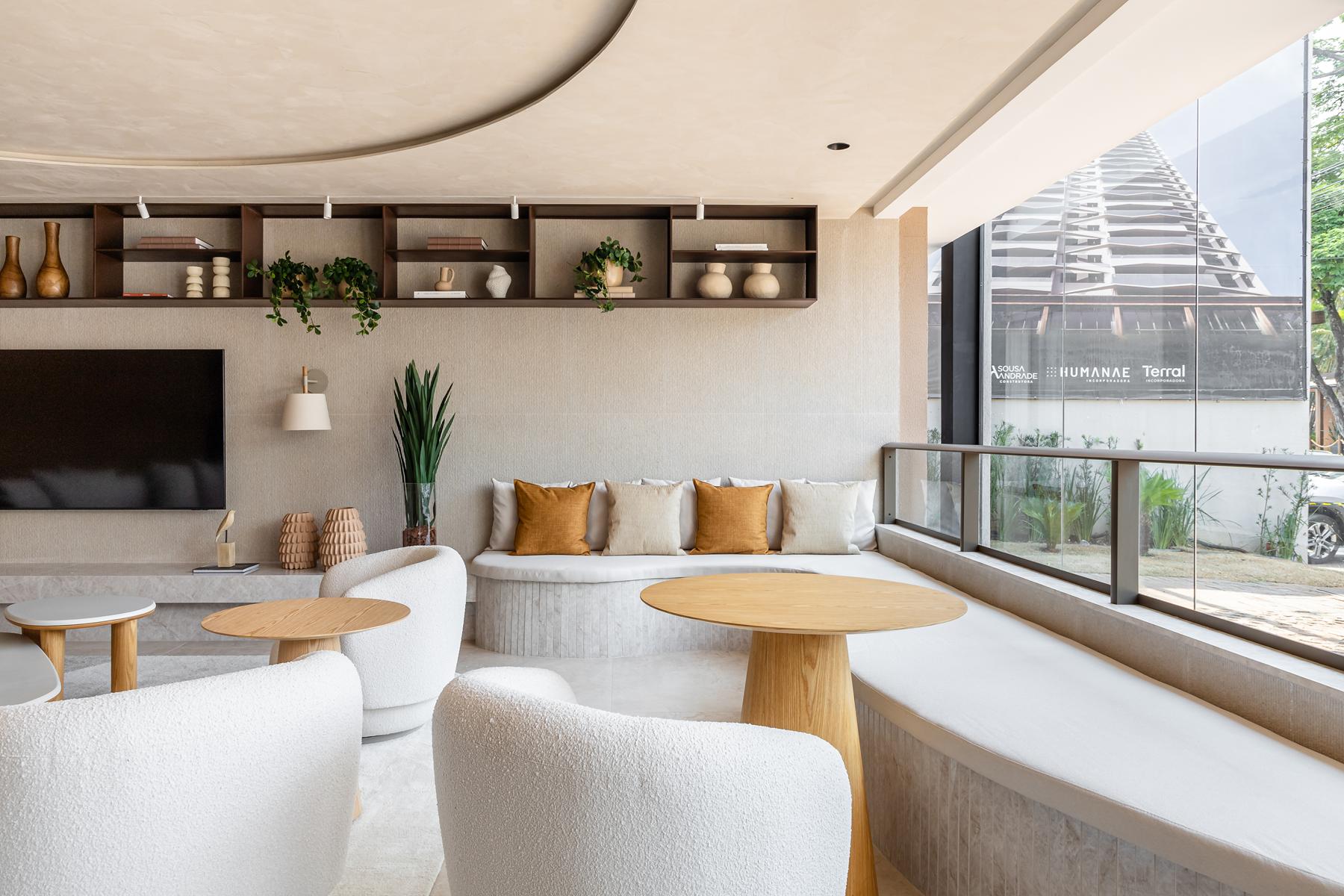 O projeto apresenta arquitetura assinada pela Sah Arquitetura, interiores de Natalia Veloso e paisagismo de Benedito Abbud, com uso de materiais naturais, linhas orgânicas e soluções técnicas voltadas ao conforto.