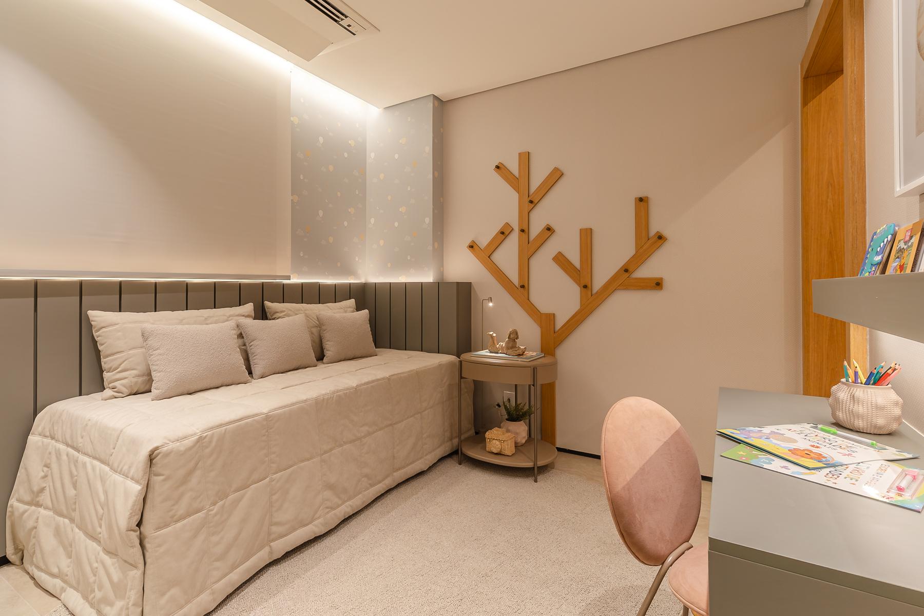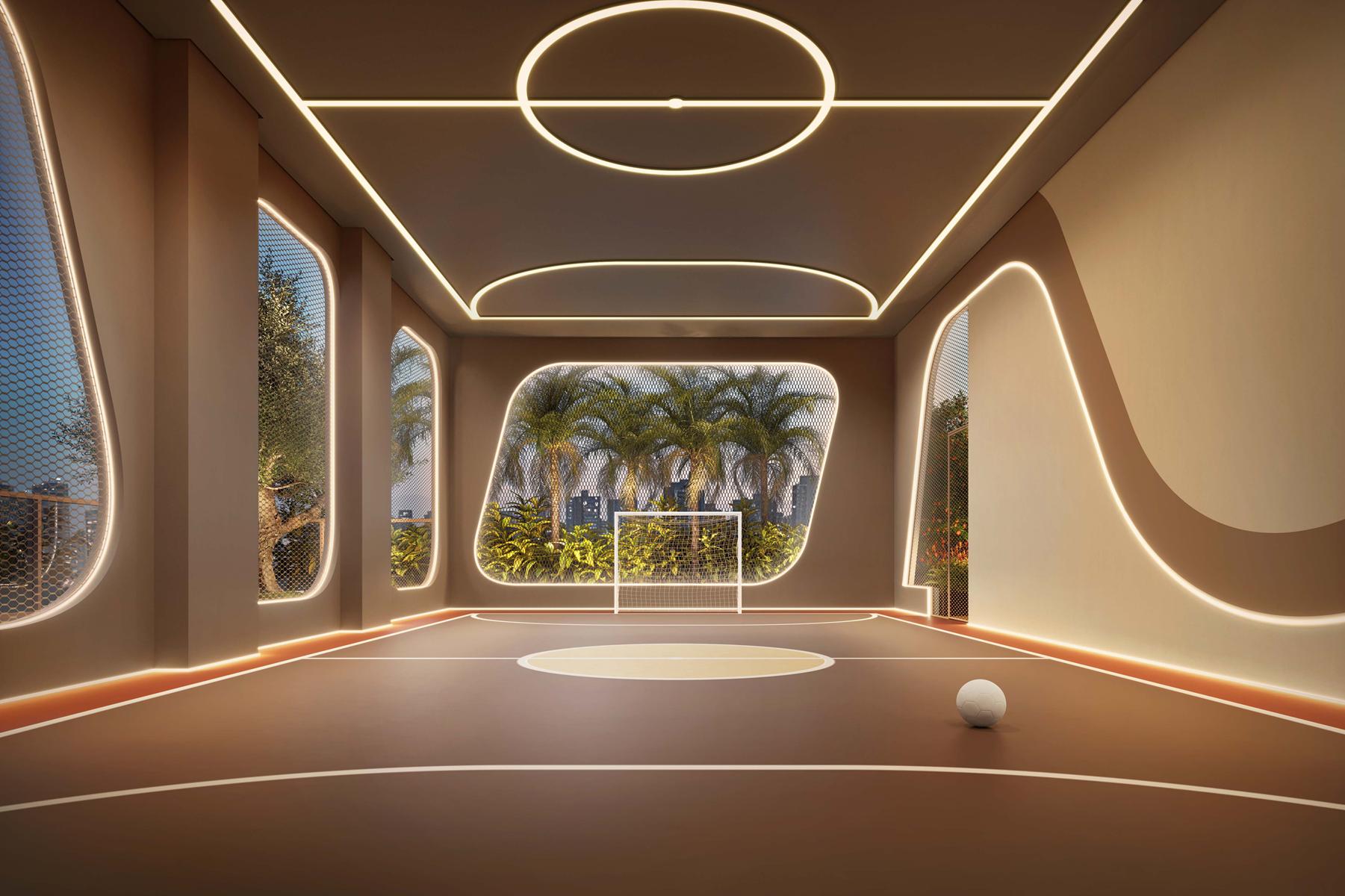 A área de lazer conta com salão de festas, salão gourmet, brinquedoteca, quadra, piscinas, academia, lounge jogos, playground, sauna e spa.