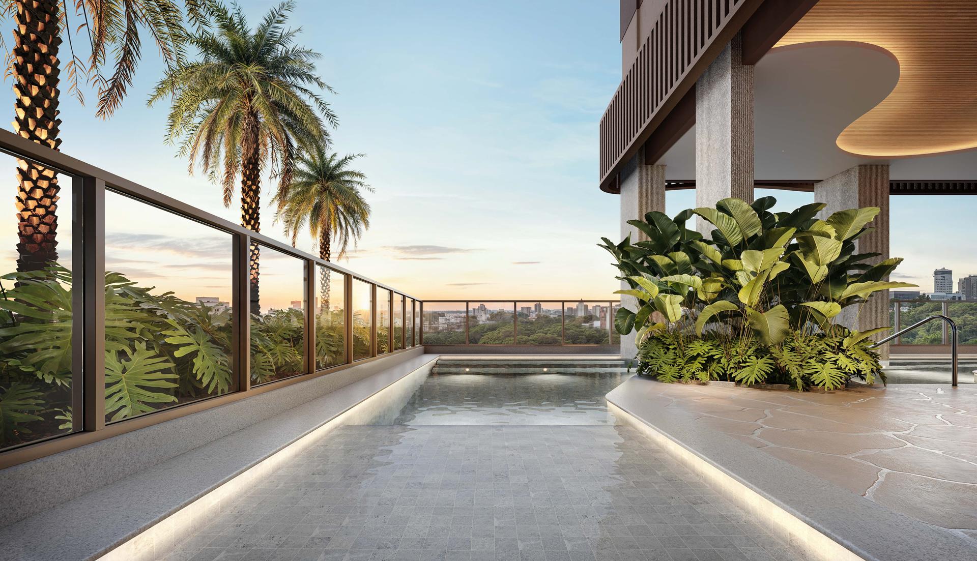 O projeto inclui miniusina de energia solar, tratamento de água, irrigação automatizada, piscinas tratadas com ozônio, carregador elétrico e gerador para áreas comuns.