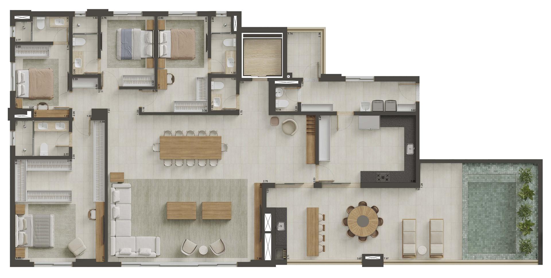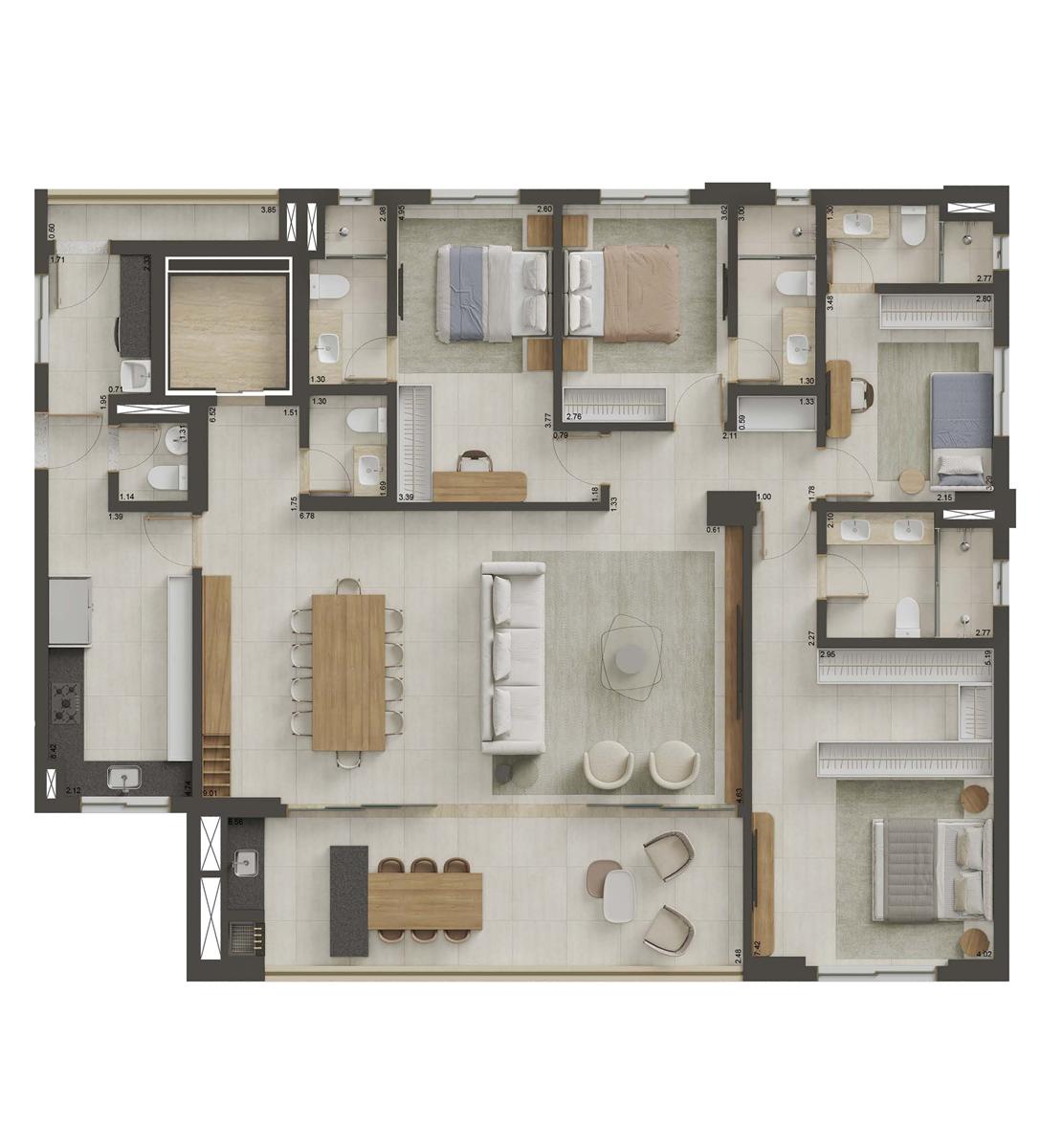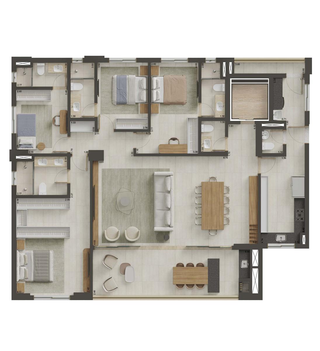 | Penthouse | R$ 4.041.407,00 | 286m² | 4 | 4 | 2 |