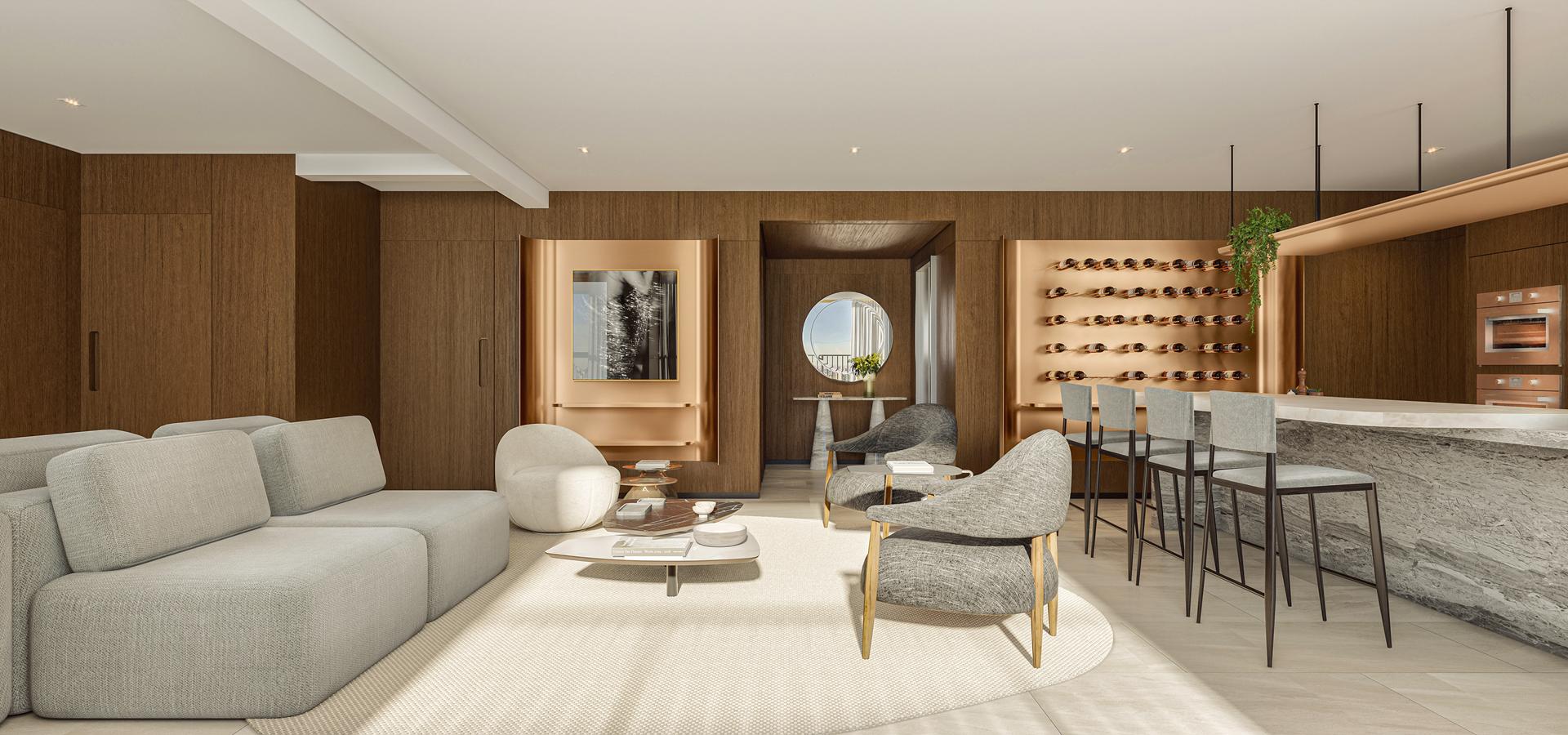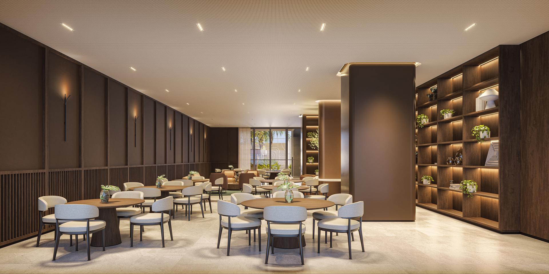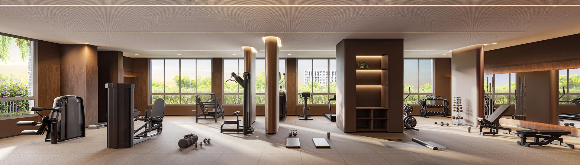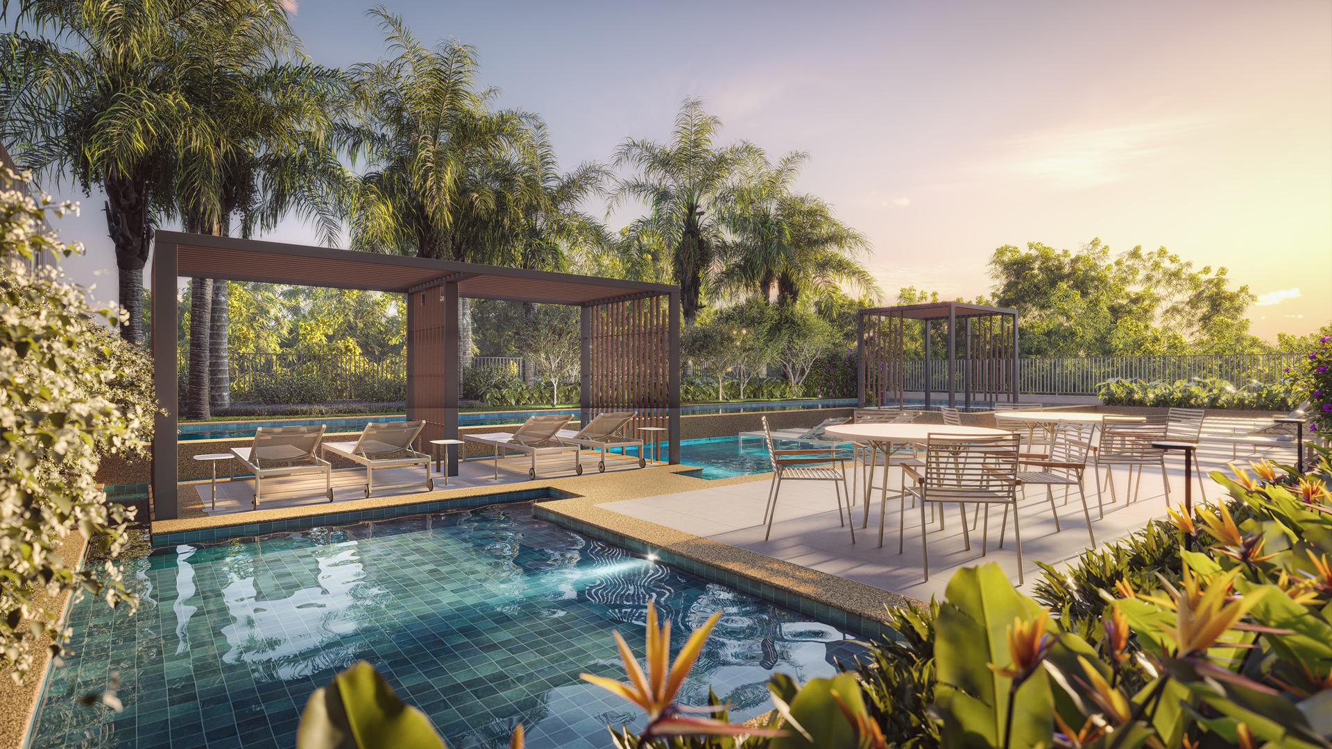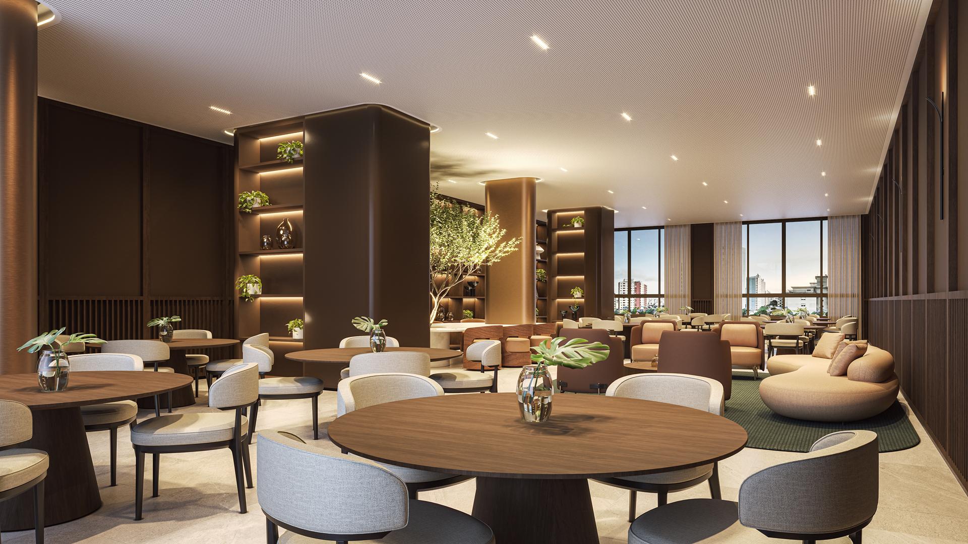 Os apartamentos apresentam metragens de 120 m² a 153 m², com plantas que incluem 3 a 4 suítes, varanda com churrasqueira a carvão e elevador com hall privativo. O condomínio oferece ampla área de lazer com piscina, sauna, quadras, espaços de bem-estar e ambientes de conveniência como minimercado, business area e smart access, complementando a experiência residencial com praticidade e segurança.
