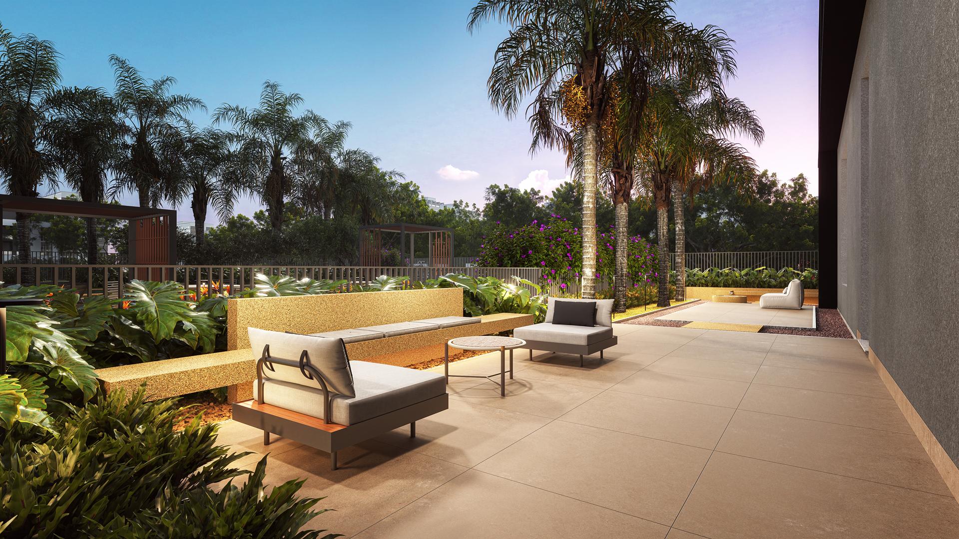 O condomínio conta com piscina com deck, lounge, sauna, relax room, quadra de beach tennis, center fitness, espaço gourmet, quadra poliesportiva, salão de festas, espaço kids, playground, sala de reuniões e podcast studio, oferecendo lazer variado para todas as idades.