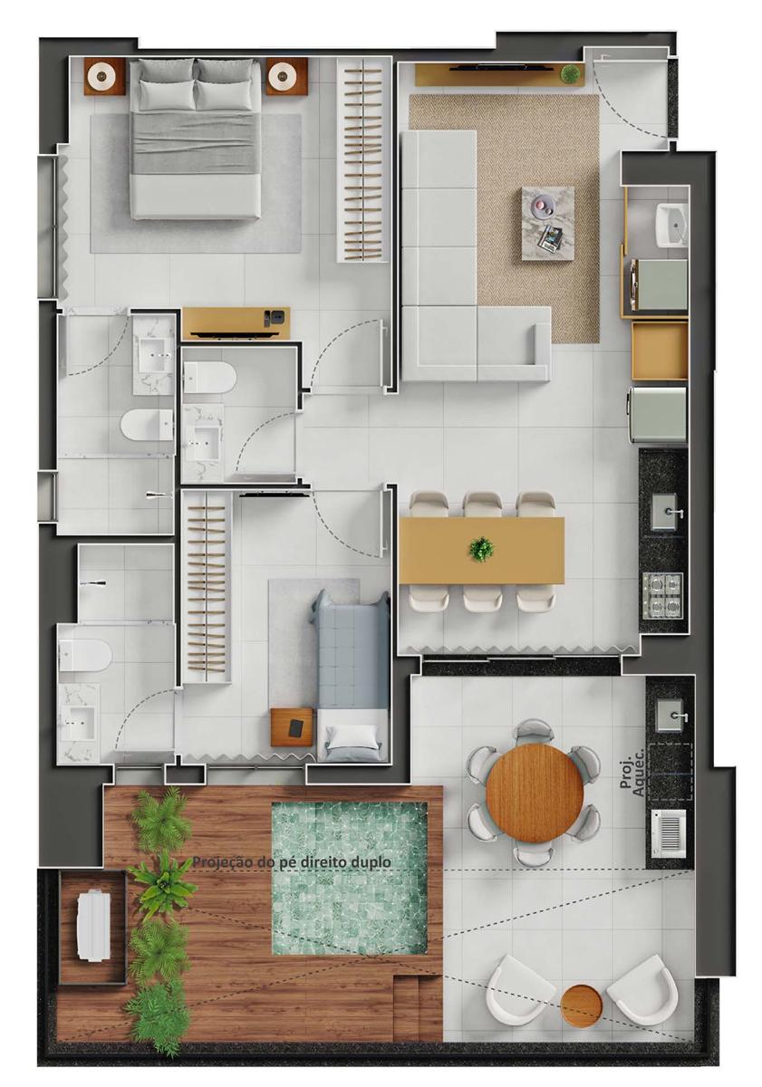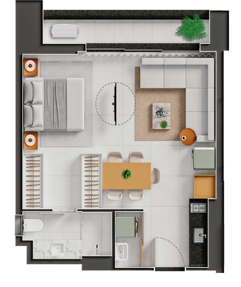 O lazer reúne city pool, rooftop garden, sauna, playground, flex station, espaços gourmet, lavanderia, delivery room e sala de reuniões com coworking, todos planejados para oferecer funcionalidade e conveniência.