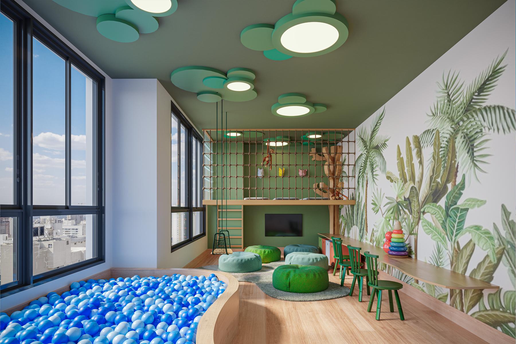 Sim. O condomínio oferece salão de festas, churrasqueira, piscinas coberta e descoberta, academia, quadra, playground, brinquedoteca, sauna, sala de massagem, pub e rooftop.