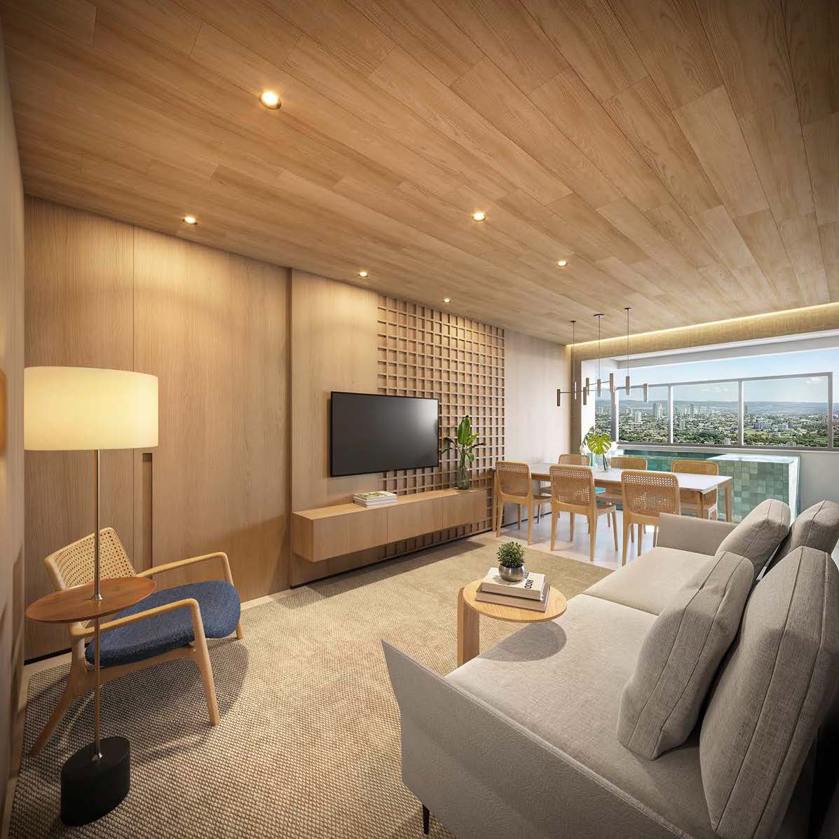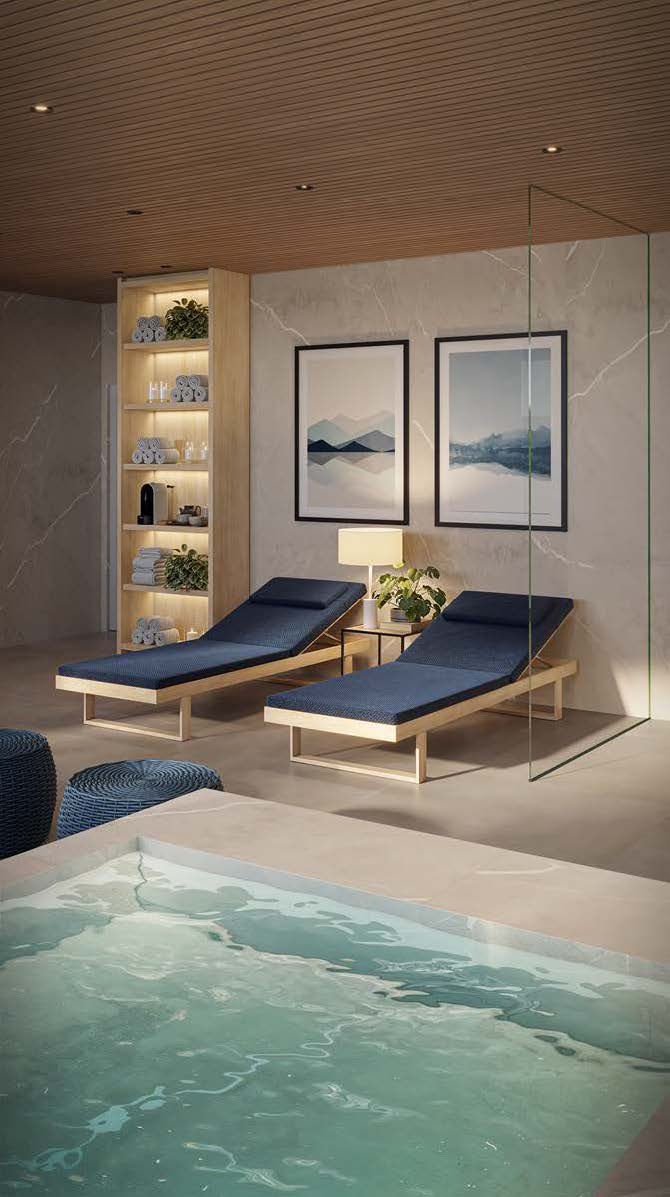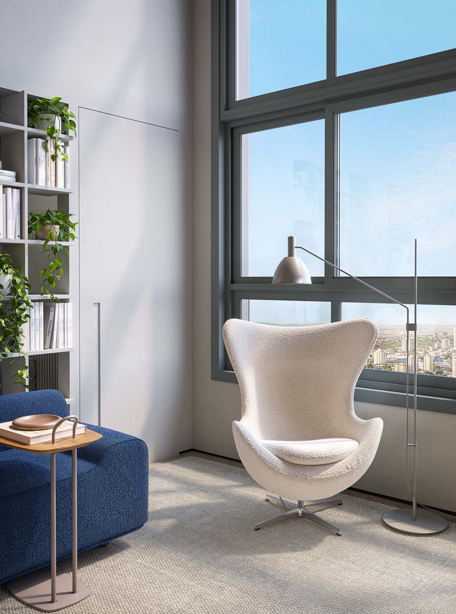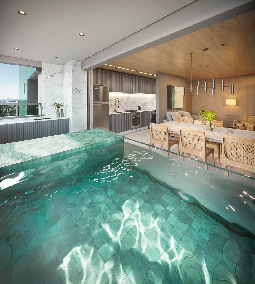 O lazer inclui piscinas, churrasqueira, rooftop gourmet, brinquedoteca, playground, mini quadra, lounge jogos, salão de festas, academia, coworking e spa nórdico.