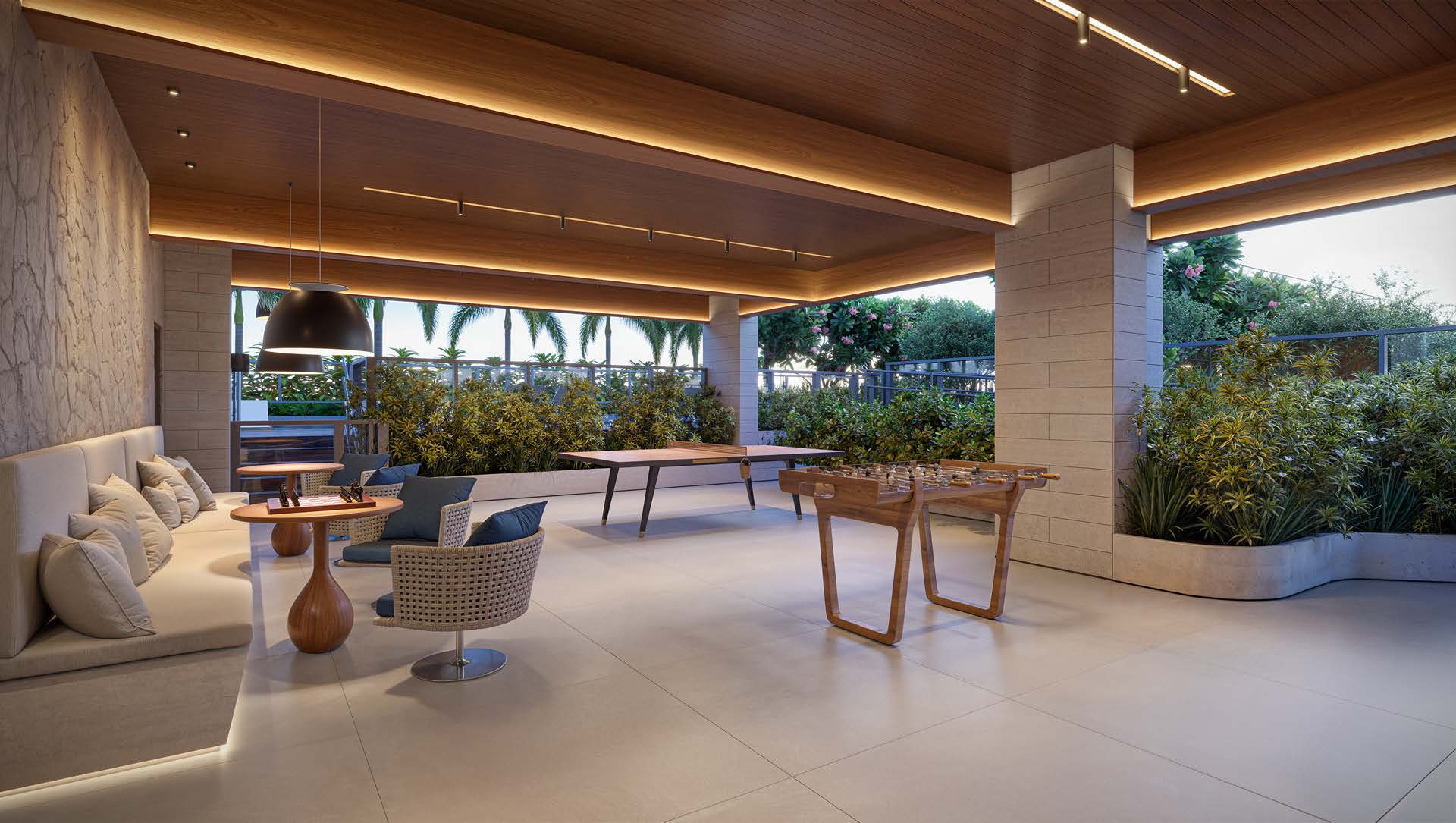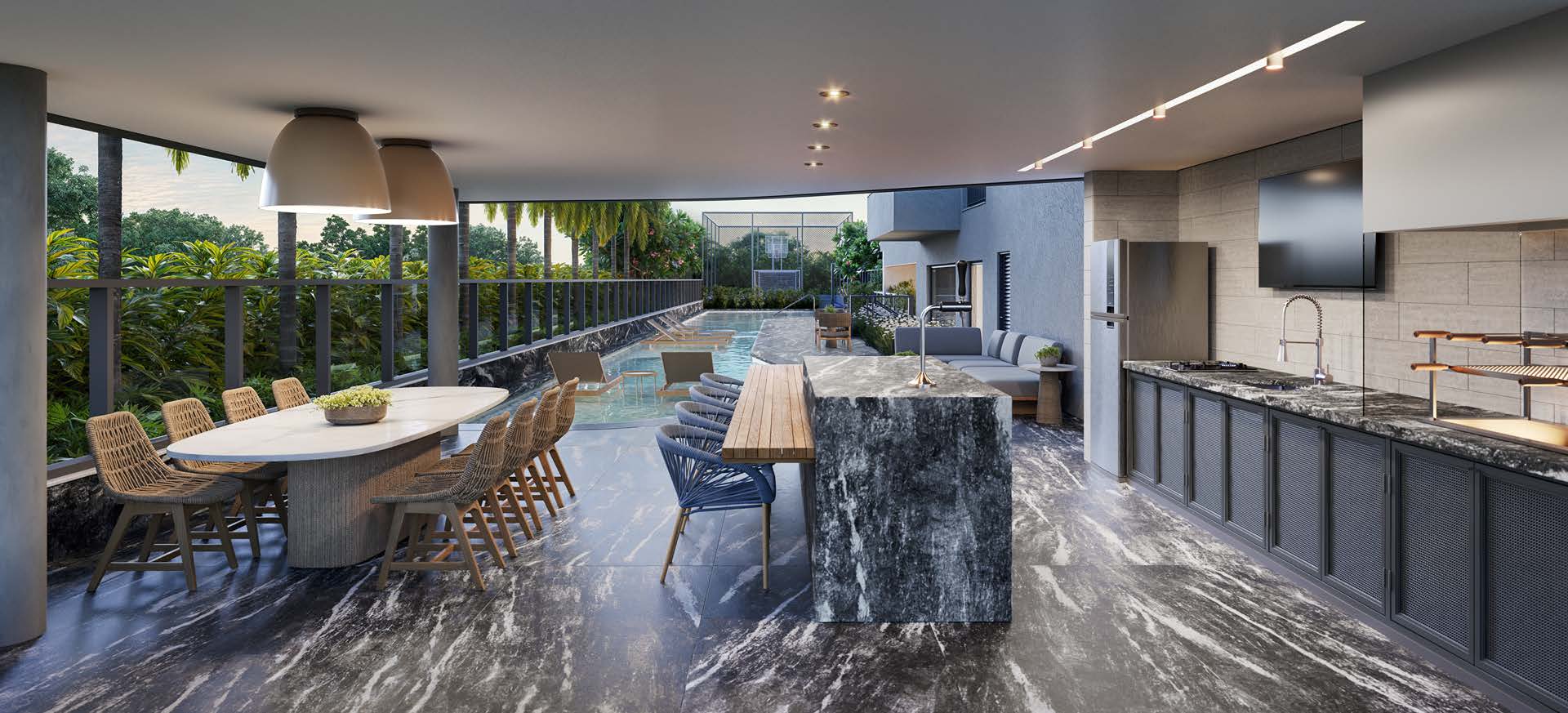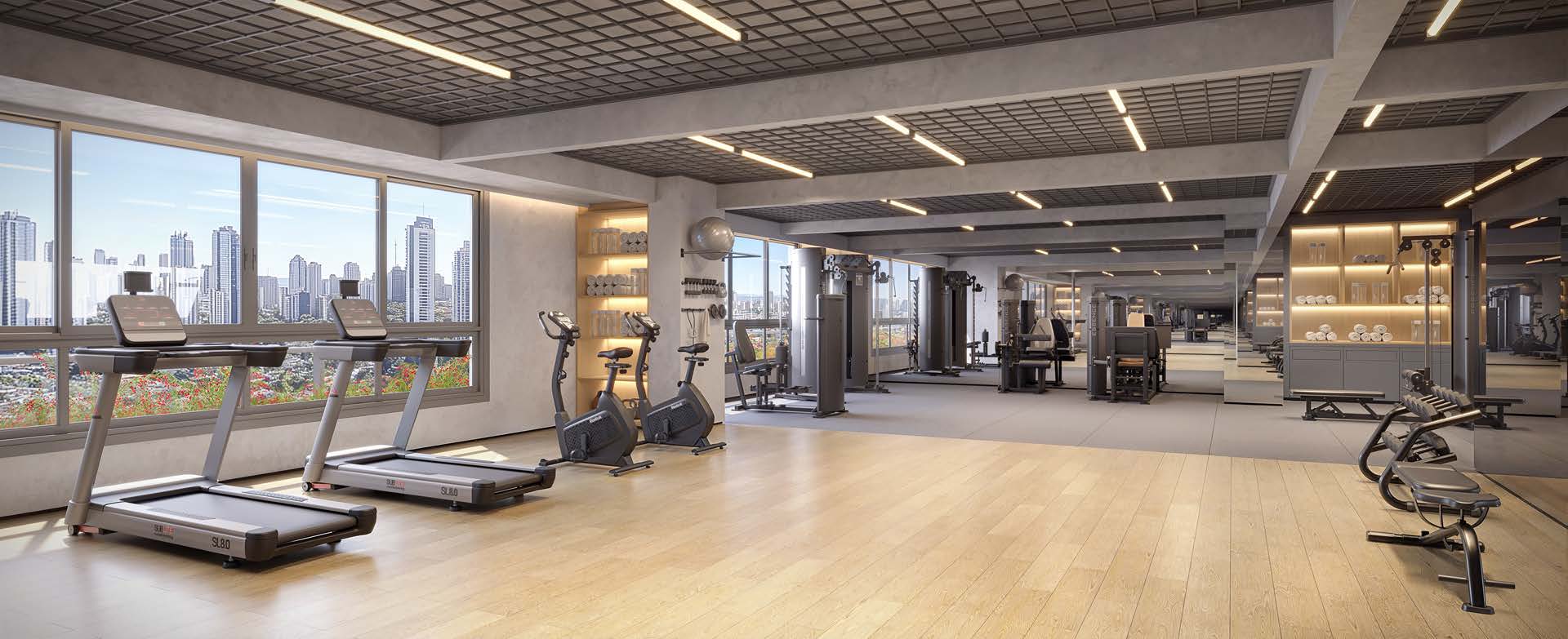 O lazer inclui piscinas, churrasqueira, rooftop gourmet, brinquedoteca, playground, mini quadra, lounge jogos, salão de festas, academia, coworking e spa nórdico.