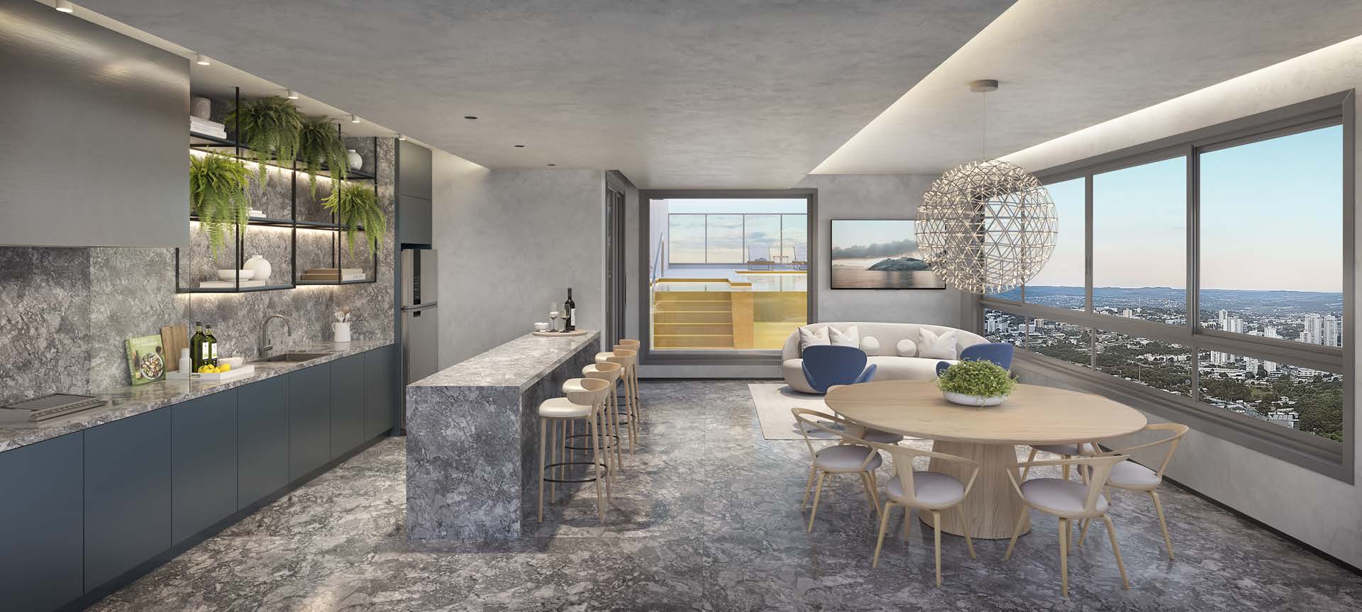 O empreendimento se diferencia pelo rooftop com Golden Pool, spa nórdico, design escandinavo, segurança avançada e integração de soluções sustentáveis.