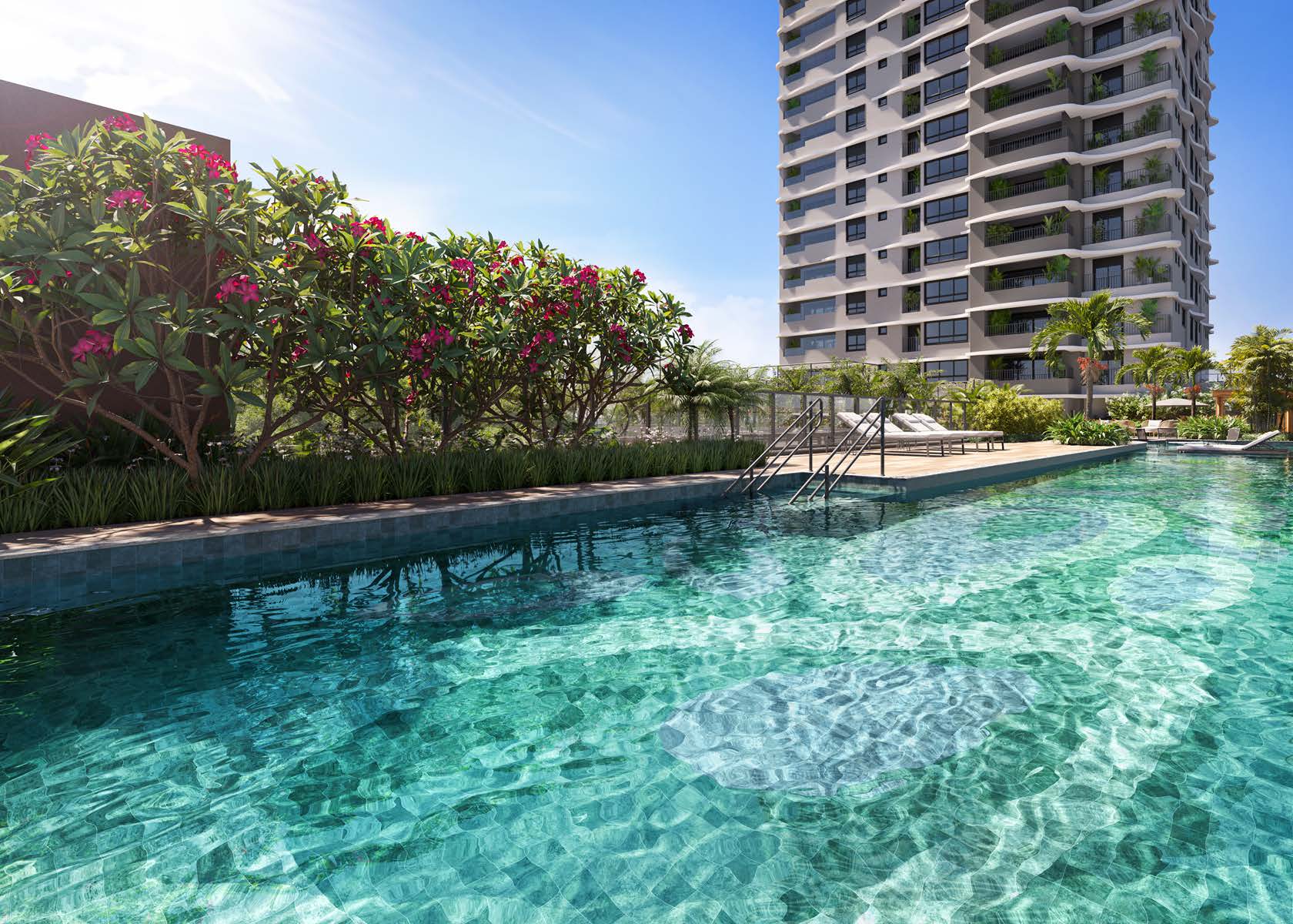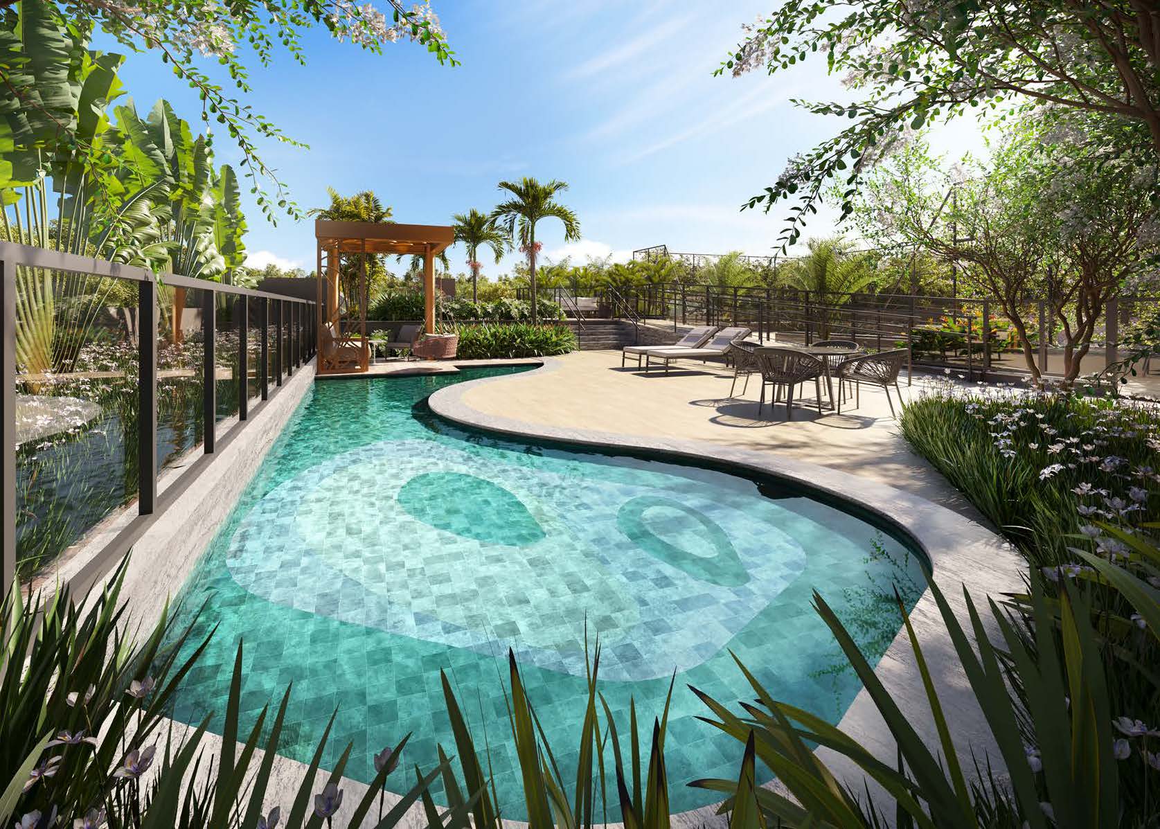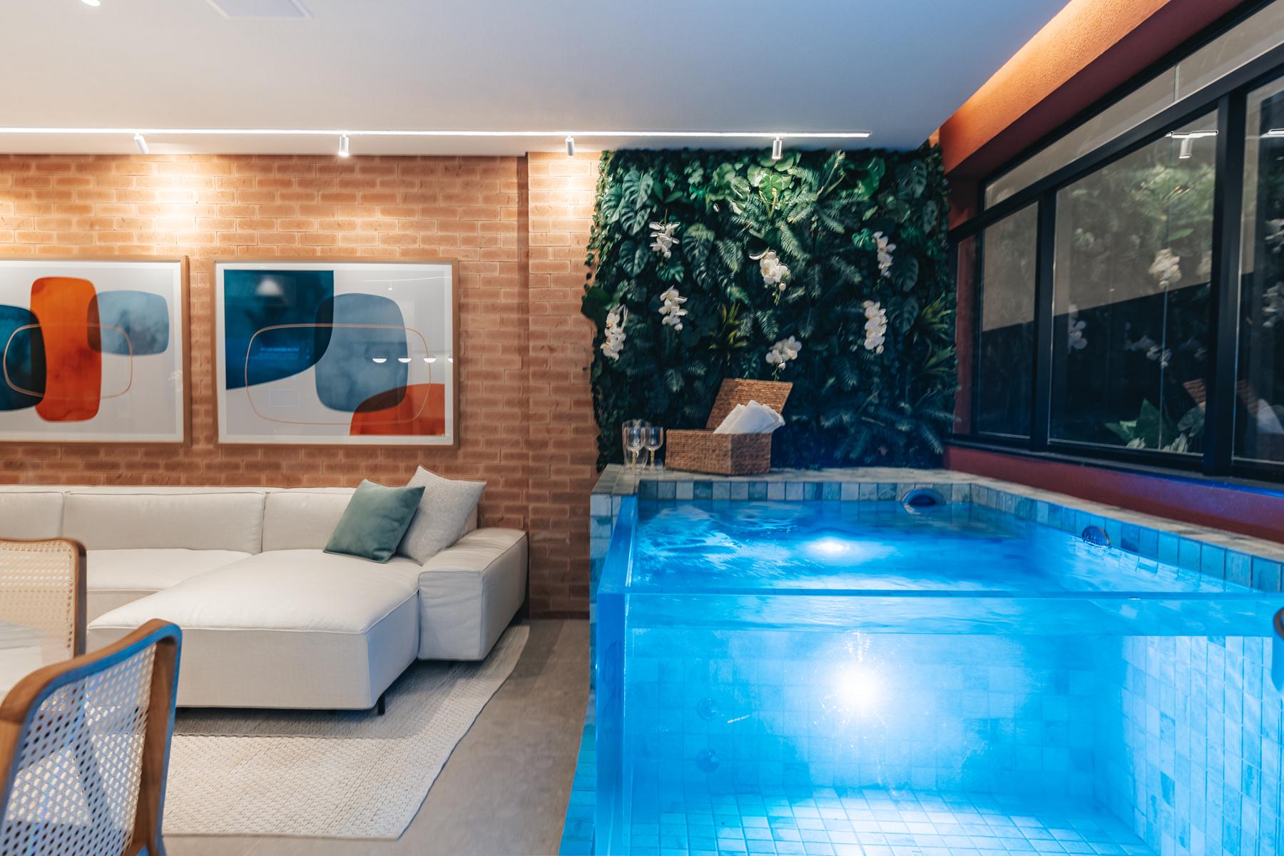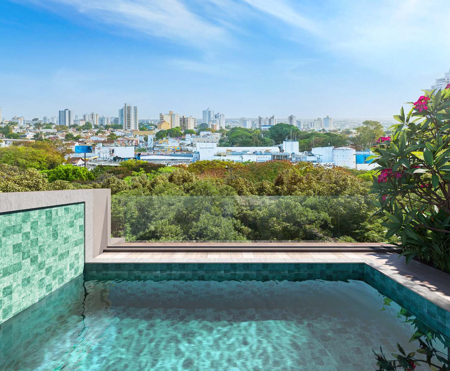 Sim. Algumas unidades de apartamentos e todas as penthouses contam com piscina privativa integrada à varanda.