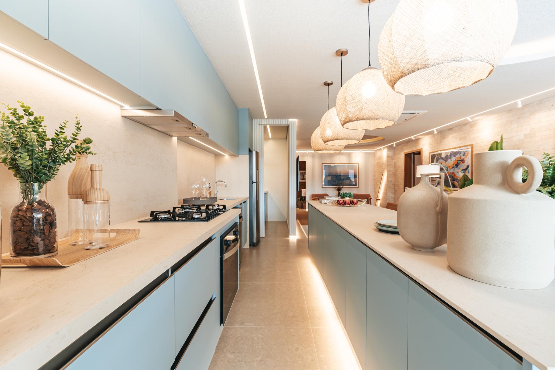 O empreendimento conta com apartamentos de 2 e 3 quartos, com metragens de 74 m², 80 m² e 134 m², além de penthouses de 174 m² a 269 m², com 3 ou 4 suítes e piscina privativa.