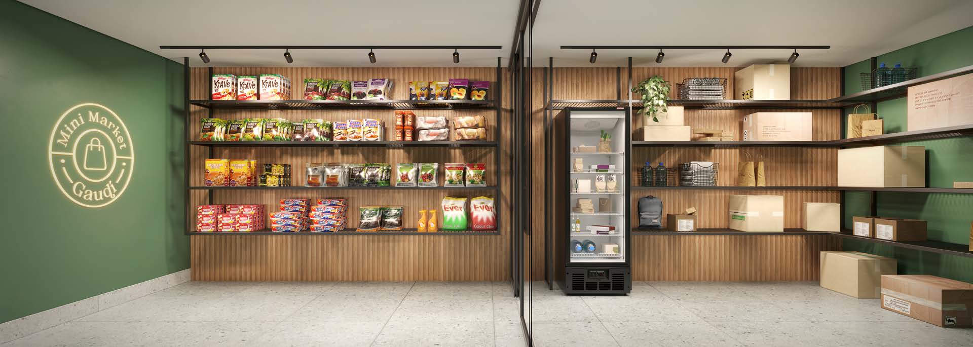 O condomínio Gaudí foi planejado com estrutura completa de lazer, segurança e soluções sustentáveis integradas ao dia a dia dos moradores, distribuídas em pavimento exclusivo. O projeto contempla áreas comuns climatizadas, controle de acesso tecnológico e serviços que ampliam a funcionalidade do empreendimento.