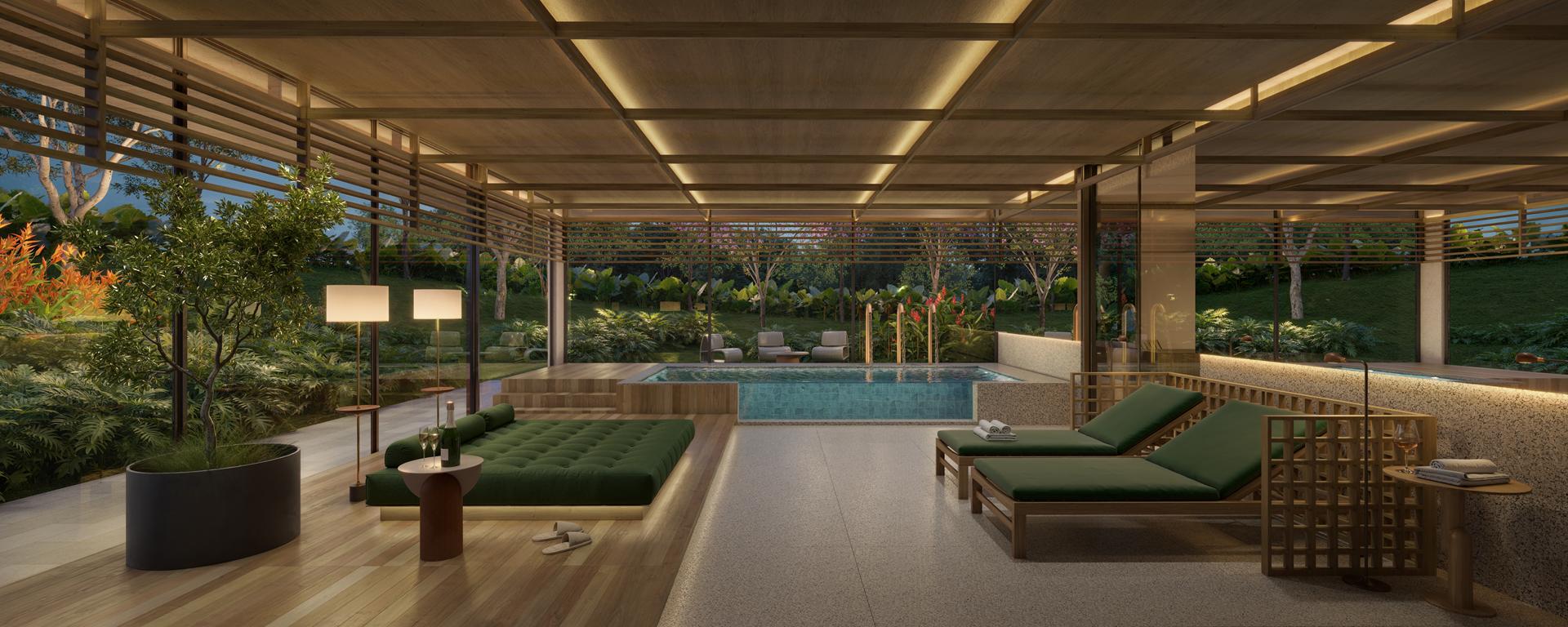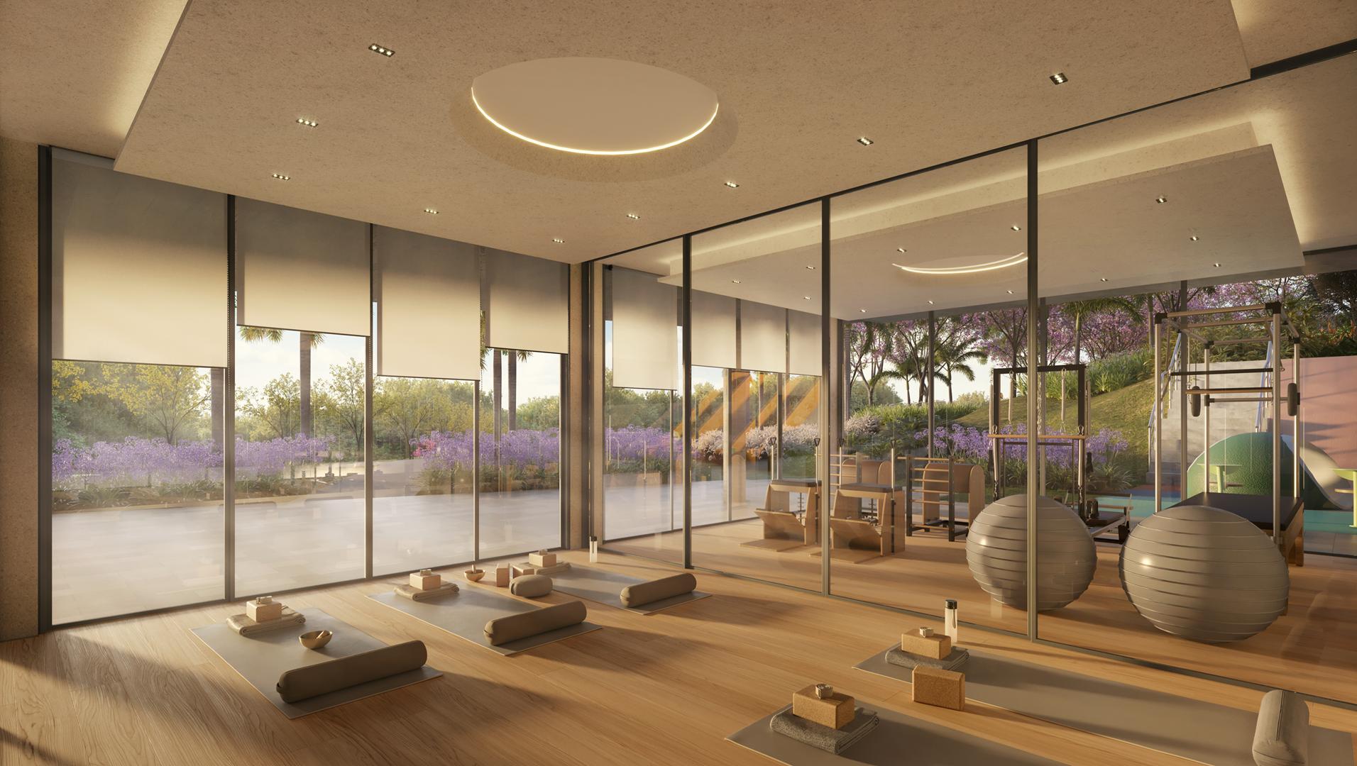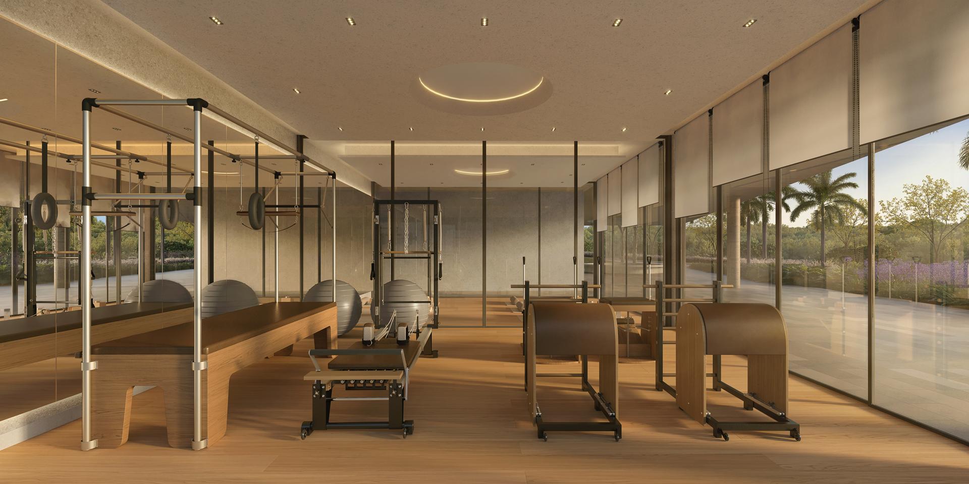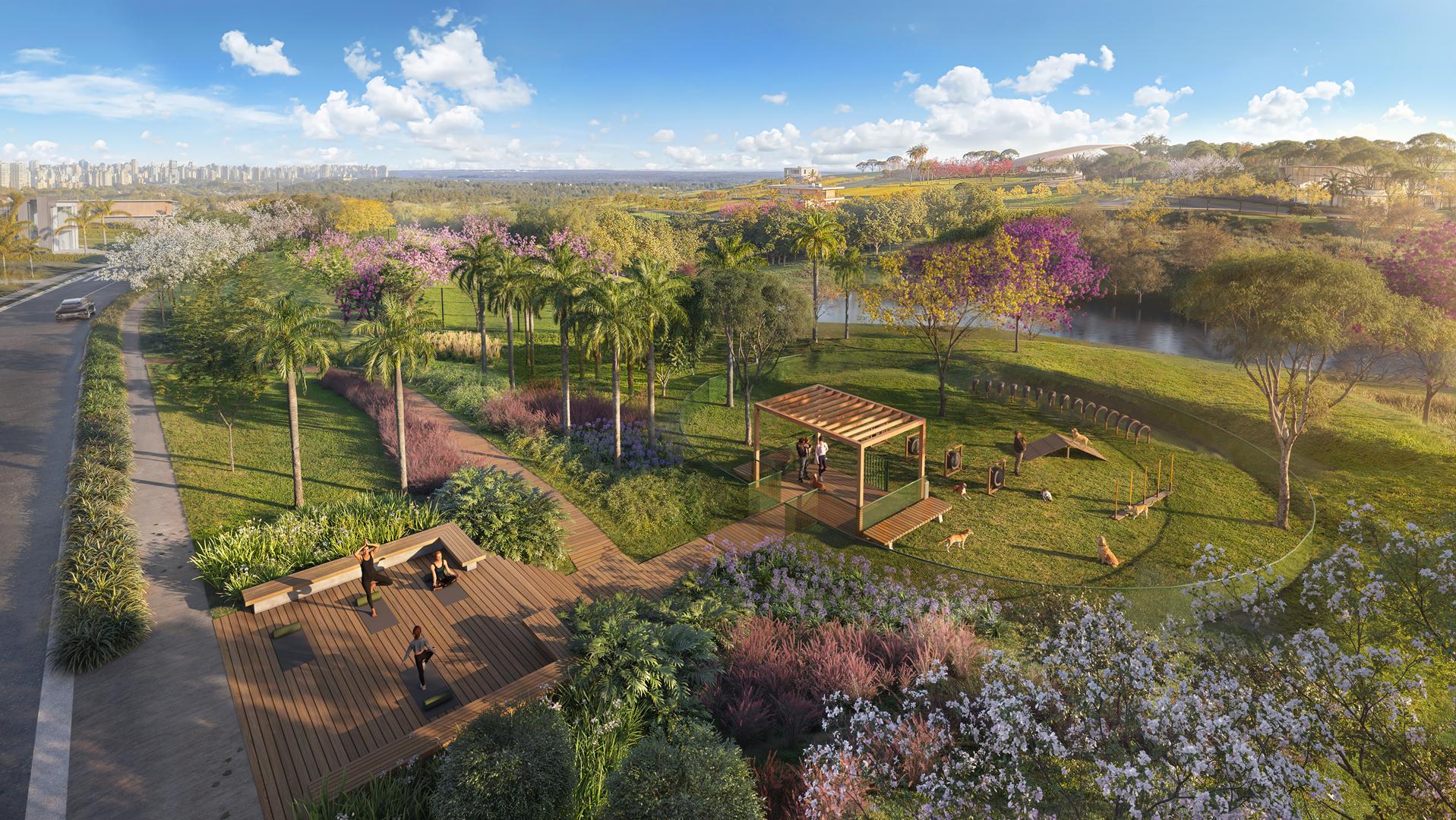• Lazer e bem-estar: spa com piscina de borda de vidro, hidroterapia, saunas, salas de massagem, academia climatizada, academia kids, brinquedoteca, pistas de cooper (4,8 km), áreas para pilates e funcional, sky decks, redários, wine bar, charutaria, lounge de jogos, simuladores, playgrounds, quiosque gourmet, espelho d’água, minimercado, horta, pomar, clube pet, circuito de agility.