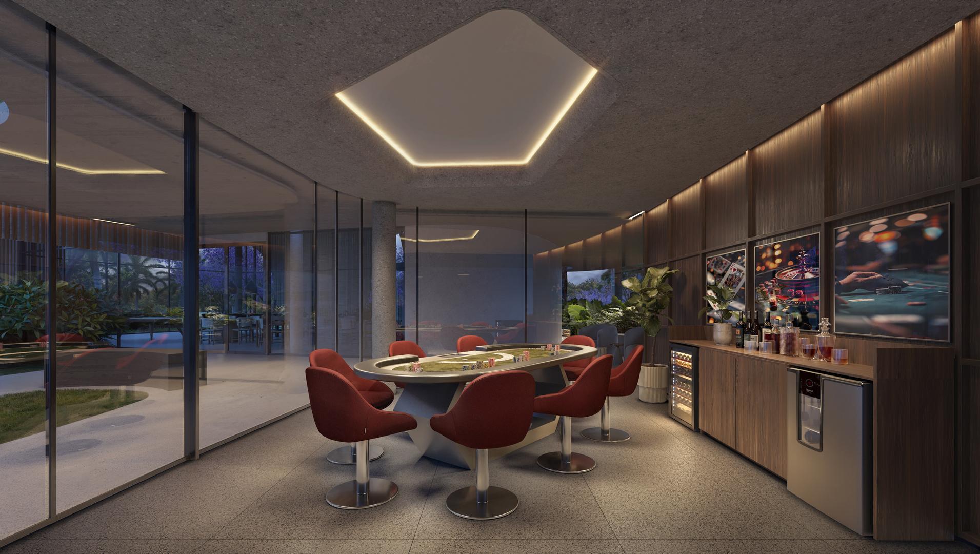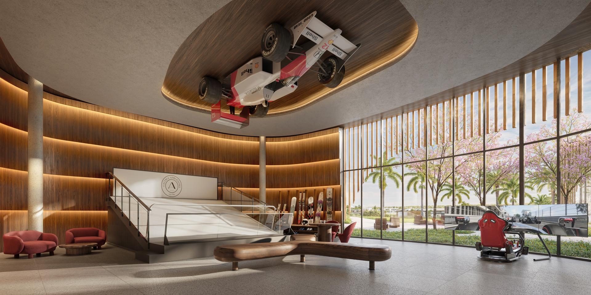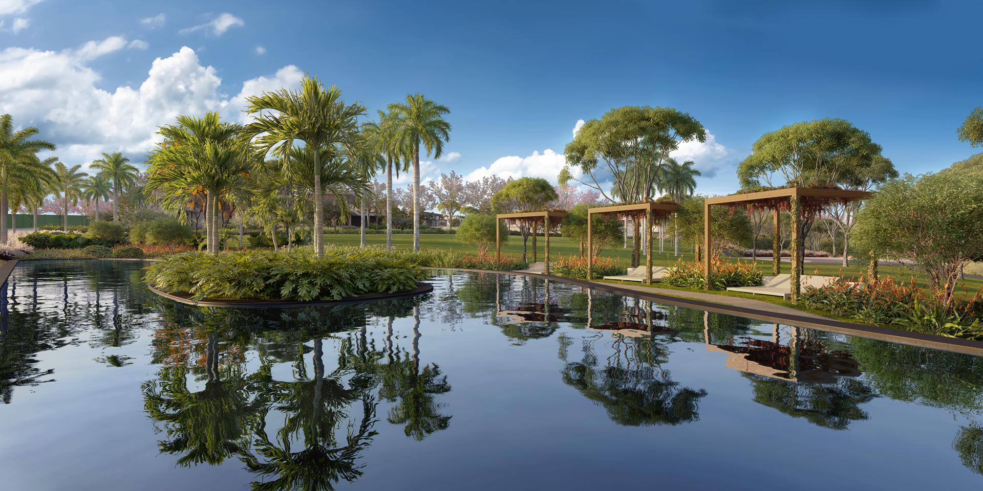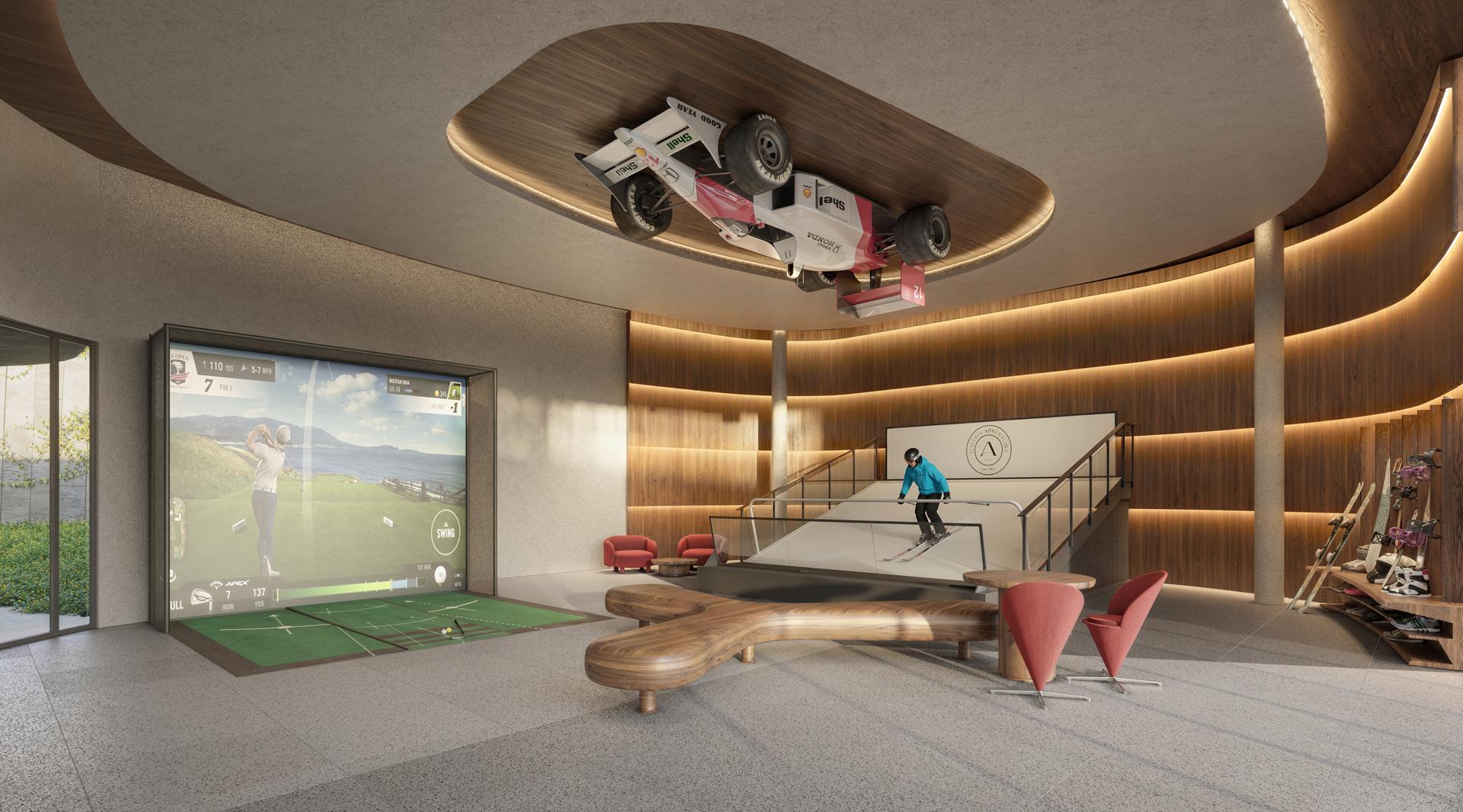 • Lazer e bem-estar: spa com piscina de borda de vidro, hidroterapia, saunas, salas de massagem, academia climatizada, academia kids, brinquedoteca, pistas de cooper (4,8 km), áreas para pilates e funcional, sky decks, redários, wine bar, charutaria, lounge de jogos, simuladores, playgrounds, quiosque gourmet, espelho d’água, minimercado, horta, pomar, clube pet, circuito de agility.