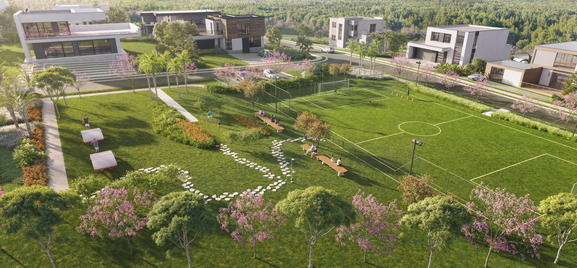 O projeto reúne assinaturas de destaque: Grupo Quatro, Benedito Abbud e Leo Romano, que juntos compõem arquitetura, paisagismo e áreas esportivas. O condomínio apresenta estética contemporânea, ambientes integrados à natureza, espaços esportivos de padrão profissional e áreas sociais projetadas com atenção ao conforto e à funcionalidade.