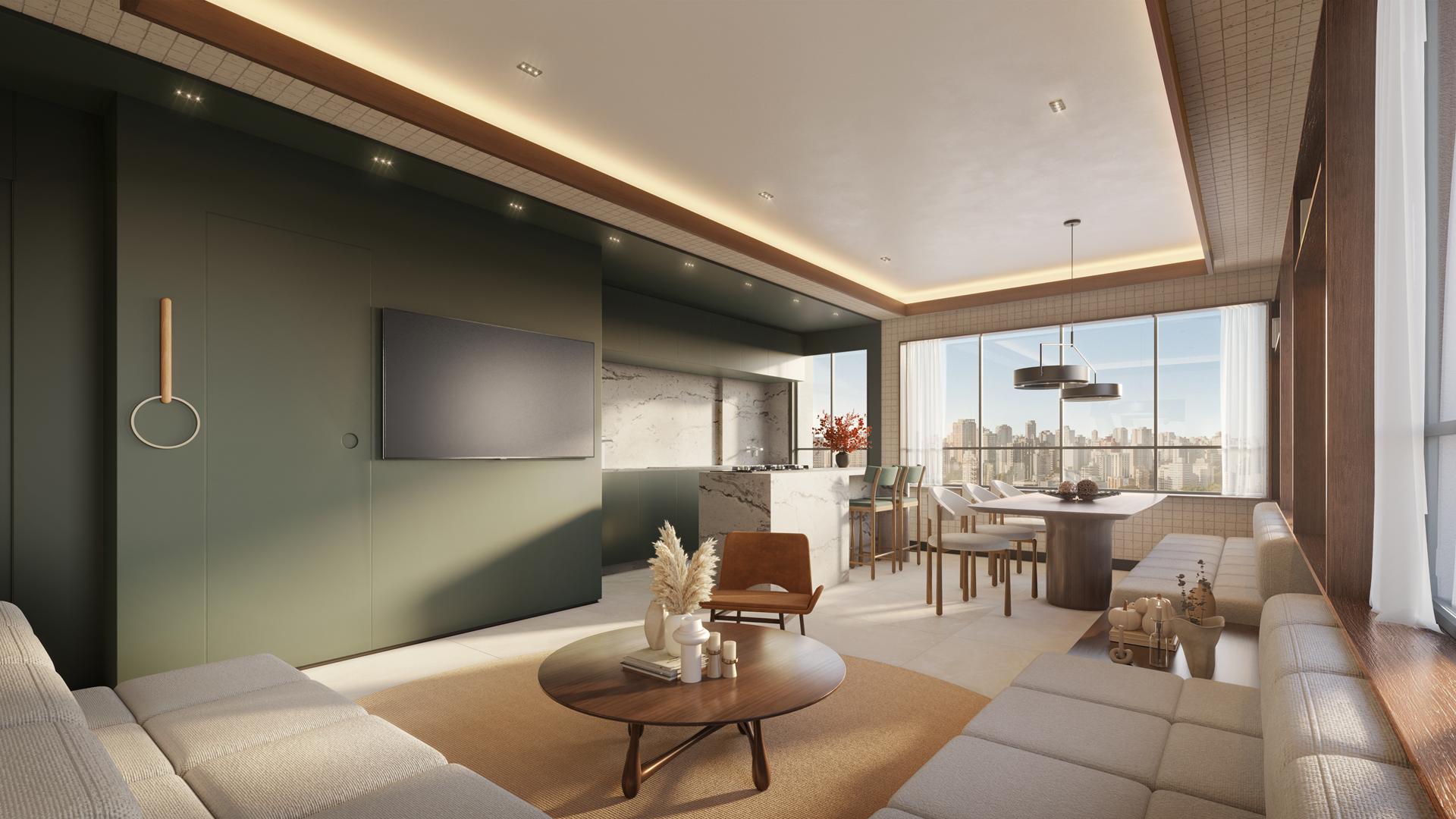 Entre os diferenciais estão reconhecimento facial nos acessos, robô delivery, gerador para 100% da área comum, elevadores inteligentes, wifi de alta velocidade, ponto de carregamento elétrico, bicicletário com ferramentaria e lazer completo no rooftop.
