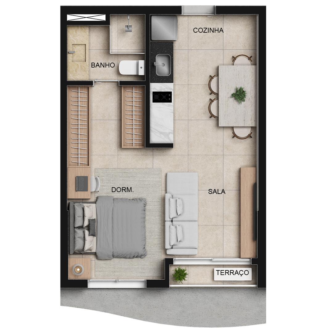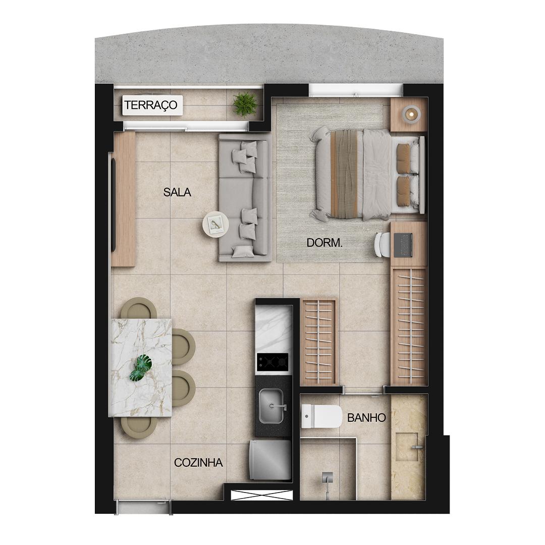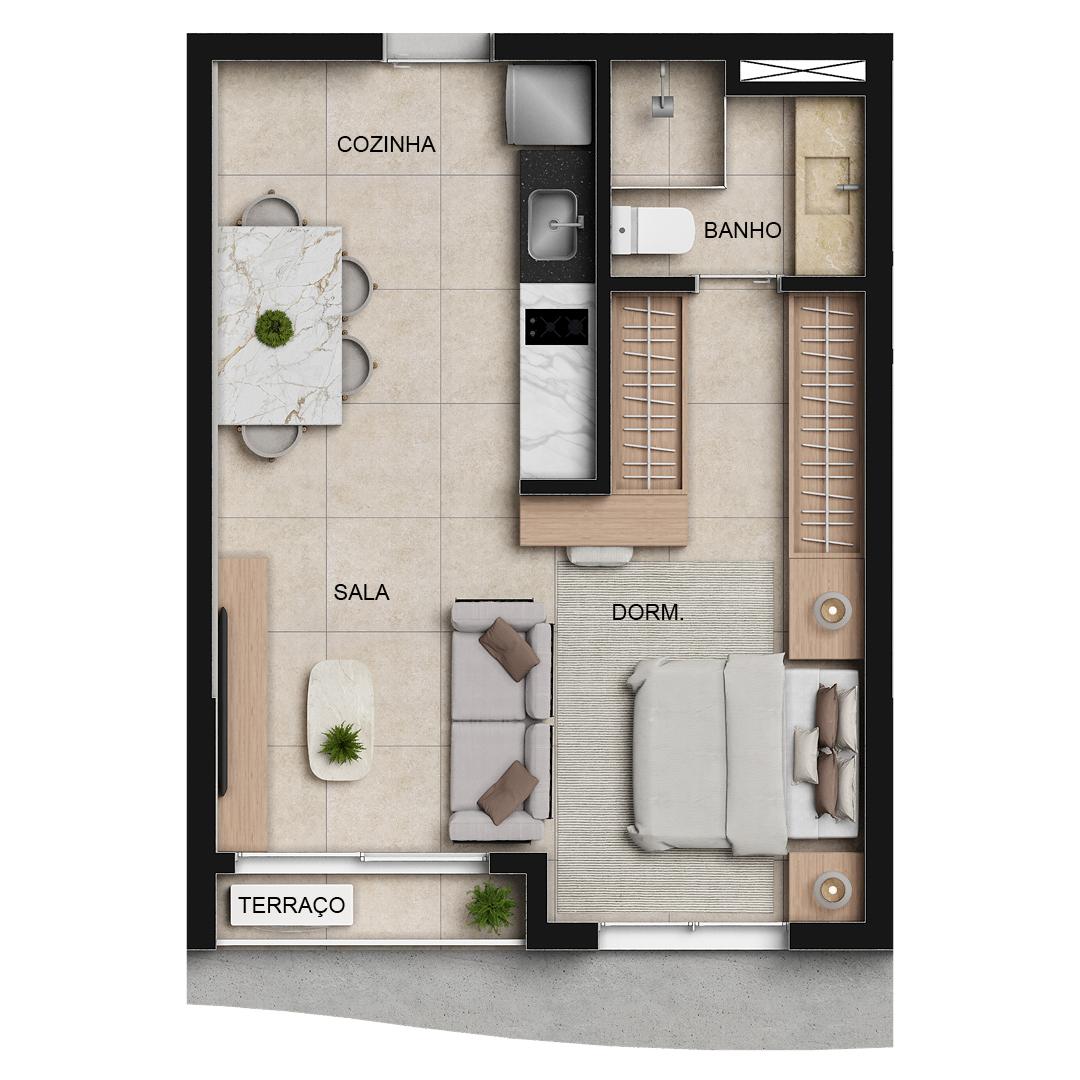 | Apartamento | R$ 397.650,00 | 36 m² | 1 | 1 | 1 |