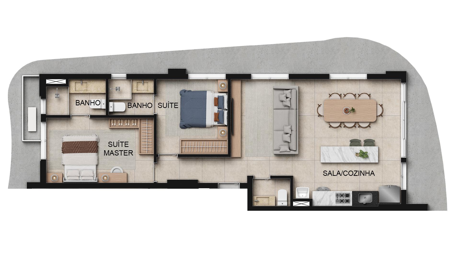 Os apartamentos do Opus Zoom variam entre 36 m² e 71 m², com unidades de 1 suíte entre 36 m² e 38 m² e opções de 2 suítes com 71 m². Os espaços foram planejados para otimizar a funcionalidade, com acabamentos contemporâneos e integração visual proporcionada por janelas amplas. A estrutura inclui tecnologia embarcada e pontos de conectividade que valorizam o conforto diário.