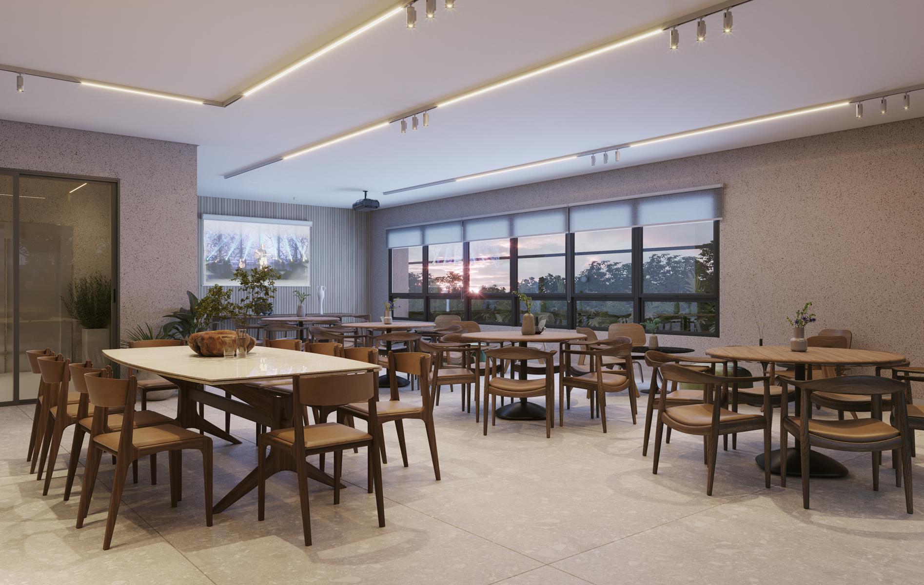 O projeto contempla iluminação LED nas áreas comuns, gerador de emergência, sistemas de automação e projetos térmico, lumínico e acústico voltados à eficiência e conforto.