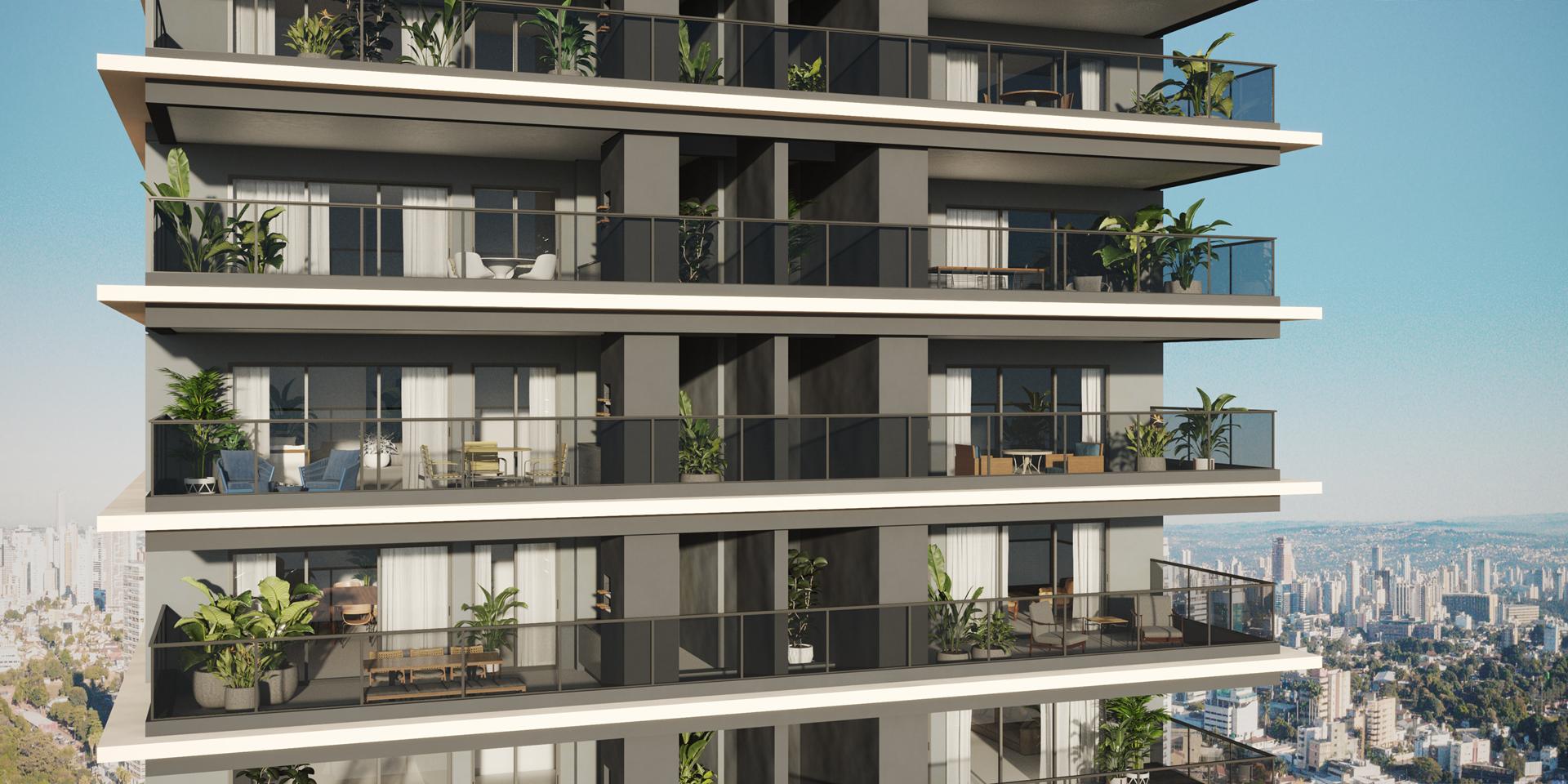 O empreendimento é composto por apartamentos tipo de 194,64 m² e 259,25 m², com 3 ou 4 suítes, além de penthouses de 391,35 m² e 524,95 m², com 5 suítes e até 4 vagas de garagem.