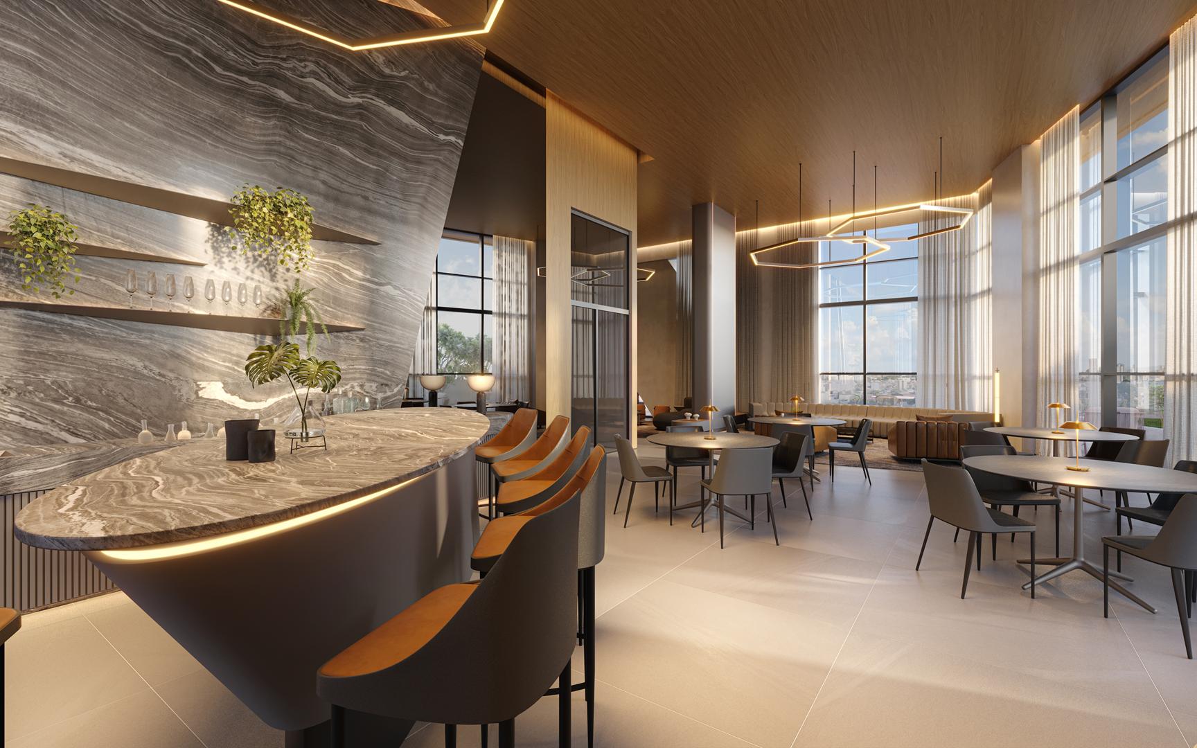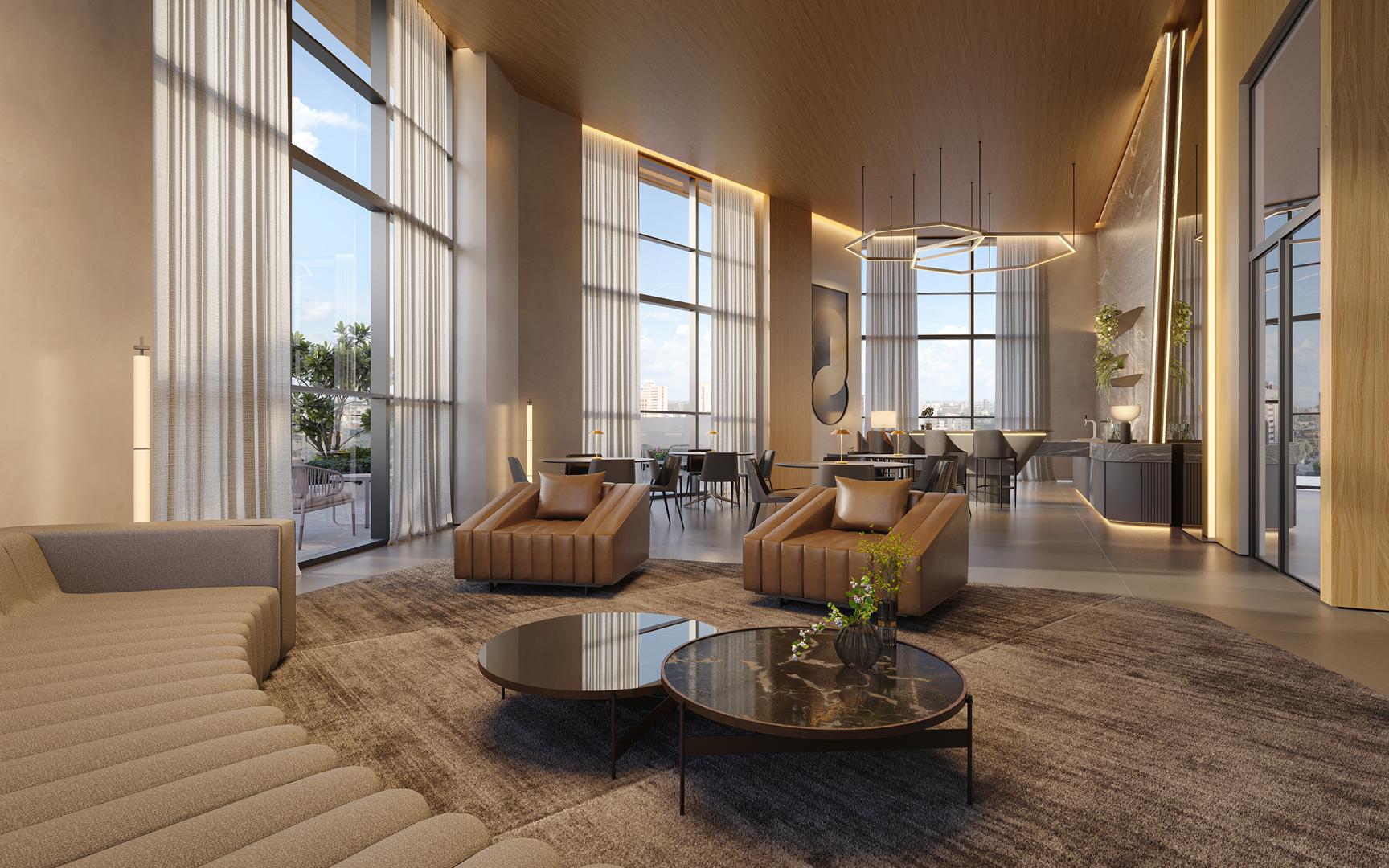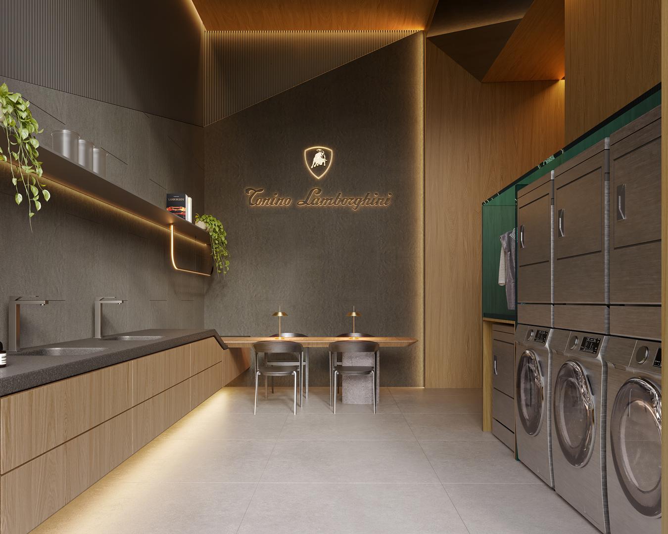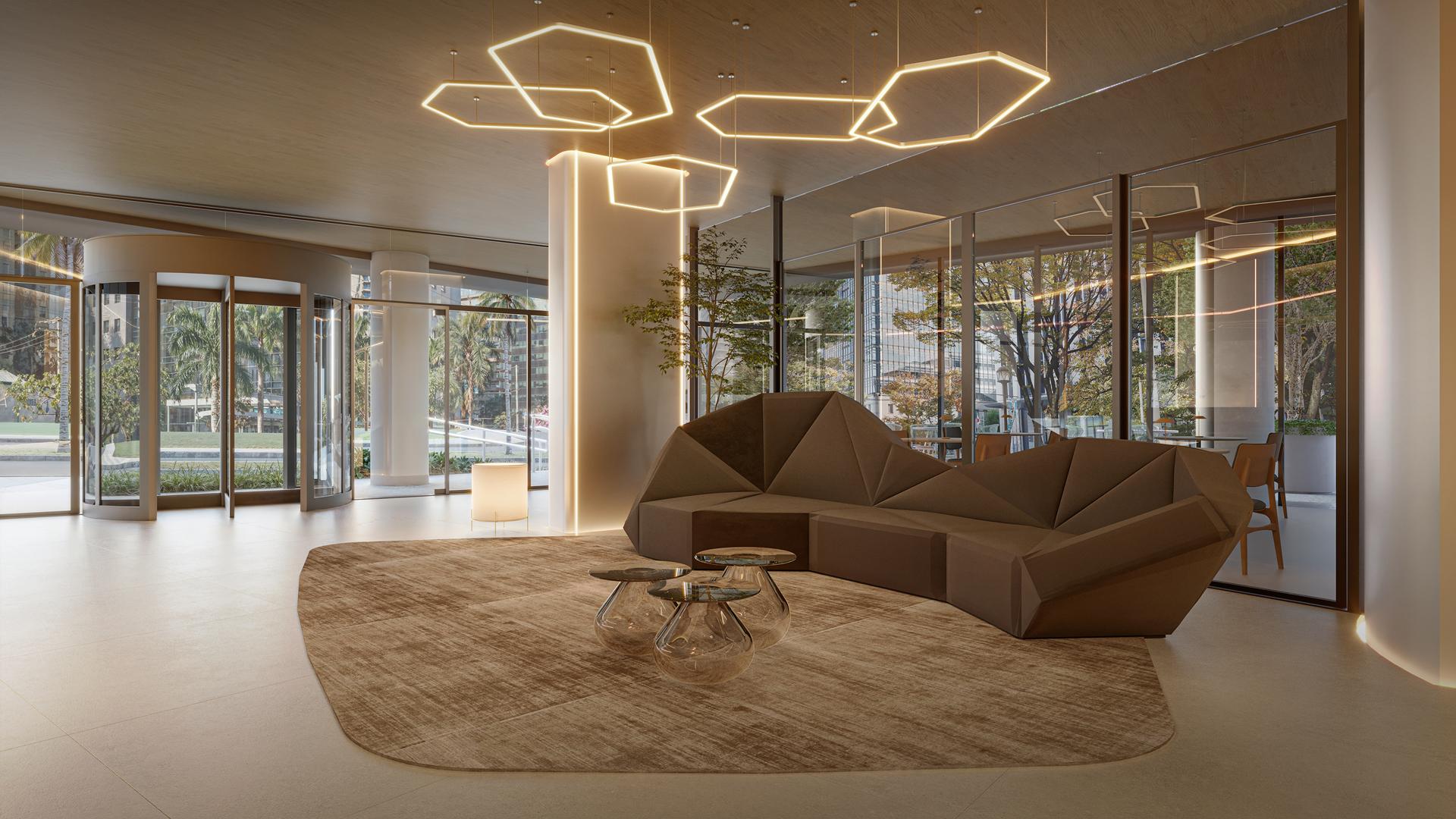 O empreendimento inclui restaurante panorâmico, áreas de lazer independentes, piscina com borda infinita, business center completo, peças originais Tonino Lamborghini, geradores separados e vagas para carros elétricos, além de halls distintos para usos comercial e residencial.