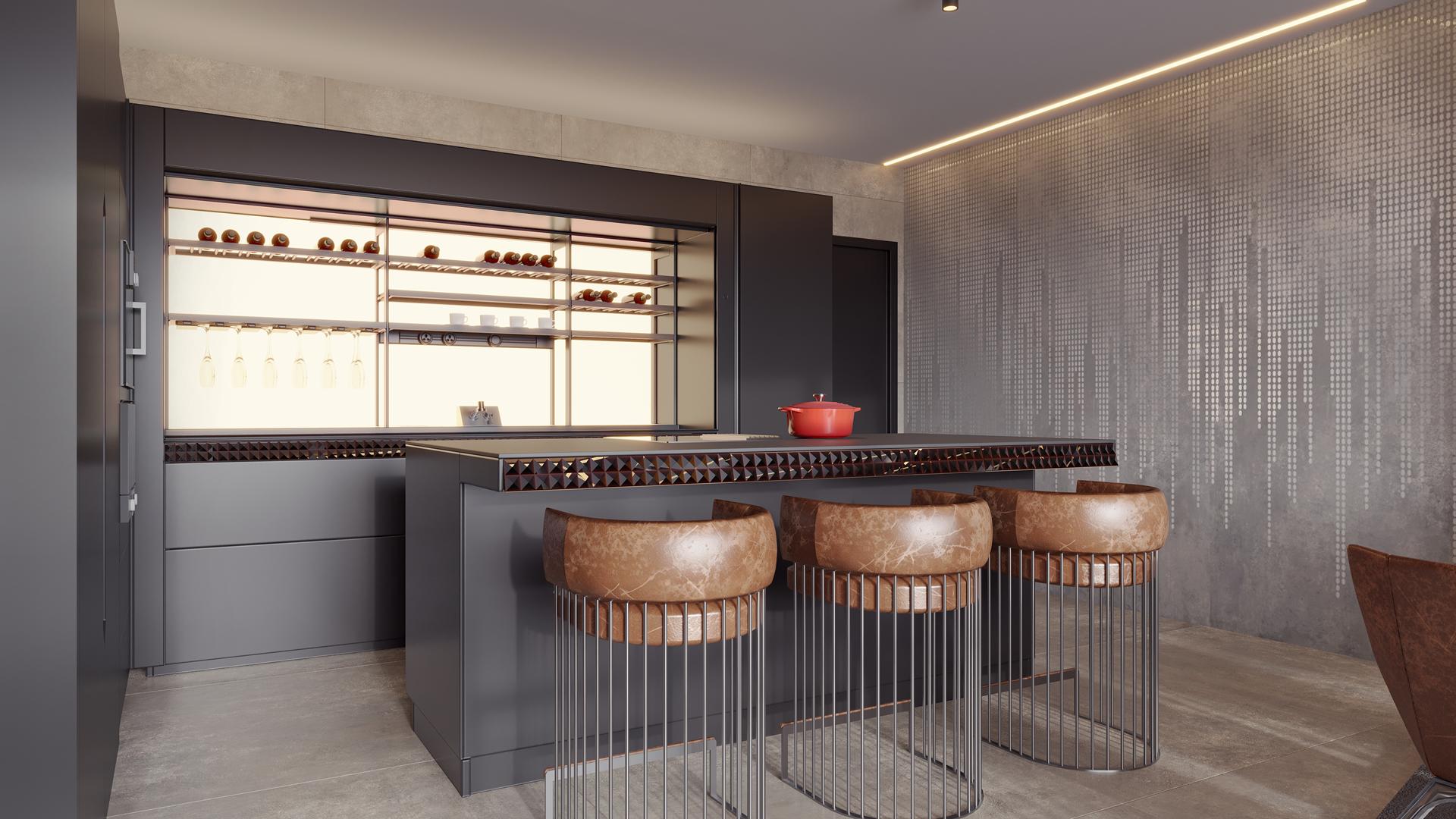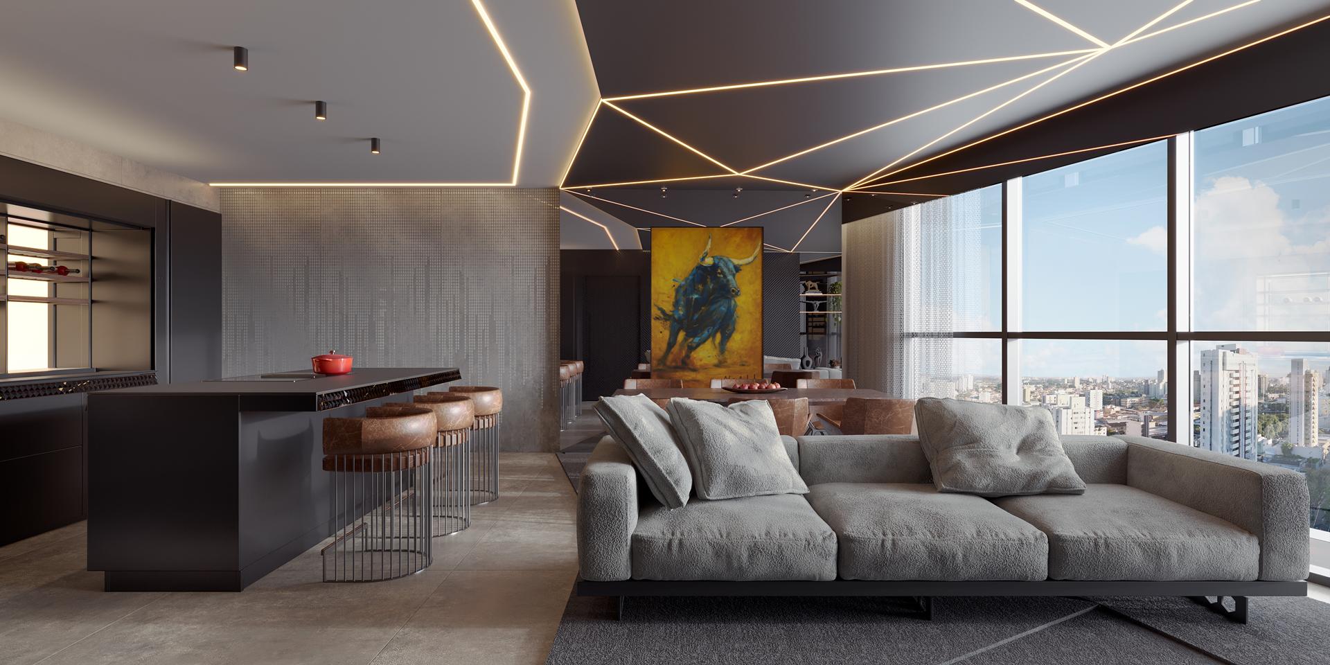 As penthouses estão localizadas no 34º pavimento, oferecendo plantas amplas, com integração entre áreas sociais e aberturas generosas que realçam iluminação e ventilação natural. Os acabamentos seguem o padrão elevado do projeto, com materiais nobres, infraestrutura completa para ar-condicionado e acesso direto às áreas superiores. As unidades privilegiam privacidade, vista alta e proximidade com o rooftop, onde estão os ambientes de lazer premium do empreendimento.