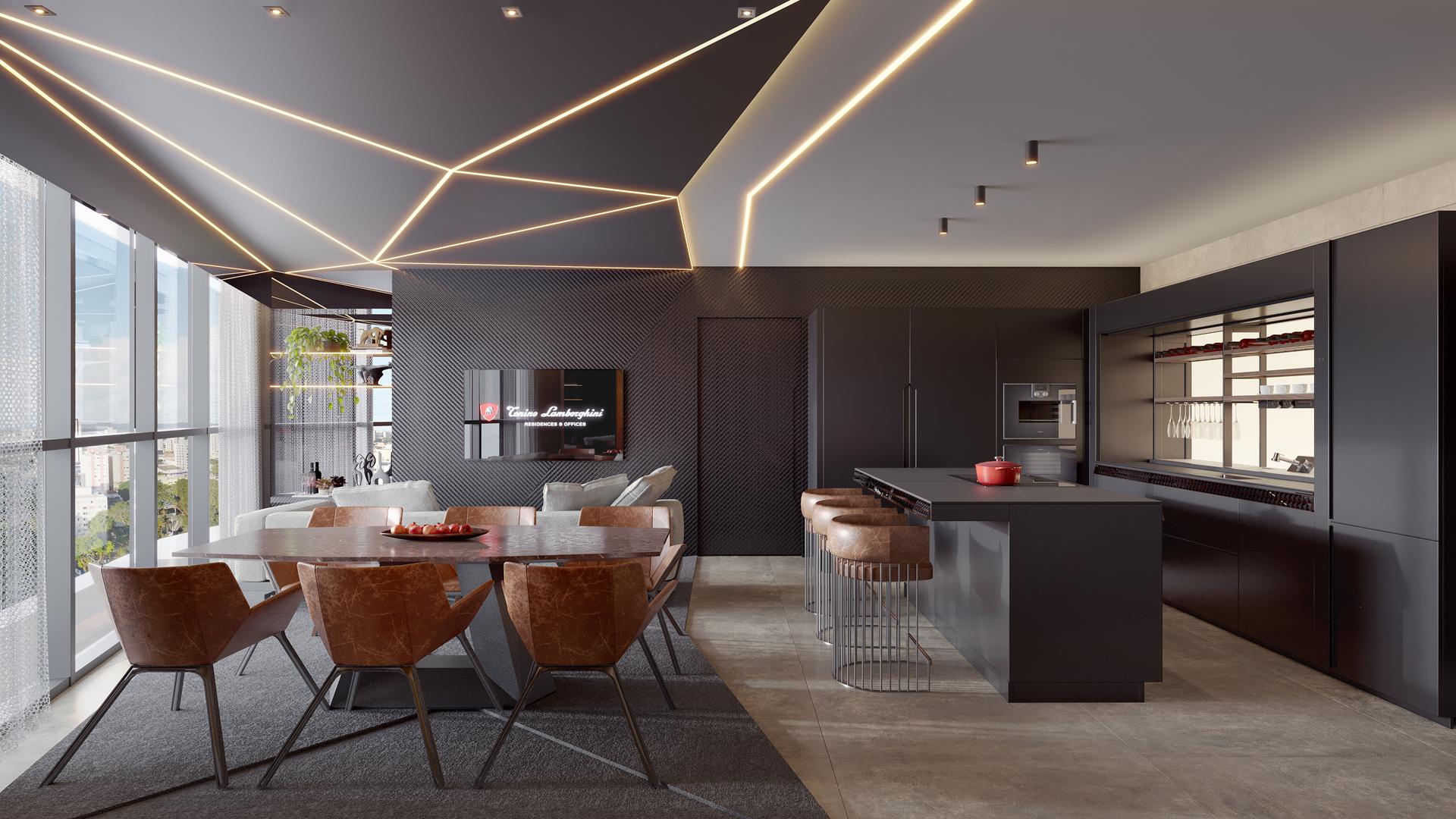 O Tonino Lamborghini Residences & Offices reúne unidades residenciais e comerciais em uma torre única, com apartamentos de 57,36 m², 66,82 m² e 92,33 m². As plantas incluem 1, 2 e 3 quartos, com suítes conforme tipologia. O projeto adota acabamentos de alto padrão, esquadrias amplas em alumínio, laje técnica central, infraestrutura completa para ar-condicionado e áreas de lazer independentes, além de piscina com borda infinita no rooftop e peças originais Tonino Lamborghini nos ambientes comuns.