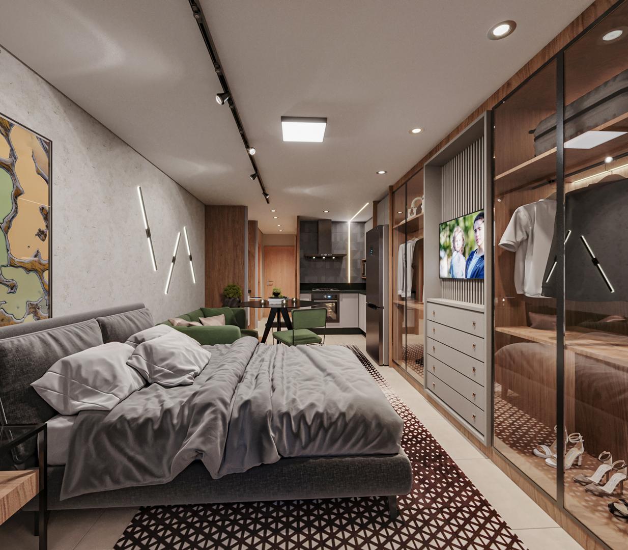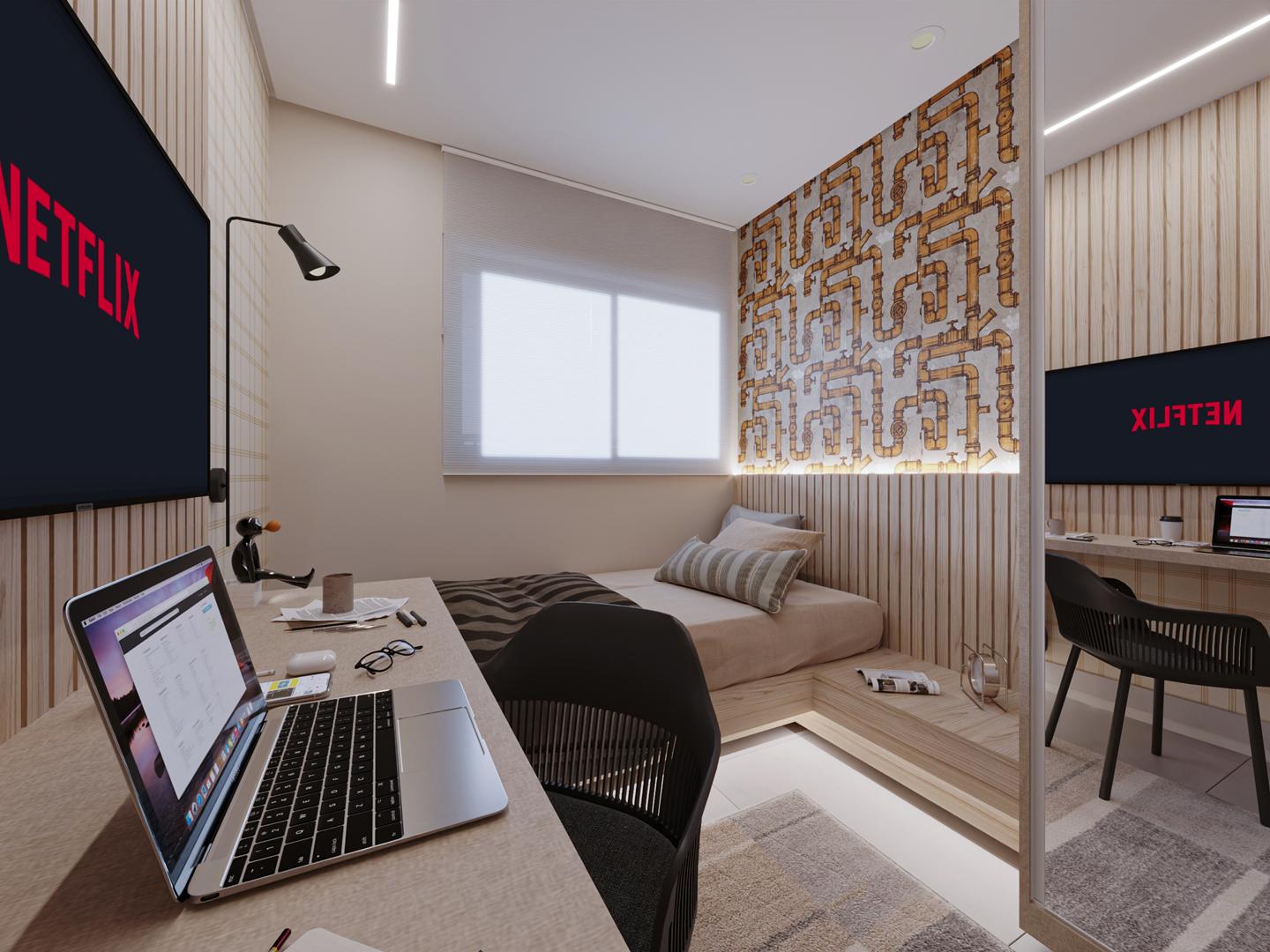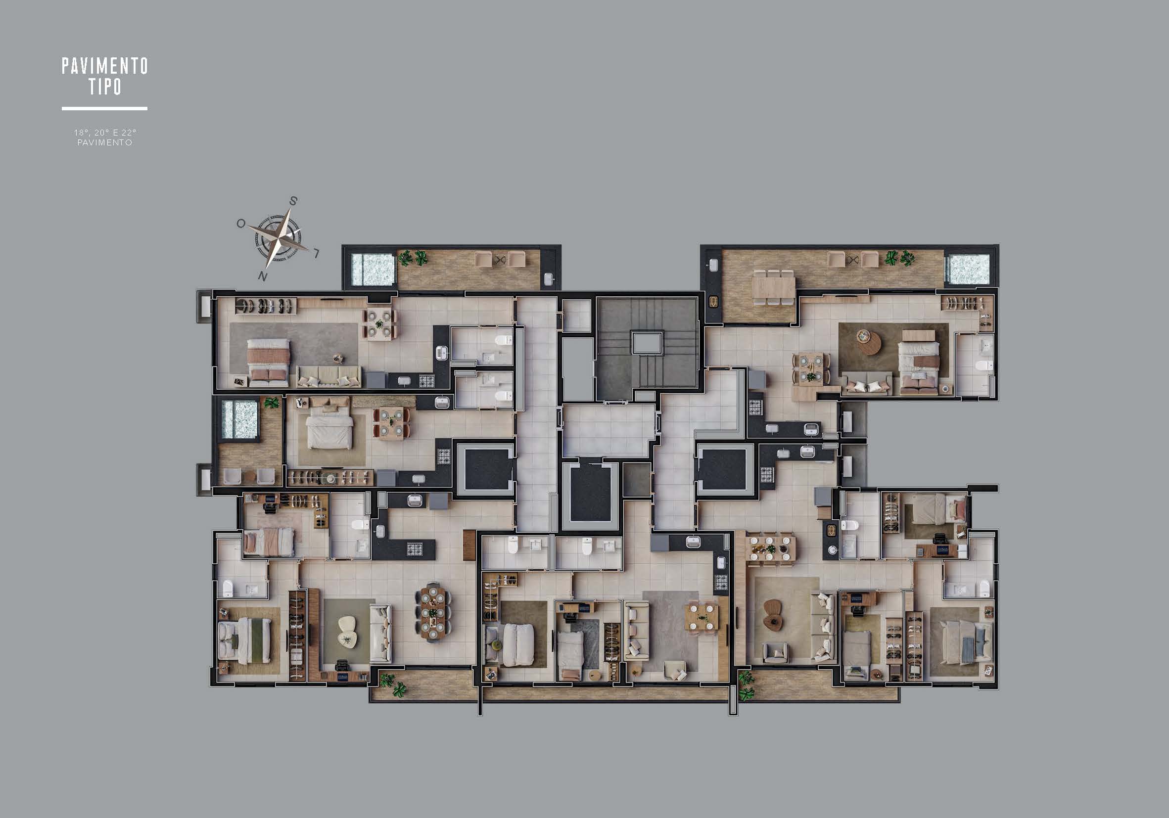 Entre os diferenciais estão a piscina de nado infinito, coworking integrado ao lobby, wine gourmet, fitness indoor e outdoor, espaço de leitura e automação residencial. O conjunto de lazer foi projetado para o estilo de vida moderno.