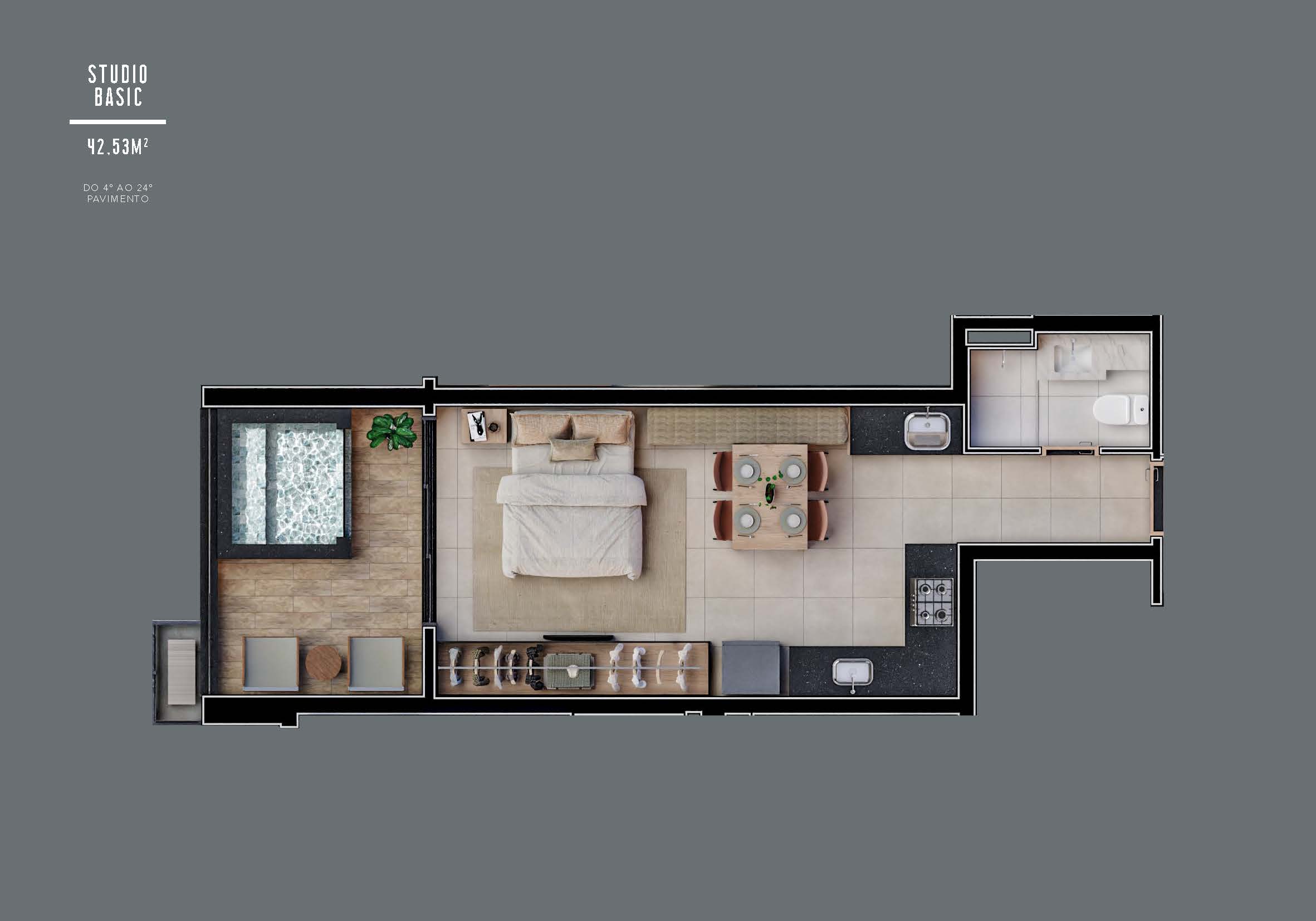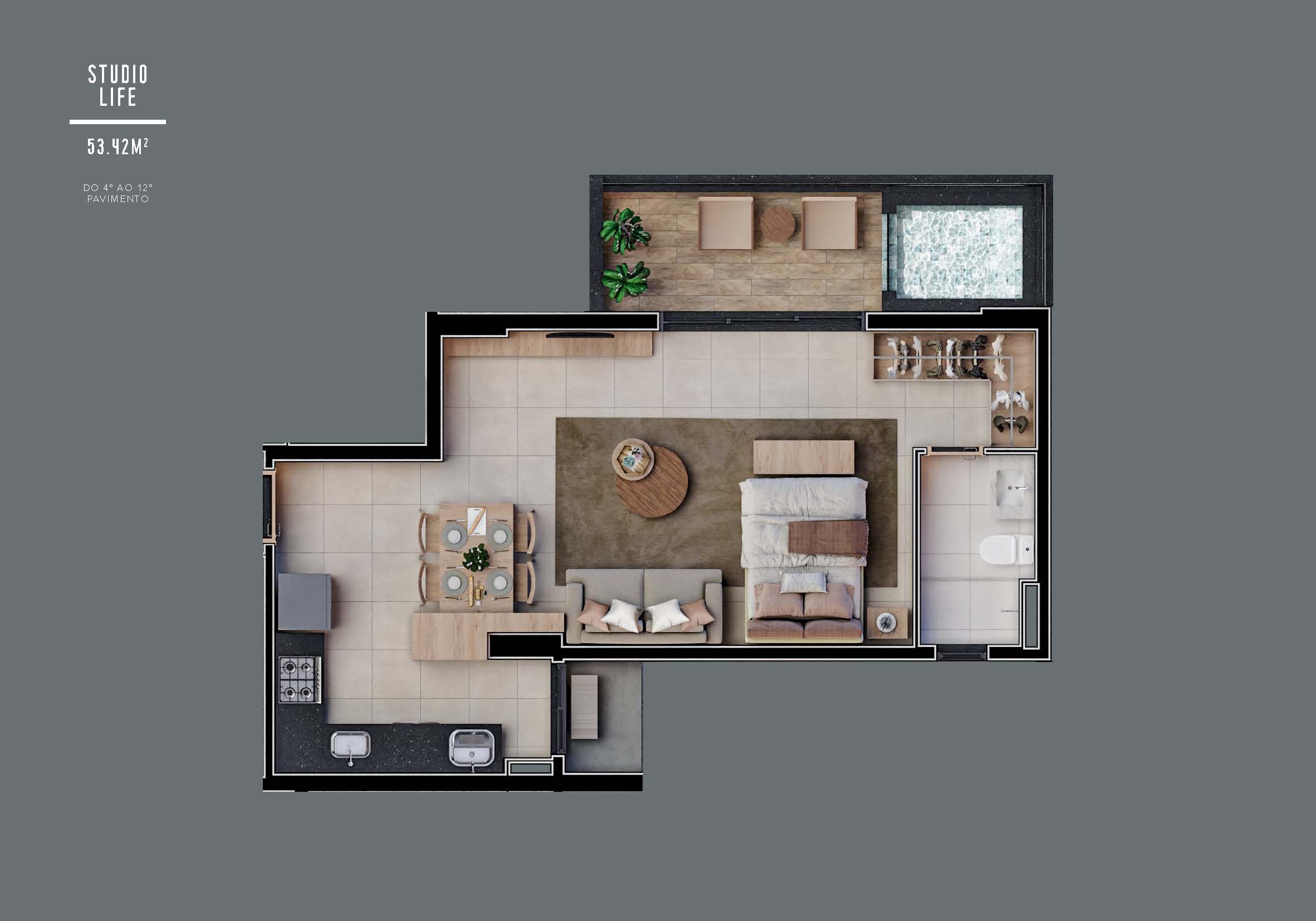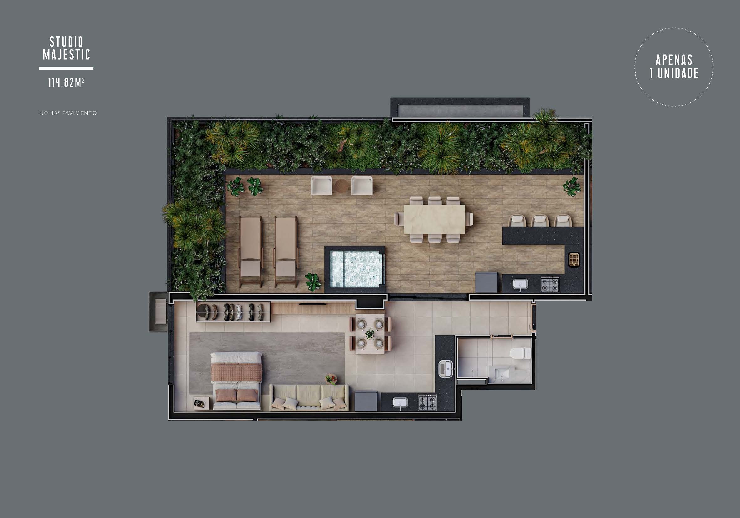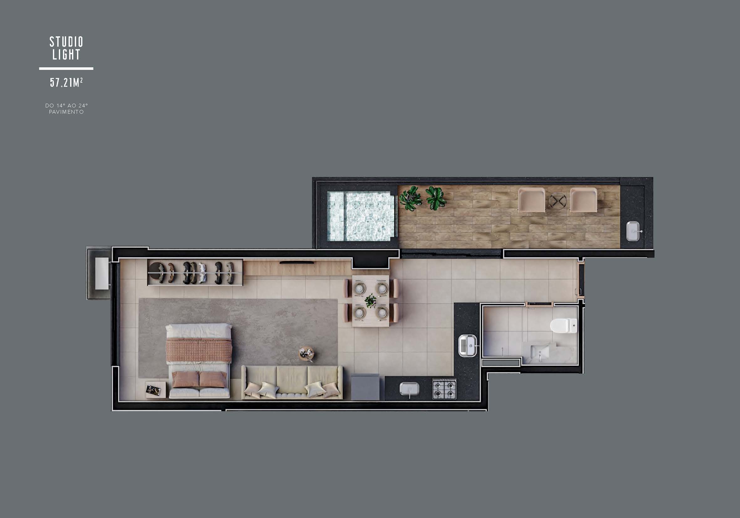 Entre os diferenciais estão a piscina de nado infinito, coworking integrado ao lobby, wine gourmet, fitness indoor e outdoor, espaço de leitura e automação residencial. O conjunto de lazer foi projetado para o estilo de vida moderno.