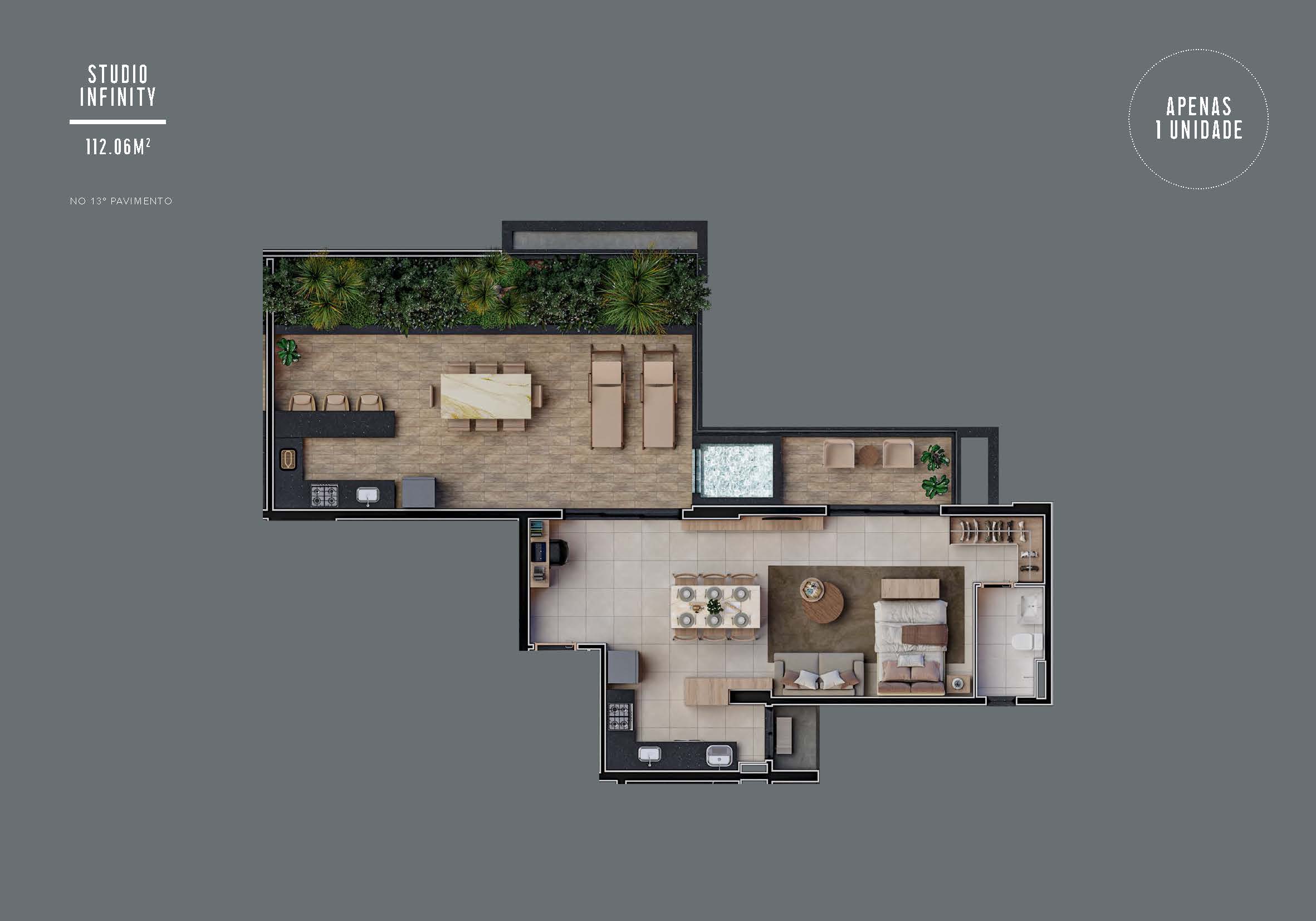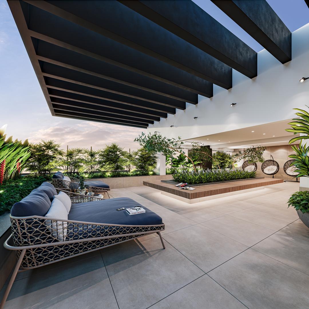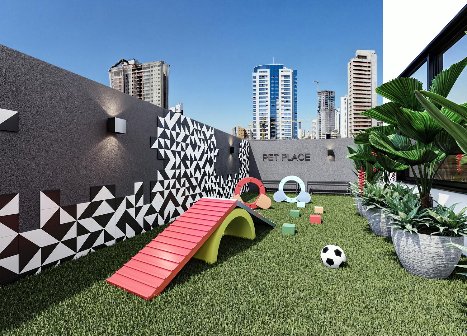 O condomínio oferece mais de 850 m² de lazer, incluindo piscina de nado infinito, hidromassagem, espaço gourmet, brinquedoteca, pet place, coworking e terraço com área de leitura e espaço ecumênico.