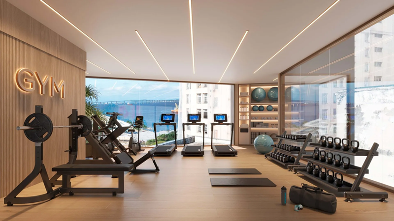 O condomínio do Agora Studios Boutique reúne áreas funcionais e espaços de lazer bem distribuídos, criando um ambiente moderno e prático no Centro do Rio.