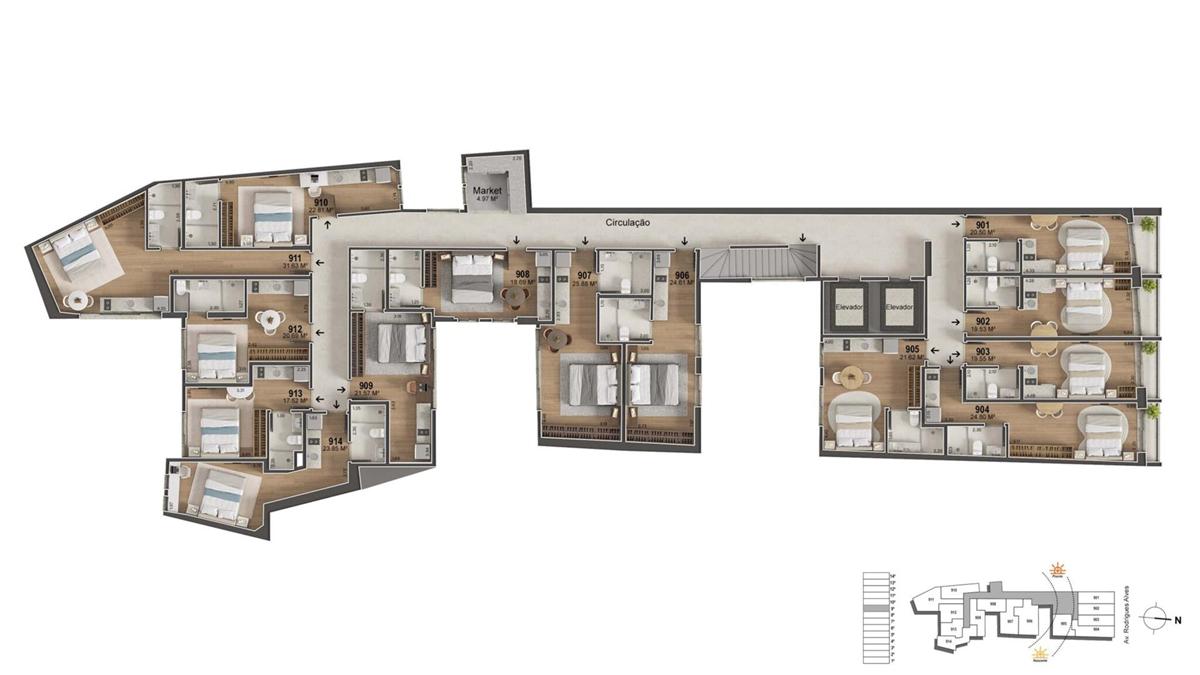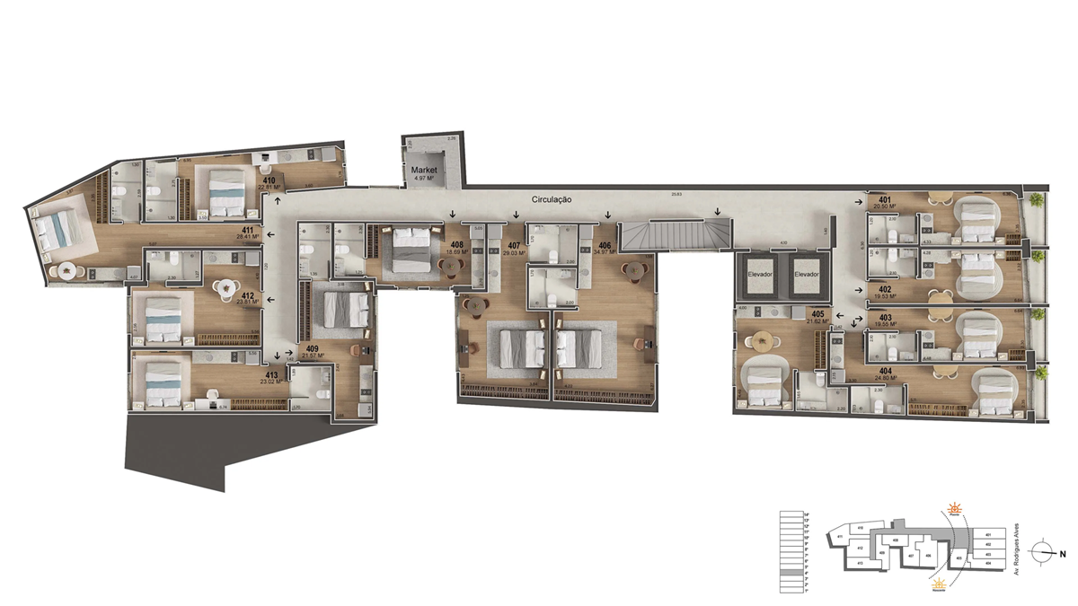 Os studios do Agora Studios Boutique foram planejados para oferecer praticidade e conforto em plantas que variam entre 17 m² e 34 m². A distribuição interna favorece o uso inteligente dos ambientes, permitindo personalização e aproveitamento total do espaço. As unidades contam com acabamentos modernos, janelas que valorizam a iluminação natural e toda a funcionalidade necessária para quem busca morar perto de tudo ou investir em locação por temporada ou longa duração.