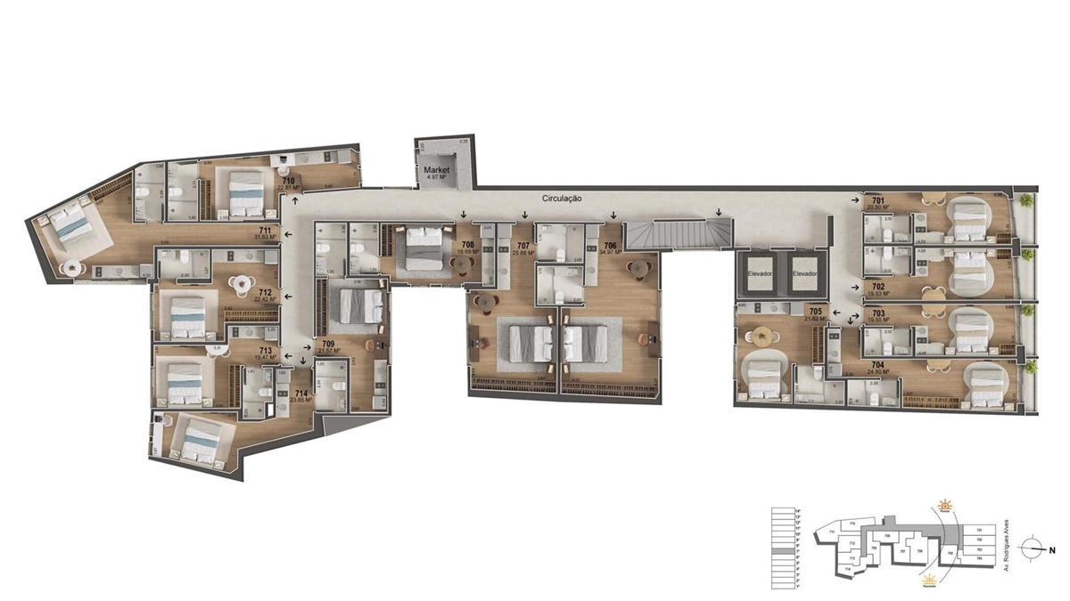 Os studios do Agora Studios Boutique apresentam metragens entre 17 m² e 34 m², com plantas bem distribuídas, ideais para quem busca praticidade no dia a dia ou rentabilidade com locação. O empreendimento reúne espaços atuais, acabamentos funcionais e um conjunto de facilidades completas, incluindo lavanderia, piscina com deck, área gourmet, market e academia. A infraestrutura tecnológica garante ainda mais comodidade, com portaria remota e automação das áreas comuns.