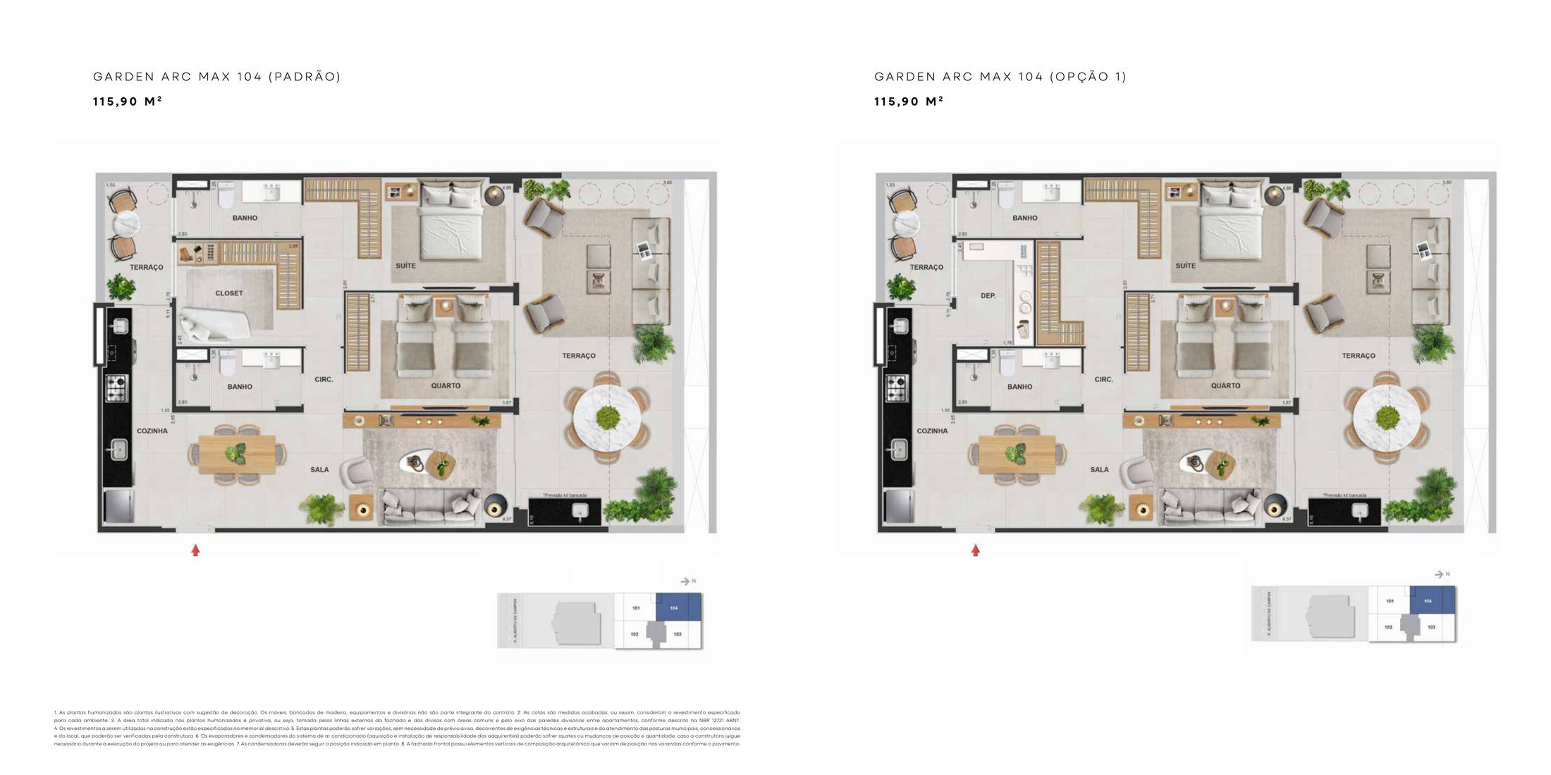 | Apartamento Garden | 115 m² | R$ 3.674.229,00 | 2 | 1 |