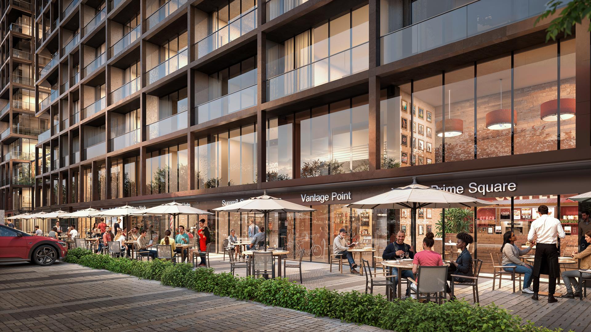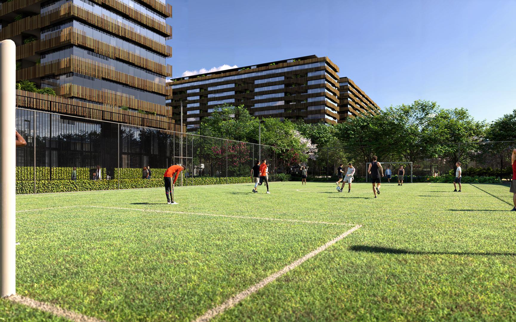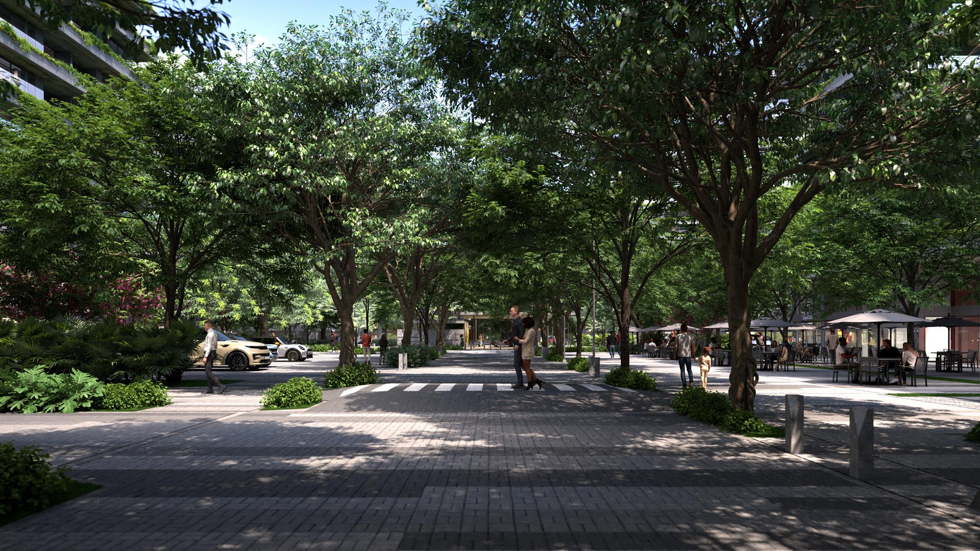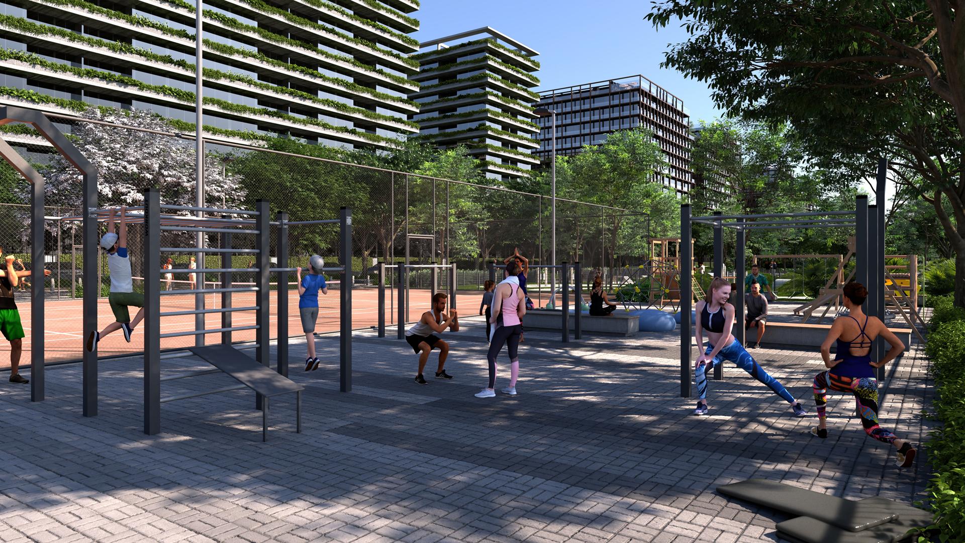 Sim. Cada quadra conta com lojas e serviços, além de minimercado, lavanderia compartilhada, coworking e espaços de lazer.