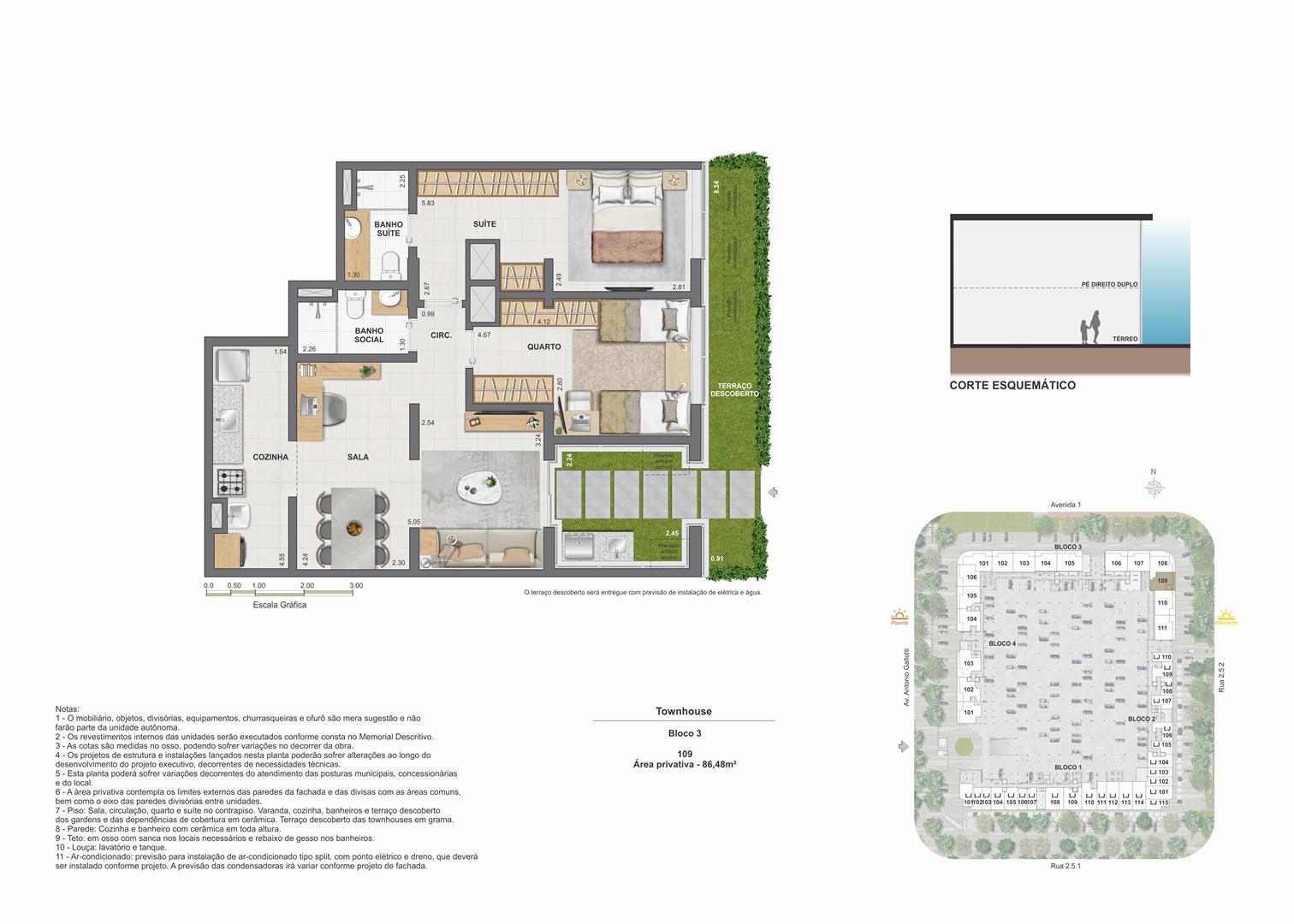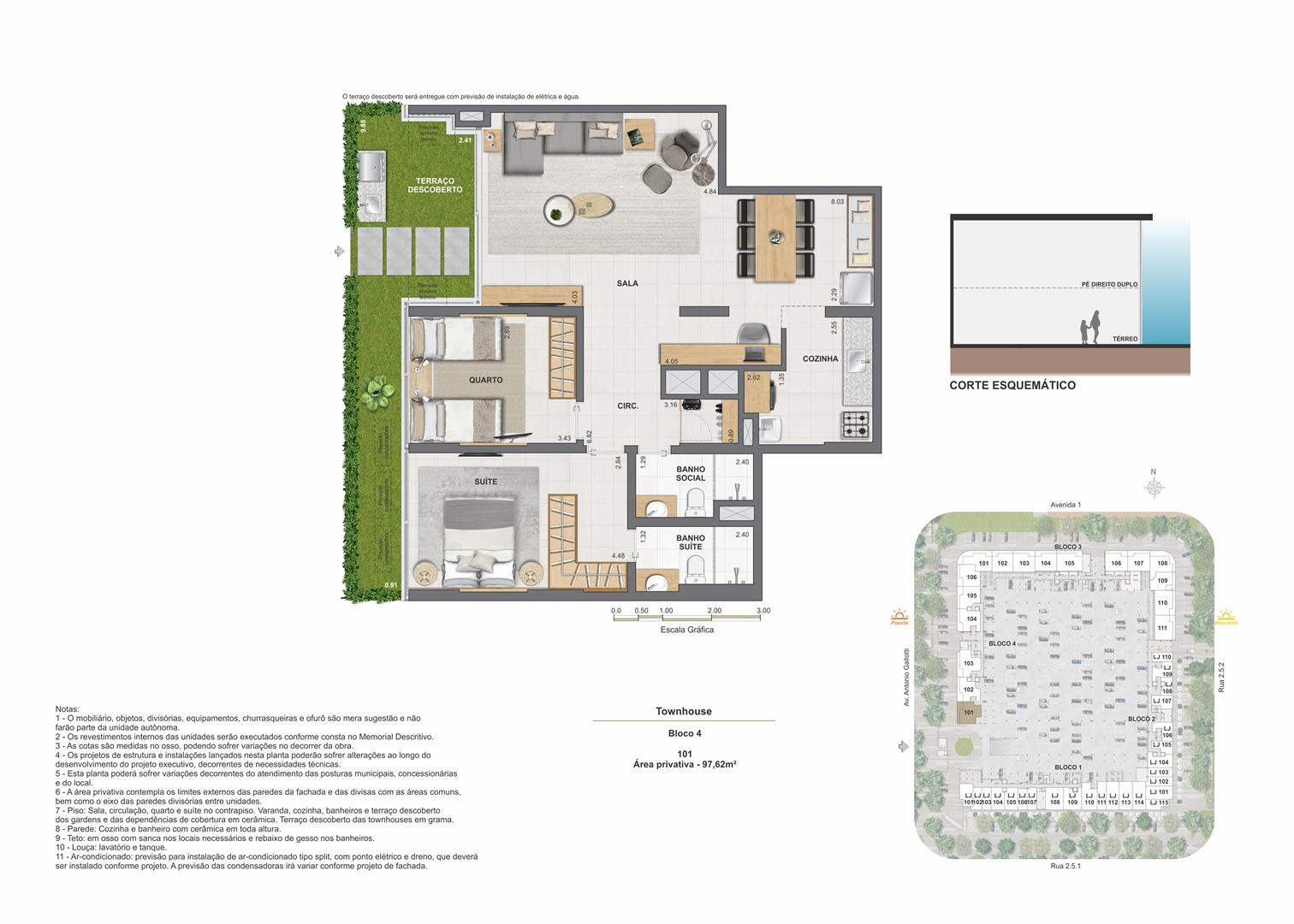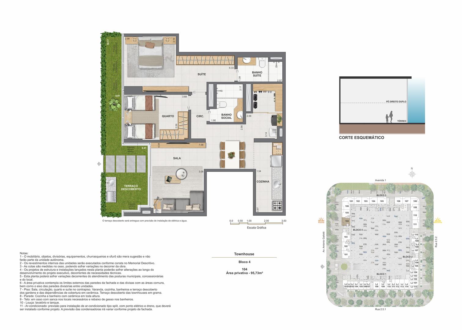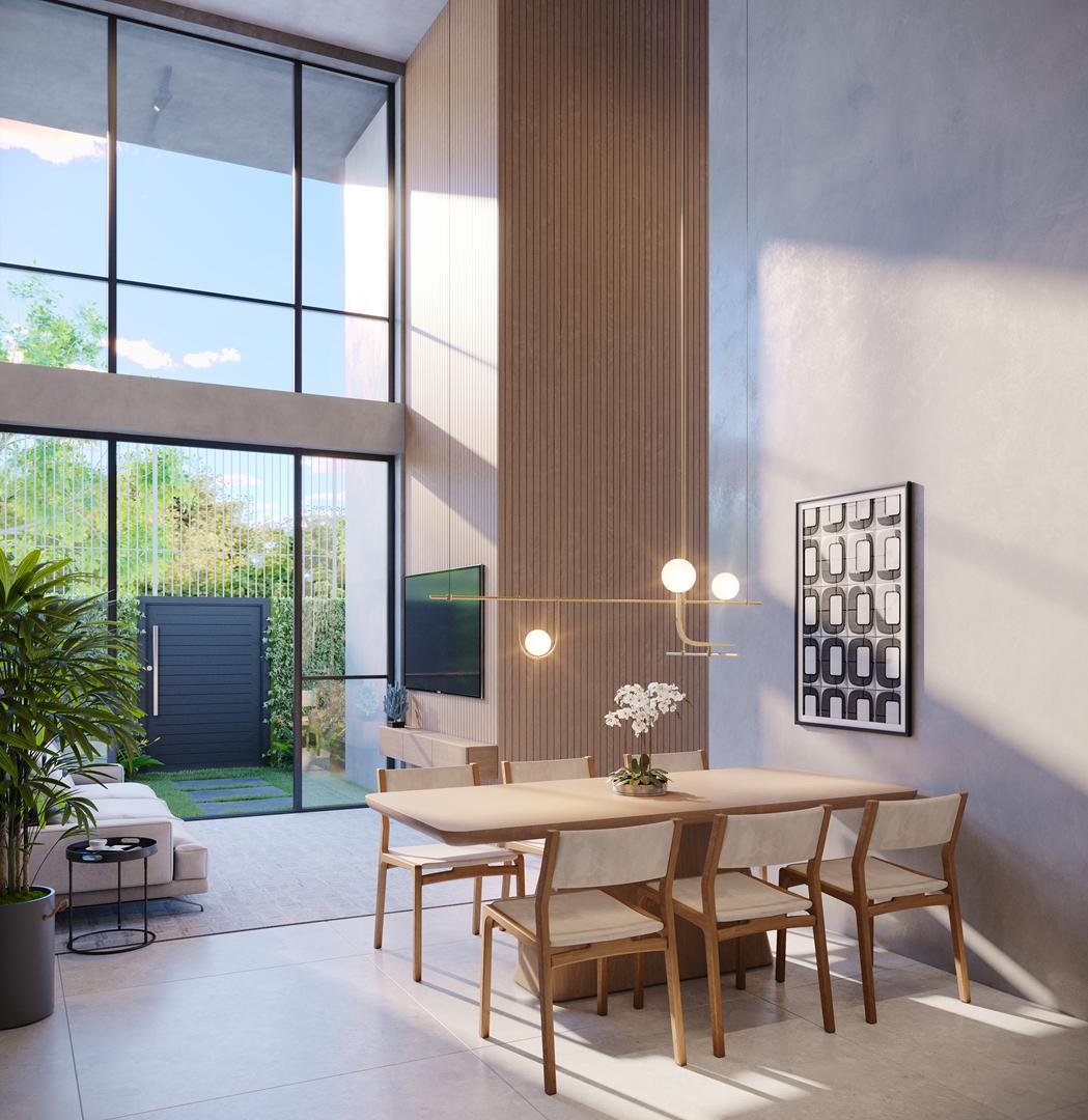 As townhouses do Arte Wood Residences oferecem uma experiência diferenciada, unindo o conforto de uma casa à praticidade de um condomínio. As metragens variam de 86 m² a 113 m², com 2 e 3 quartos e 1 vaga. O design inteligente e o espaço privativo proporcionam liberdade e conforto para famílias que valorizam o contato com o verde e o lazer integrado.