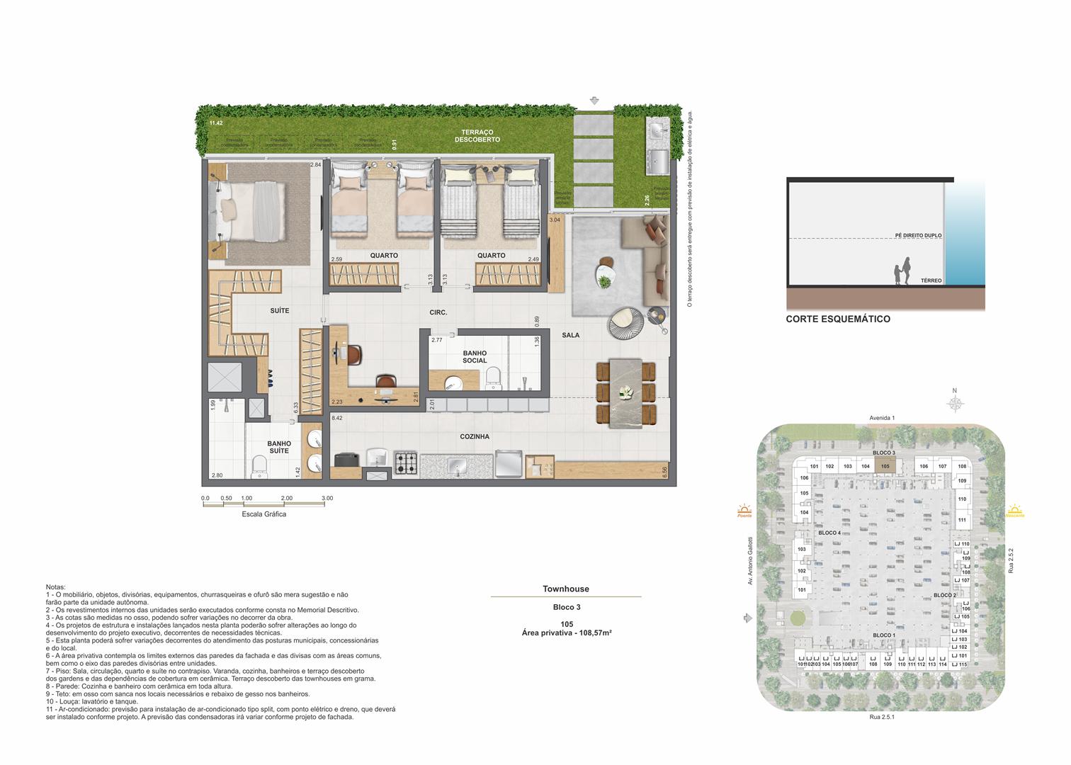 | Townhouse | R$ 979.000,00 | 111 m² | 3 | 1 | 1 |