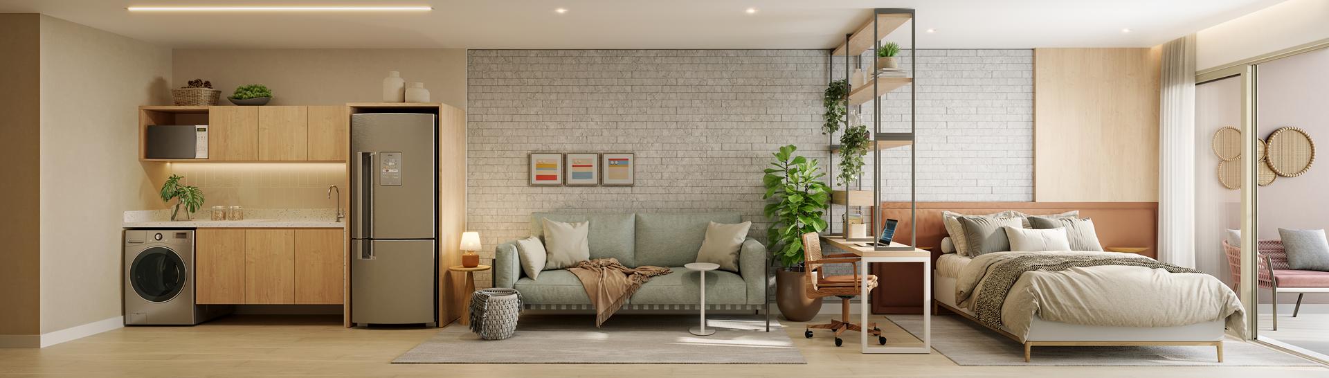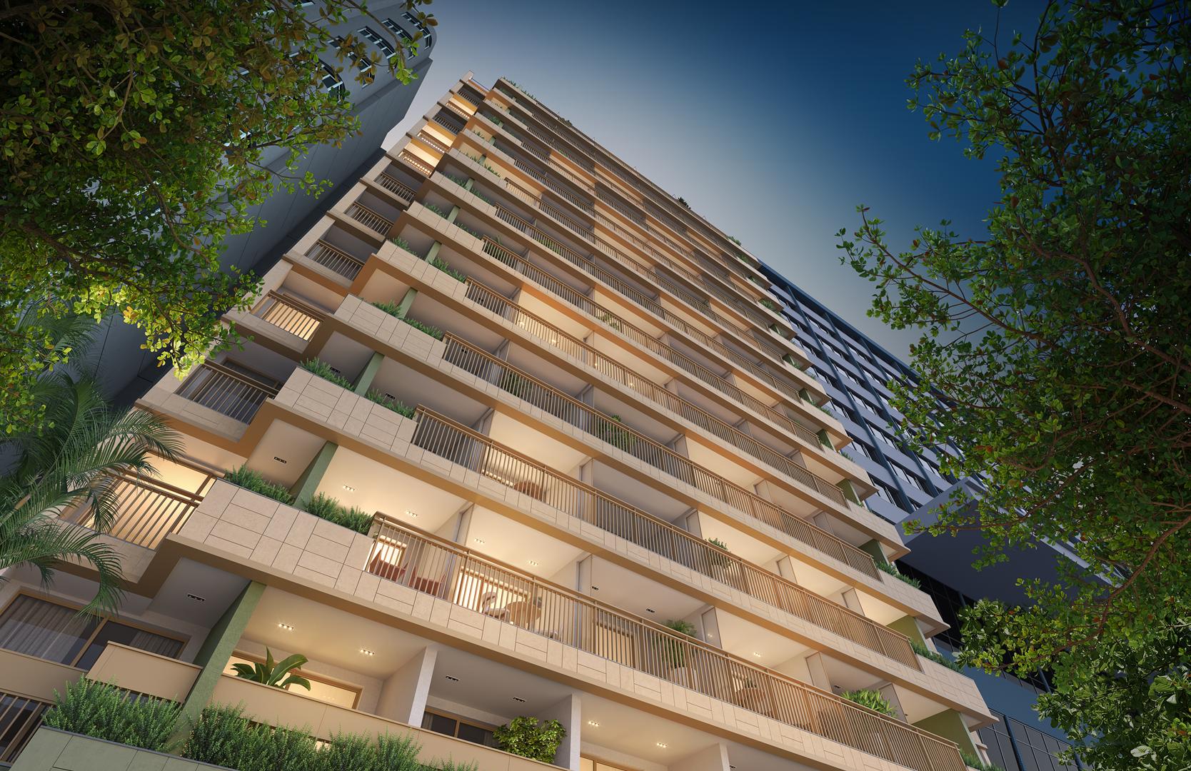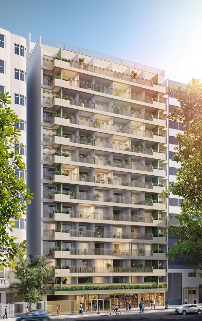 O projeto conta com studios, upgardens, double suites, apartamentos de 1 quarto e coberturas de 2 quartos, com metragens entre 37 m² e 153 m².