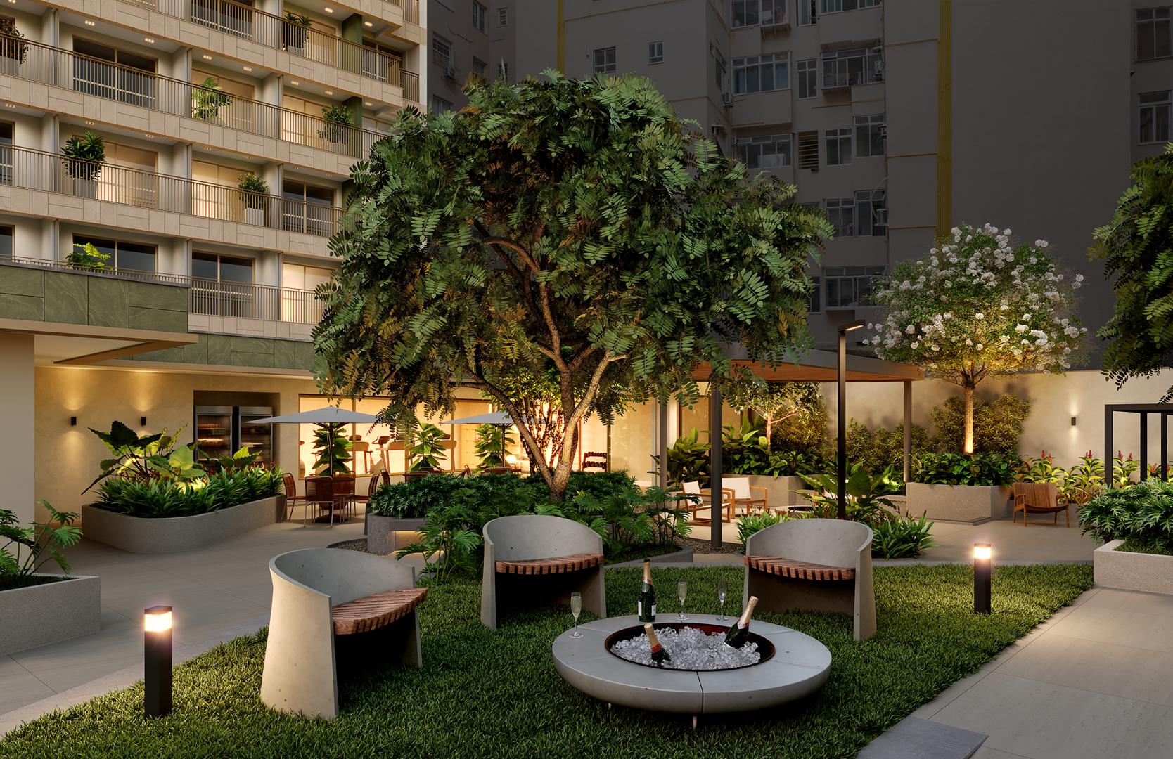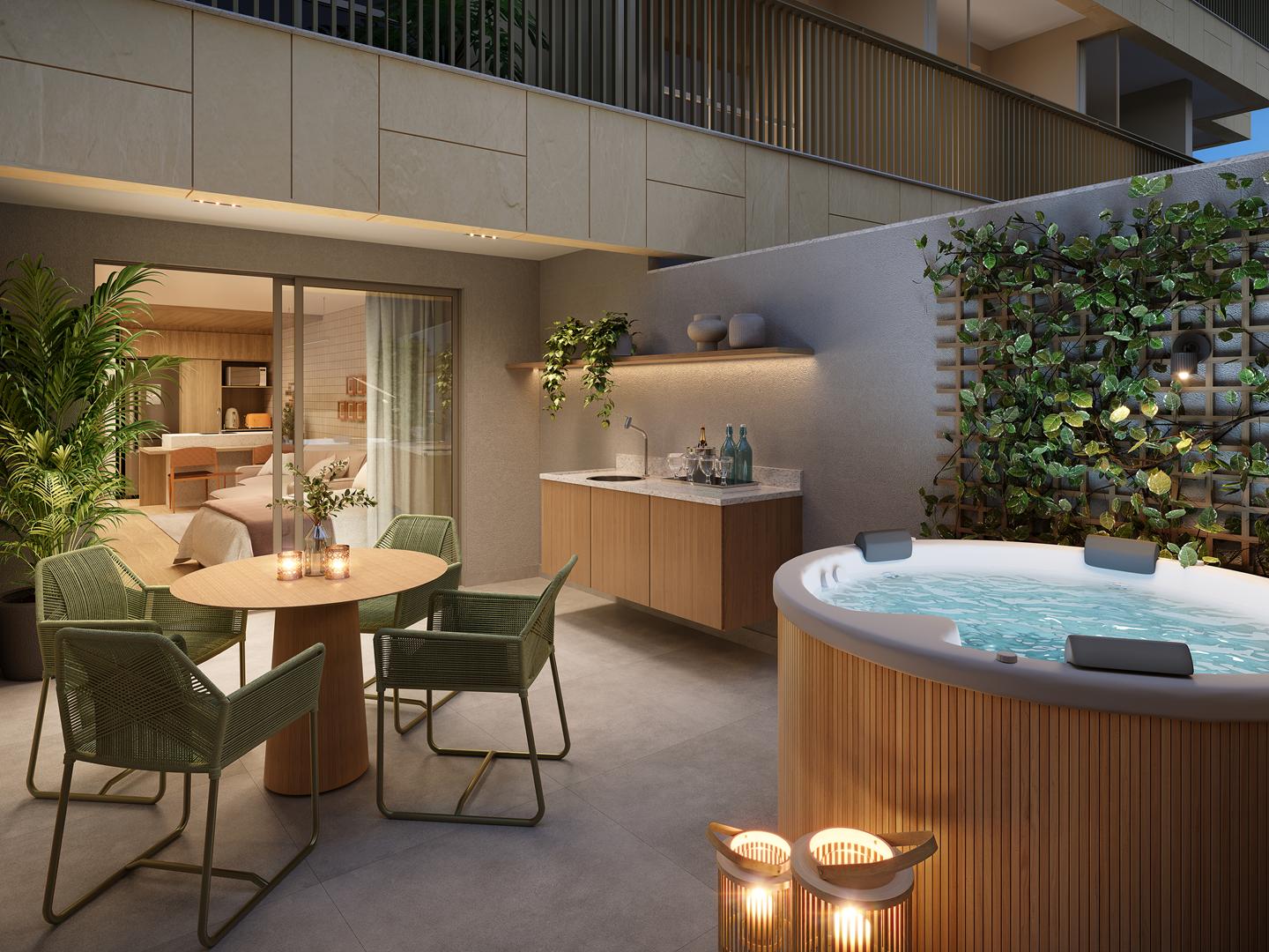 Os upgardens do Be in Rio Praia Copacabana possuem metragens entre 50 m² e 55 m², oferecendo ambientes integrados e área externa privativa. São ideais para quem deseja uma rotina mais aconchegante, com espaço ao ar livre. Essas unidades contam com kit bancada e hidro, além dos mesmos diferenciais das demais tipologias, como infraestrutura para split e fechadura eletrônica.