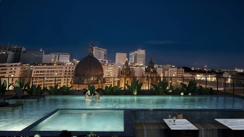 Sim, o rooftop do Brise Studios Design oferece piscina, spa e vista privilegiada da cidade.