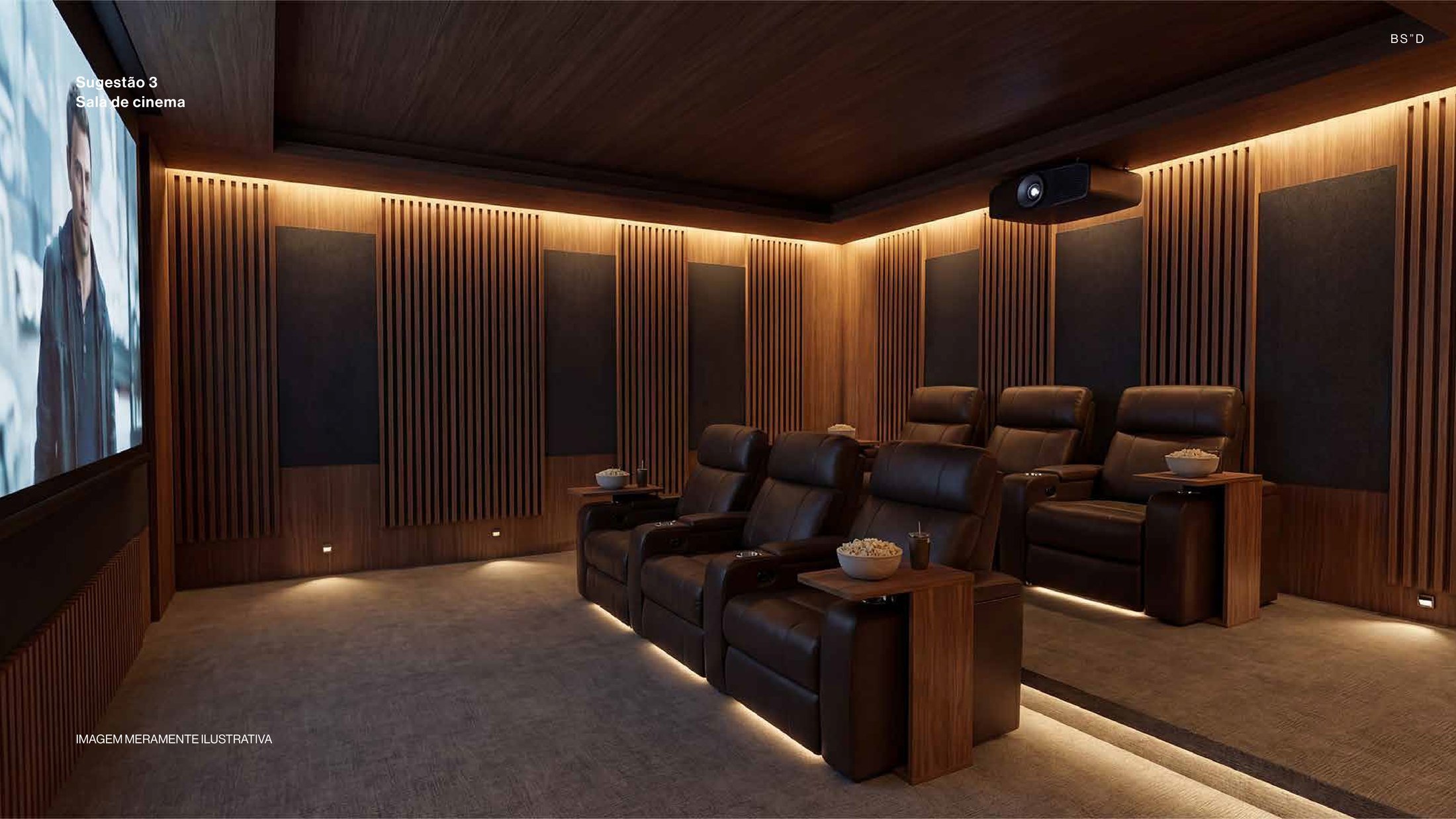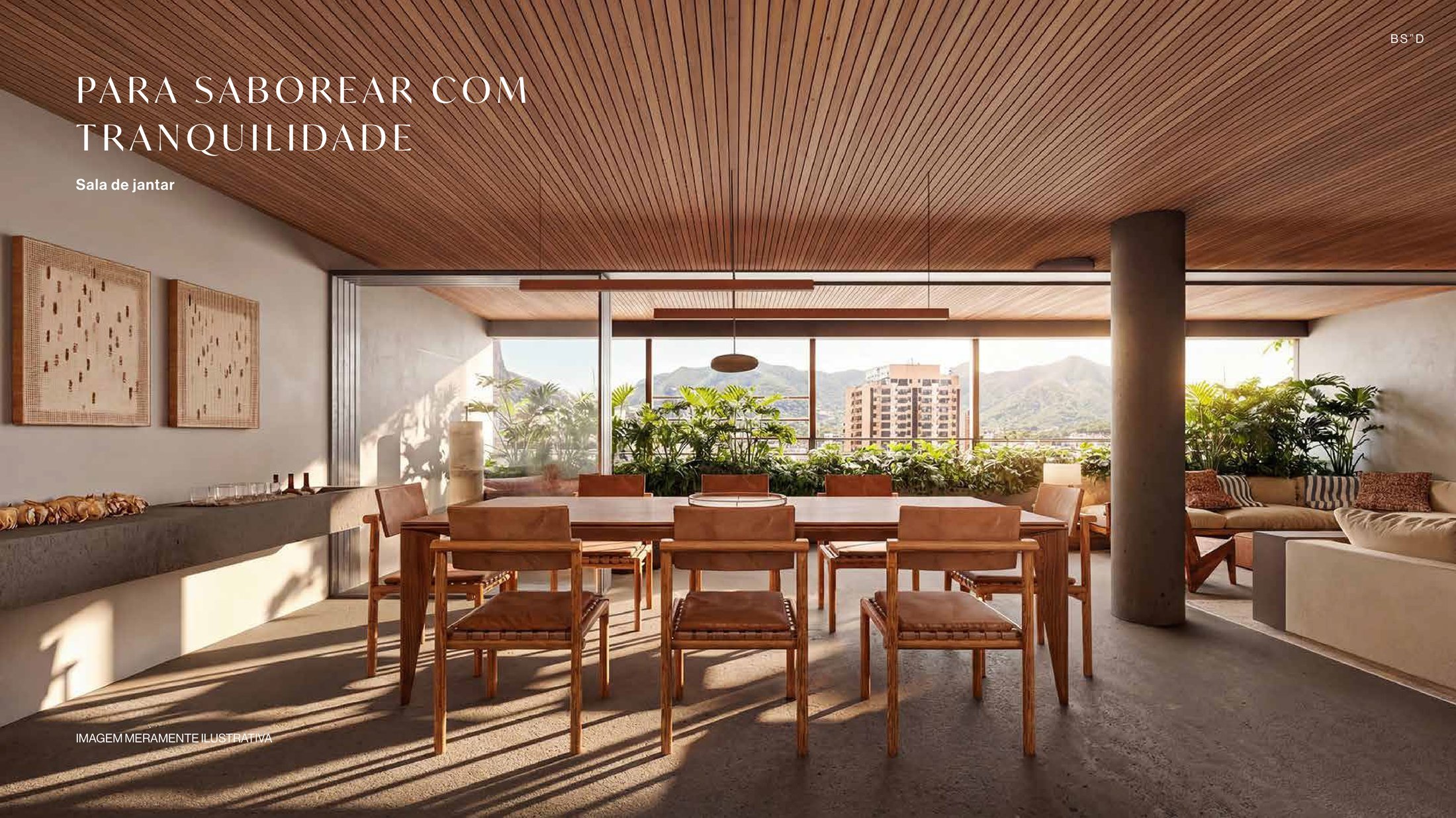 O design é assinado pela Jacobsen Arquitetura (fachada e interiores) e Flávio Bassan, utilizando madeira, concreto e brises de madeira para criar uma estética contemporânea e atemporal.