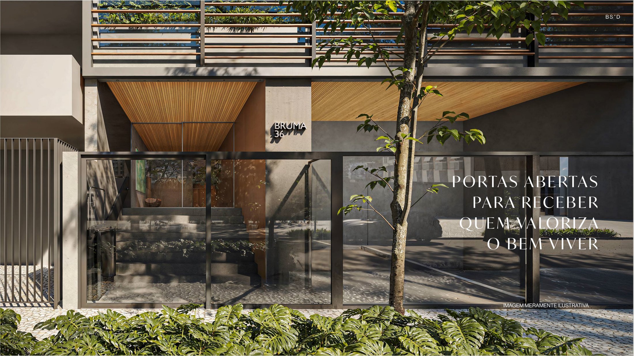 O Bruma apresenta uma coleção exclusiva de apenas 8 unidades na quadríssima da praia do Leblon, com metragens que variam de 227,76 m² a 415,01 m². O projeto oferece apartamentos tipo e garden com 4 suítes, além de uma cobertura duplex com 5 suítes, todos com 2 vagas de garagem. A arquitetura assinada utiliza madeira e concreto em uma estética contemporânea, entregando acabamentos de alto padrão com pisos em porcelanato, amplas varandas integradas ao living e infraestrutura completa para automação e climatização.