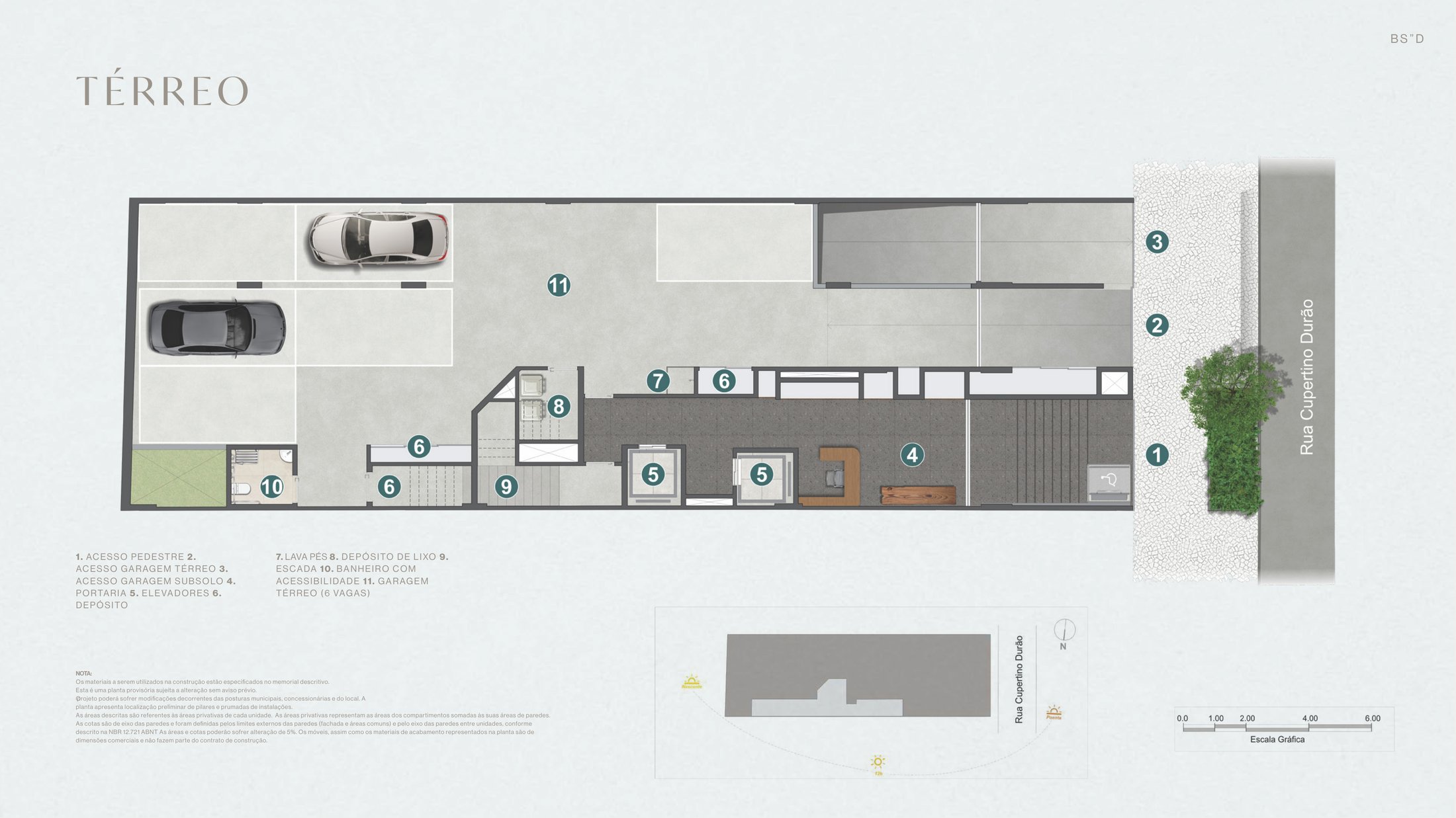Cada unidade do Bruma, independentemente da tipologia, possui direito ao uso de 2 vagas de garagem localizadas no térreo ou subsolo.