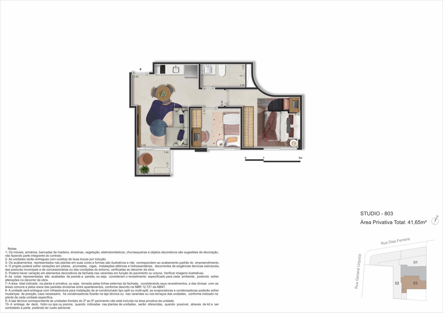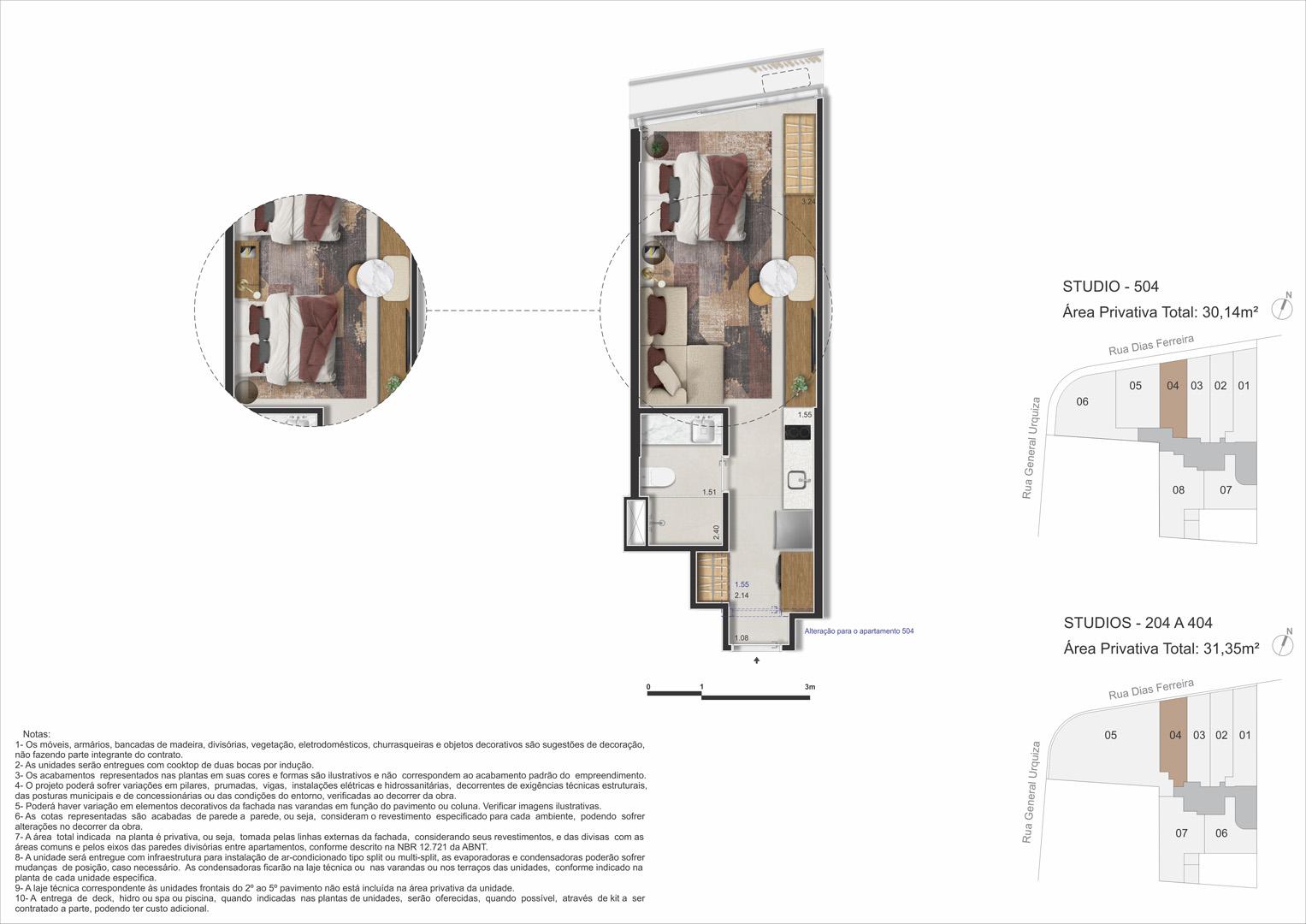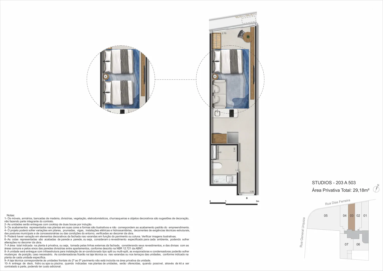 Os apartamentos do Dias Ferreira Leblon Studios foram projetados para aproveitar cada metro com eficiência, oferecendo plantas modernas e funcionais. As unidades variam de 29 m² a 51 m², podendo variar entre studios ou double suites. Ideais para quem busca um estilo de vida urbano e prático, os imóveis entregam conforto em um dos melhores endereços do Leblon.