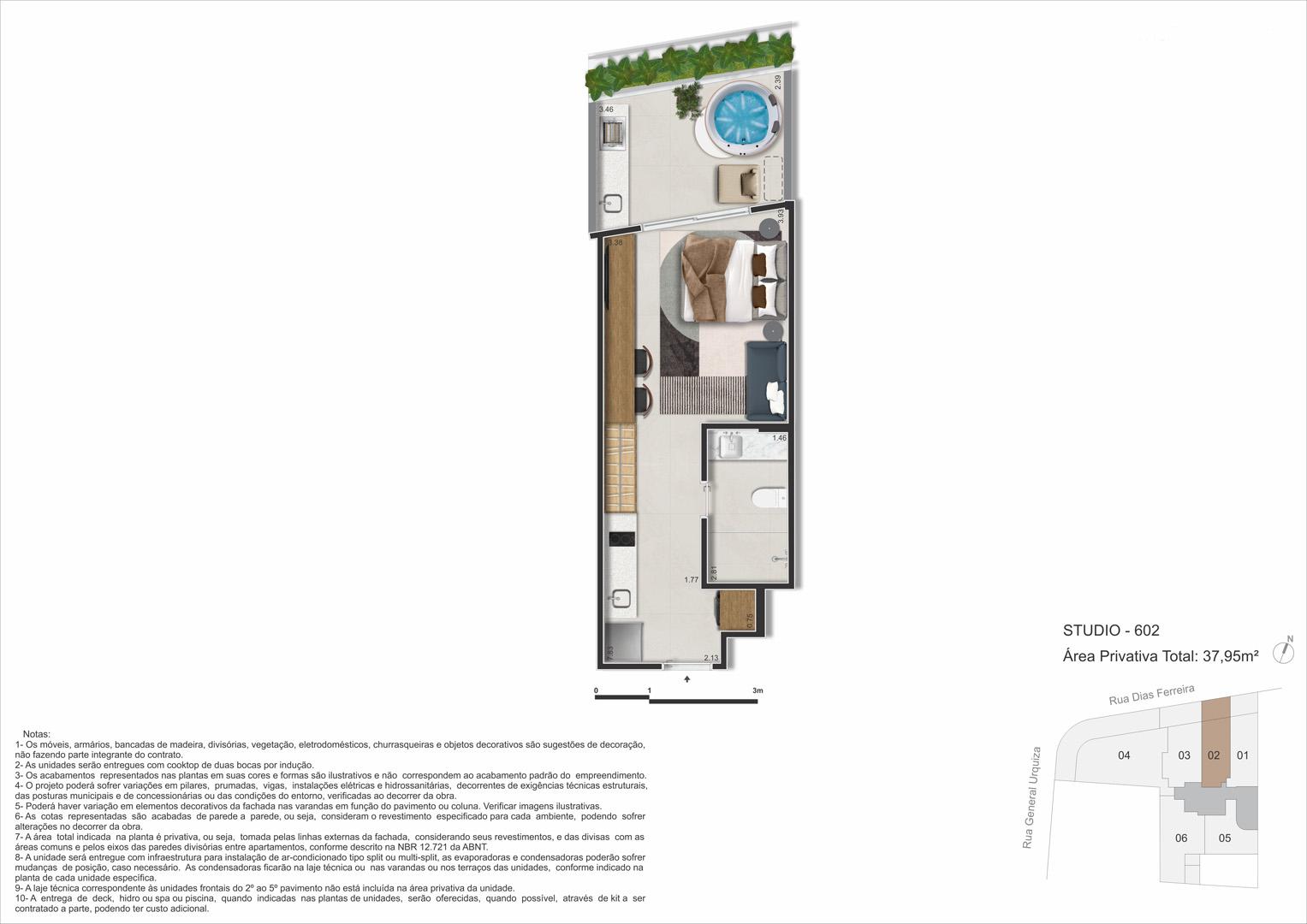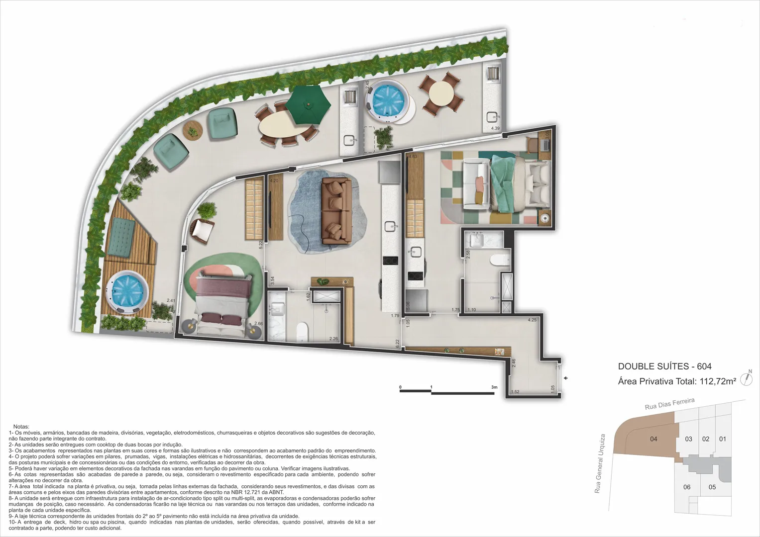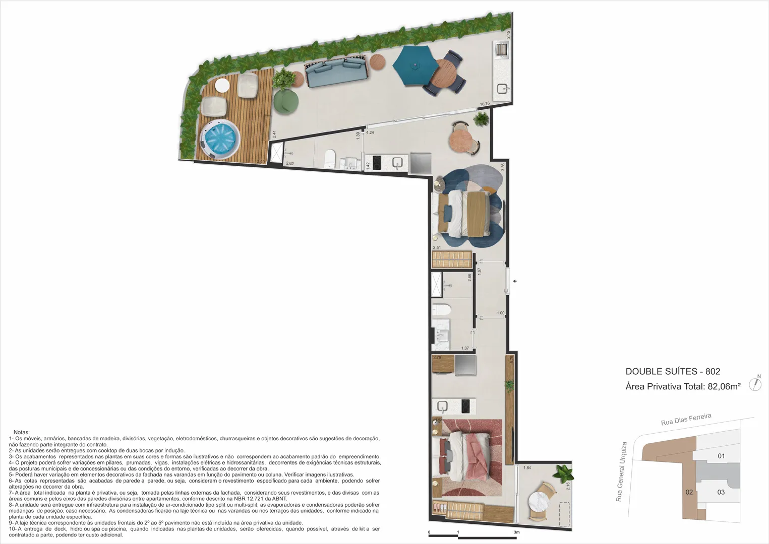 - Lazer: piscina, spa, sauna, espaço gourmet, coworking, fitness, repouso, minimercado, selfbar and snacks.