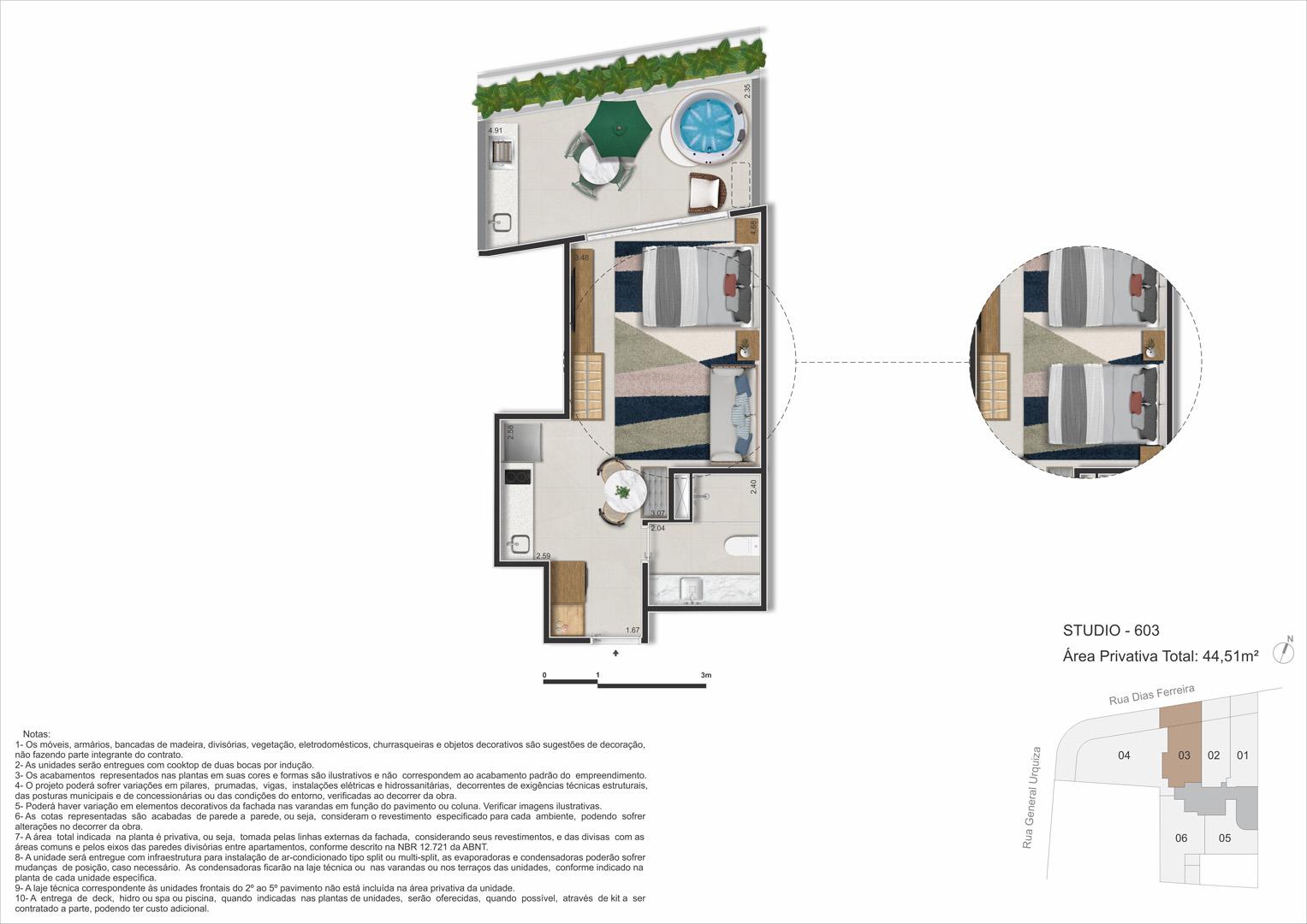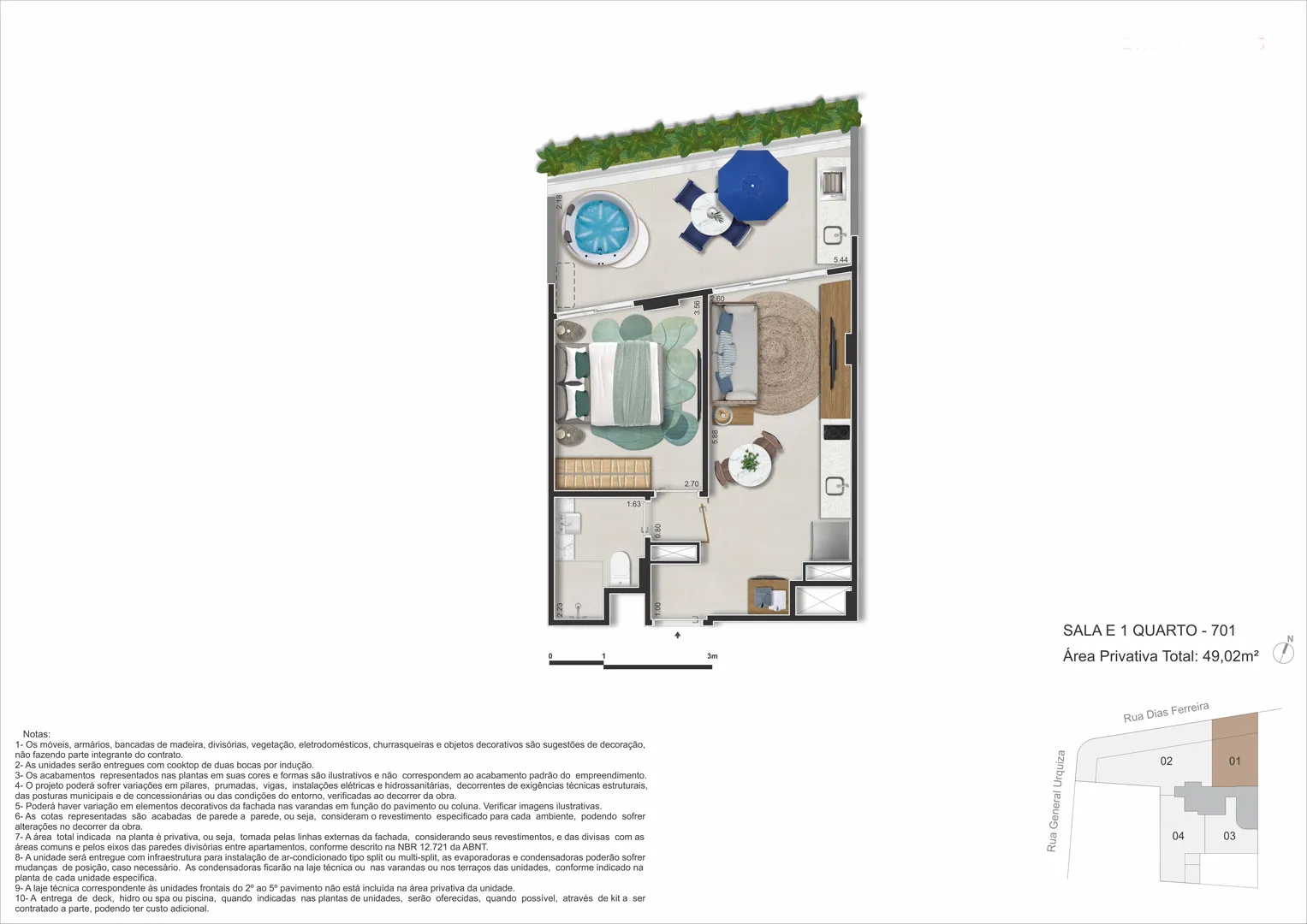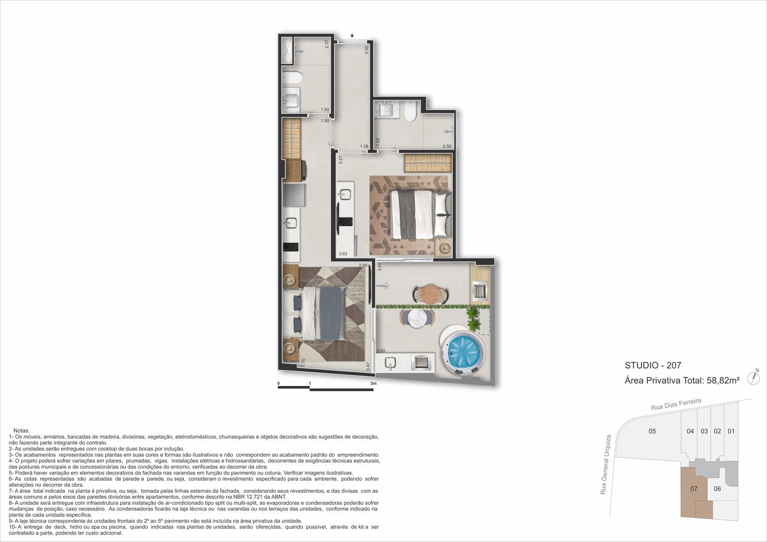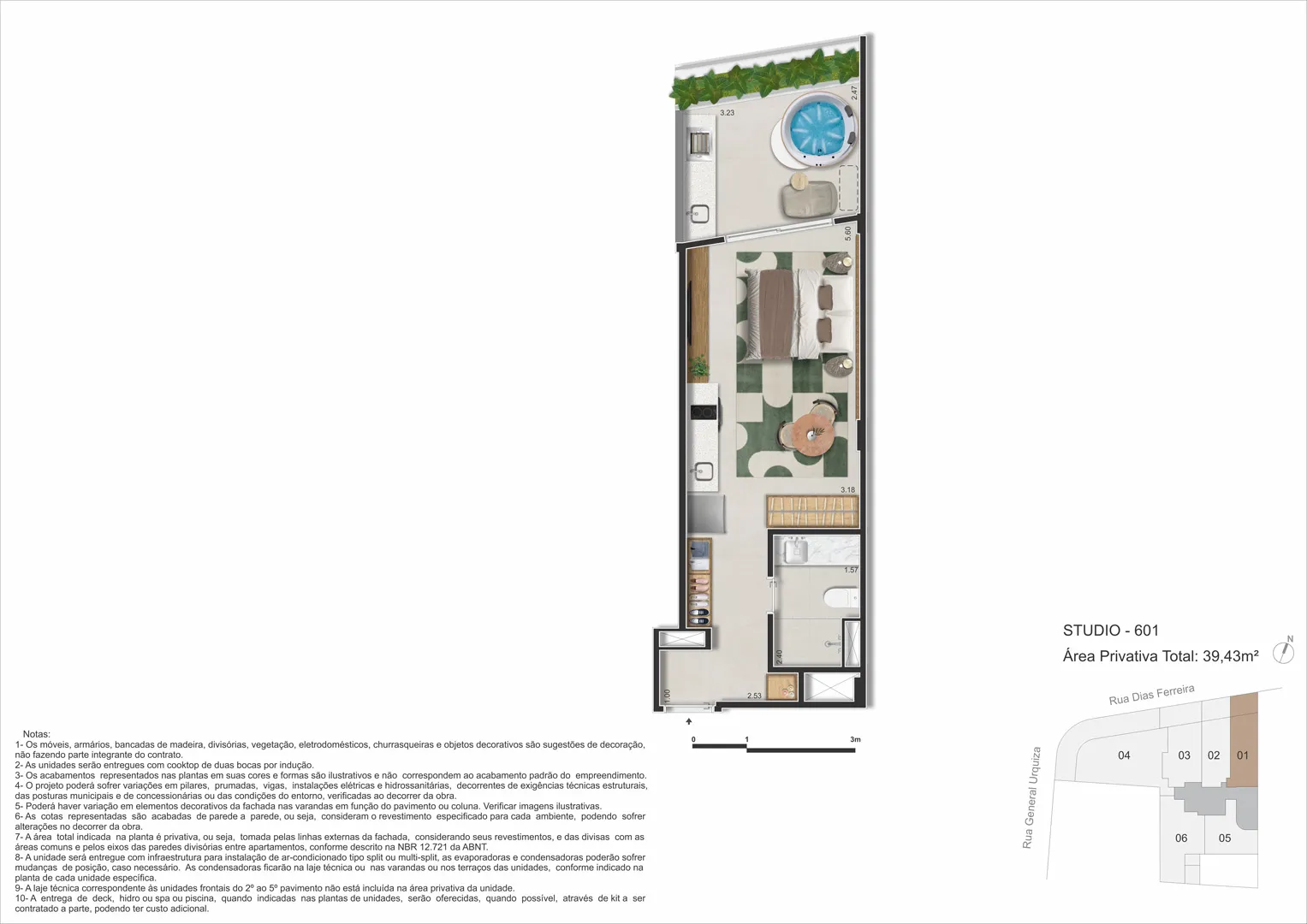 - Lazer: piscina, spa, sauna, espaço gourmet, coworking, fitness, repouso, minimercado, selfbar and snacks.