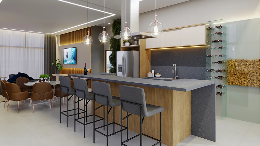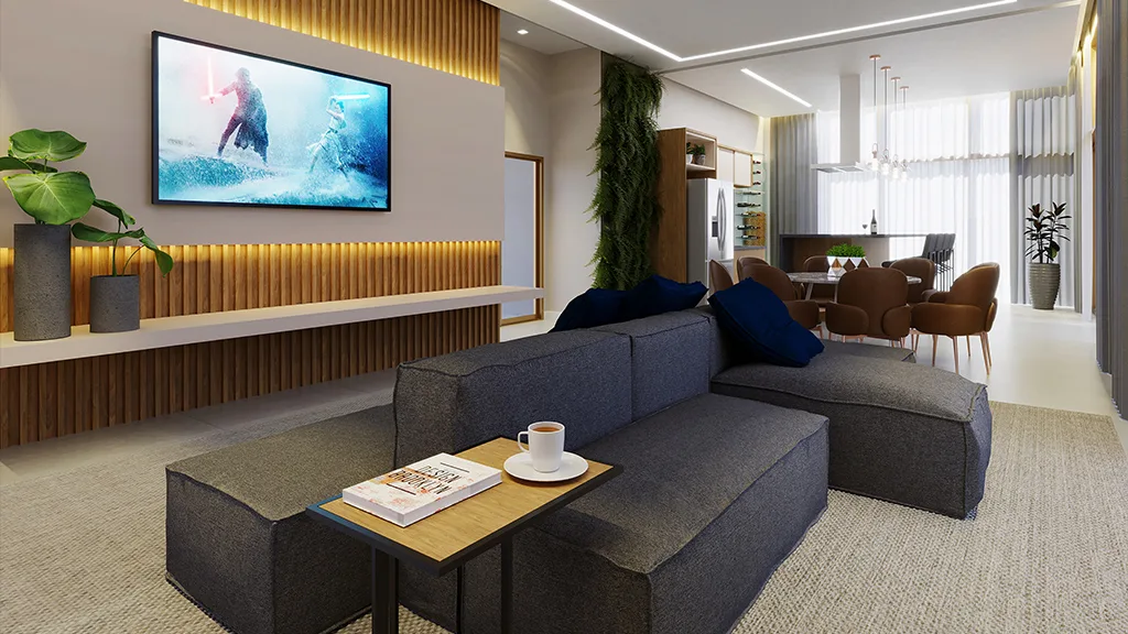 Com uma fachada 100% revestida, o Feng Tijuca destaca-se pelo cuidado nos acabamentos e pela arquitetura de alto padrão. A presença de revestimento completo na fachada não só garante durabilidade e menor necessidade de manutenção, mas também proporciona uma estética moderna e elegante. A arquitetura e o paisagismo foram pensados para criar um ambiente harmonioso, alinhado com os princípios do Feng Shui, promovendo bem-estar e equilíbrio.